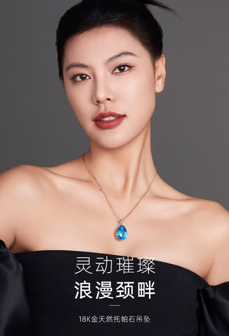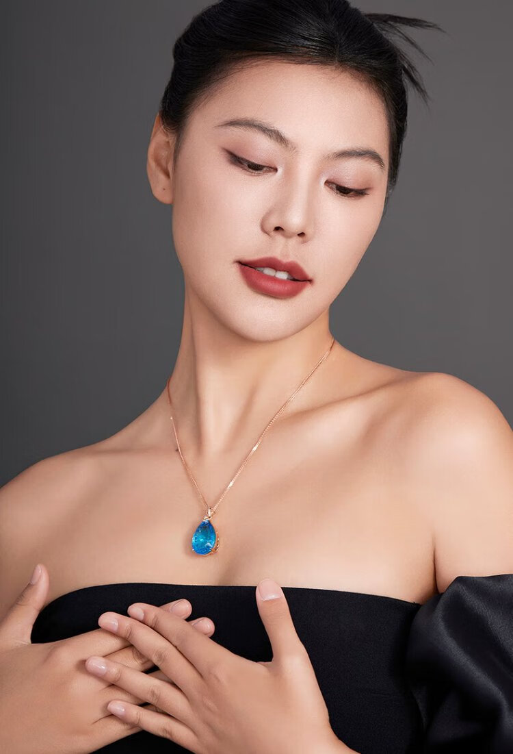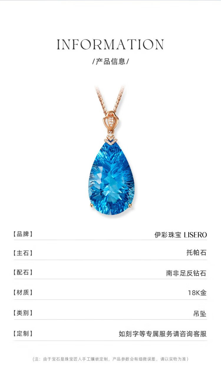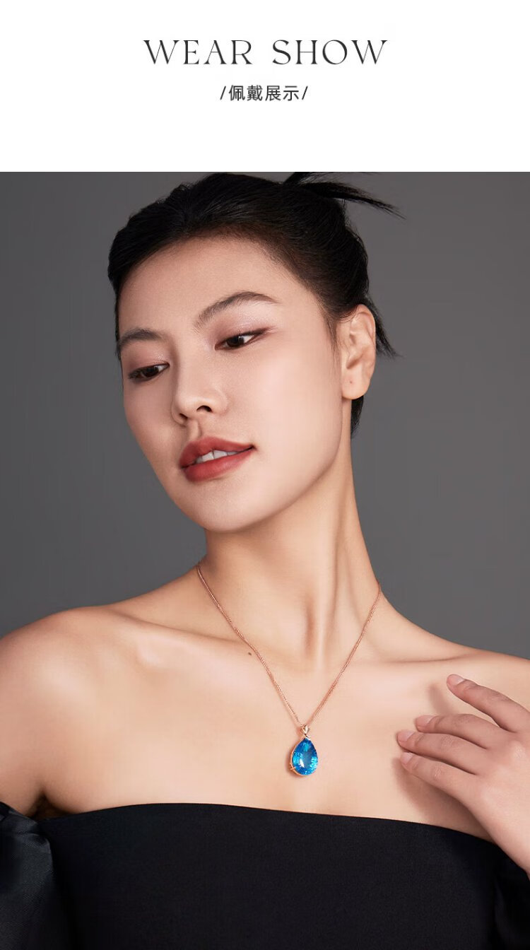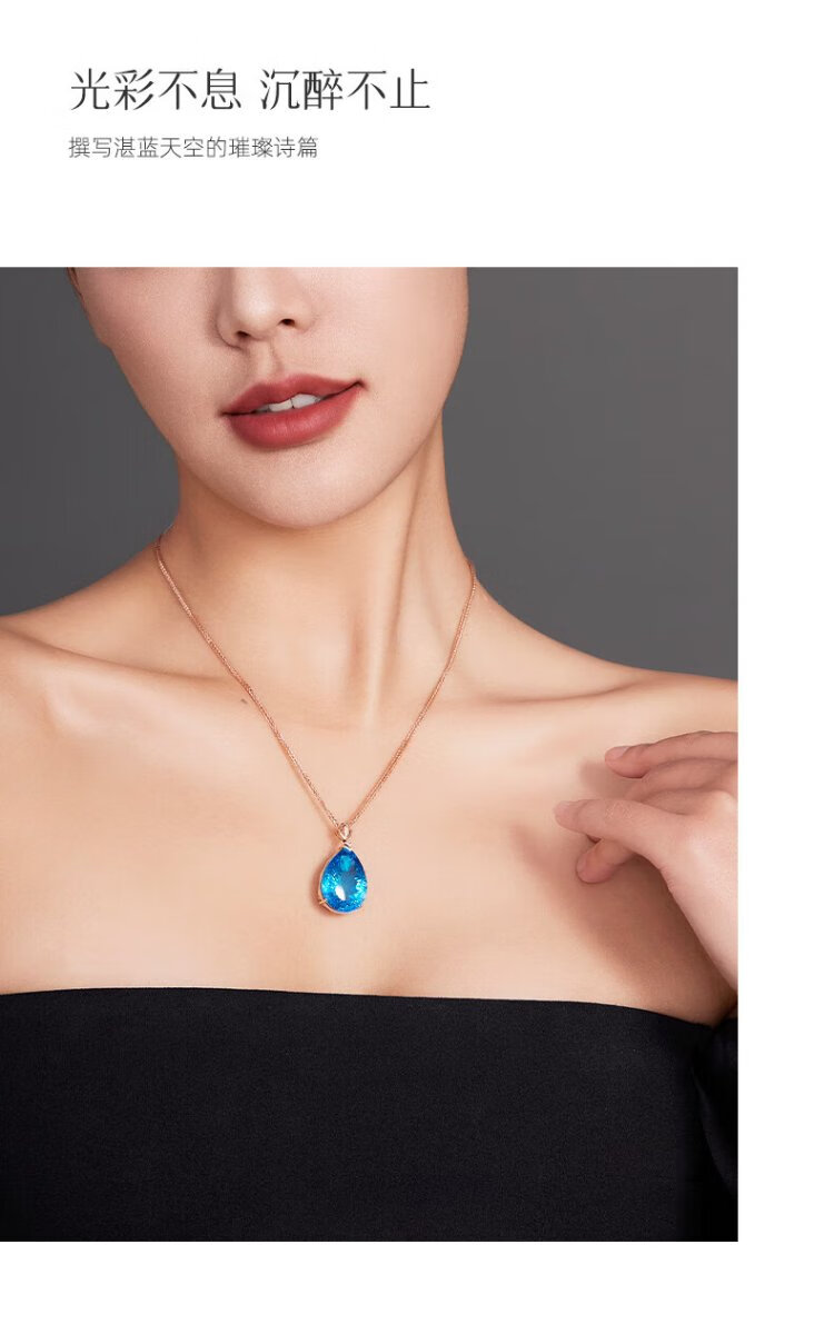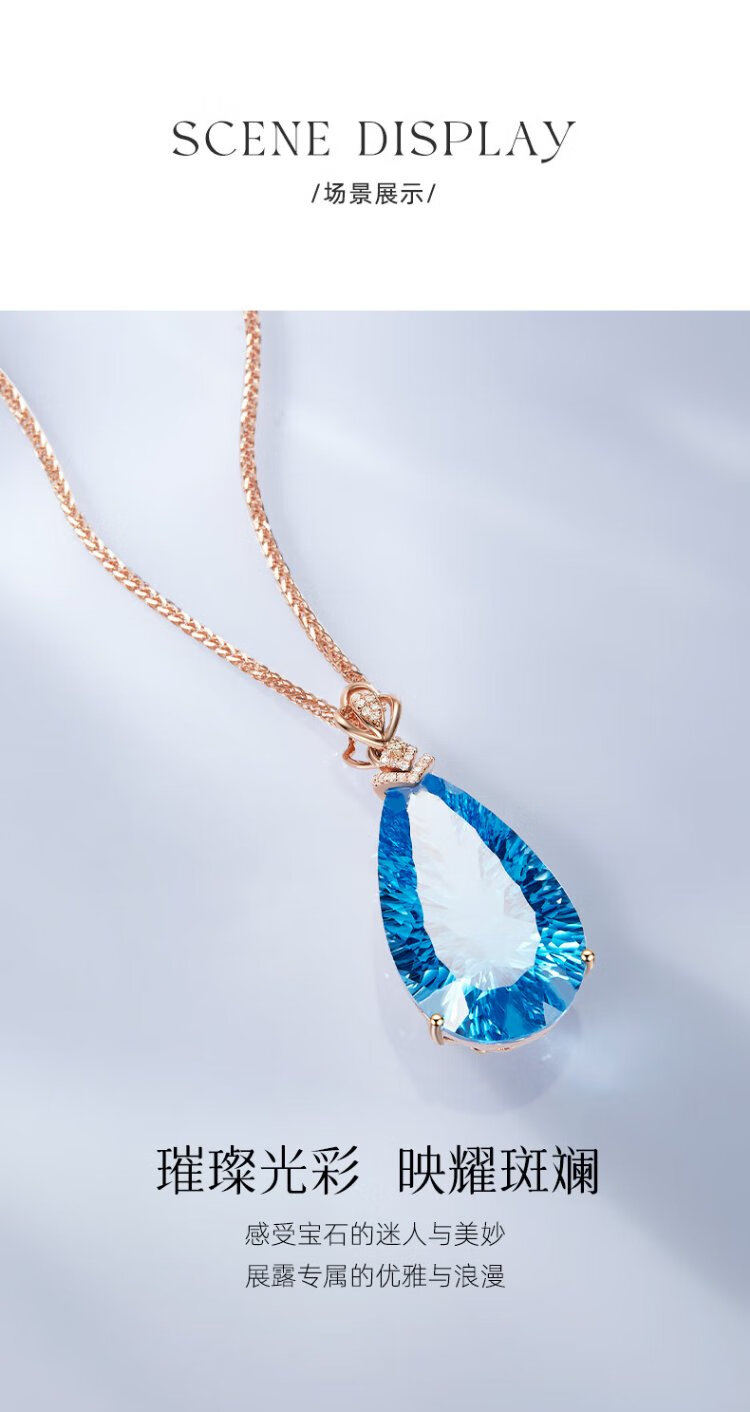 Yicai Jewelry 18k gold topaz pendant for women, sky blue water drop necklace, diamond inlaid blue gemstone, 18 carat topaz pendant/18K gold inlaid - chain not included