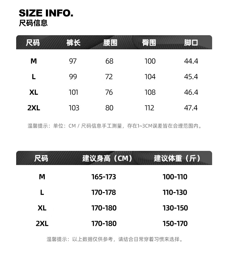 Outseam (cm) 99 cm 101.5 cm 104 cm 106.5 cm 109 cm