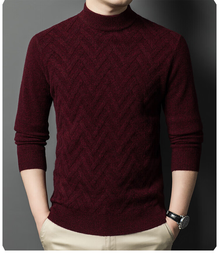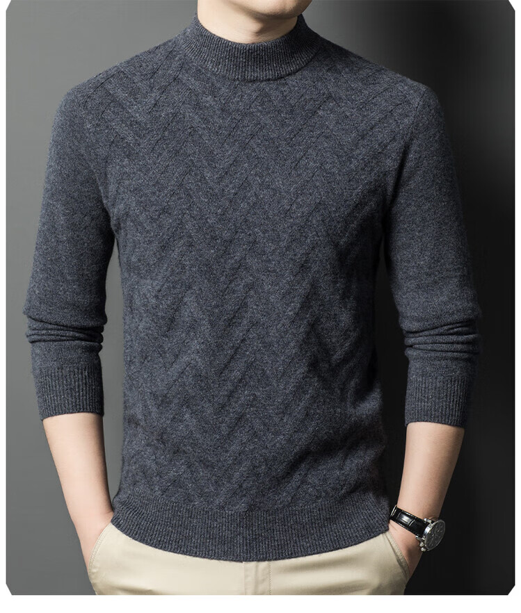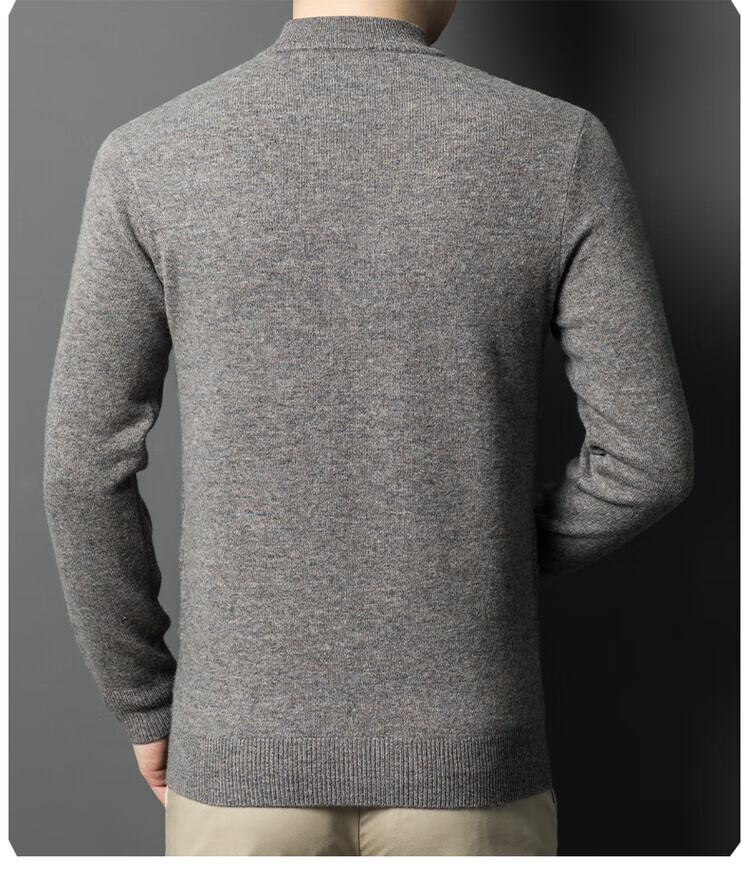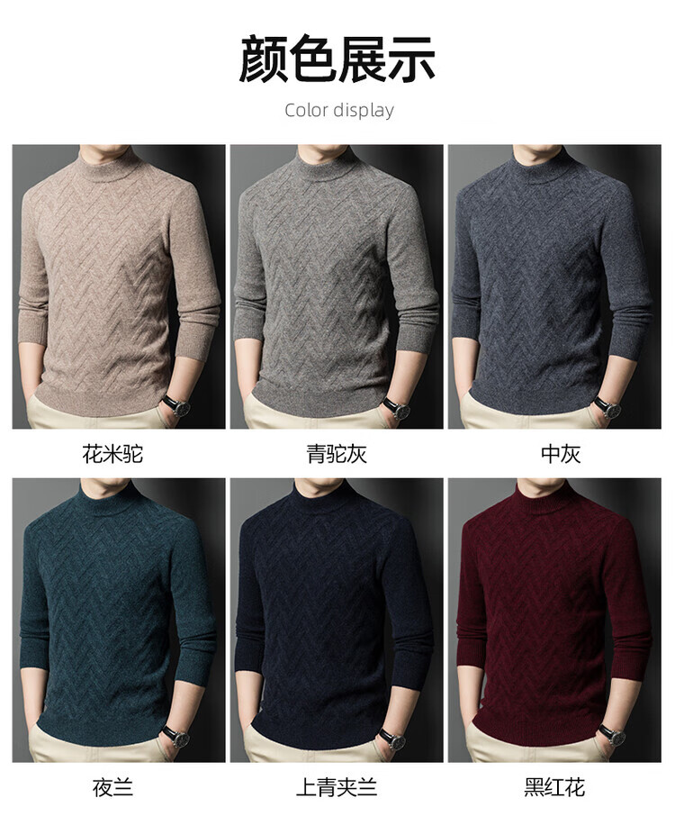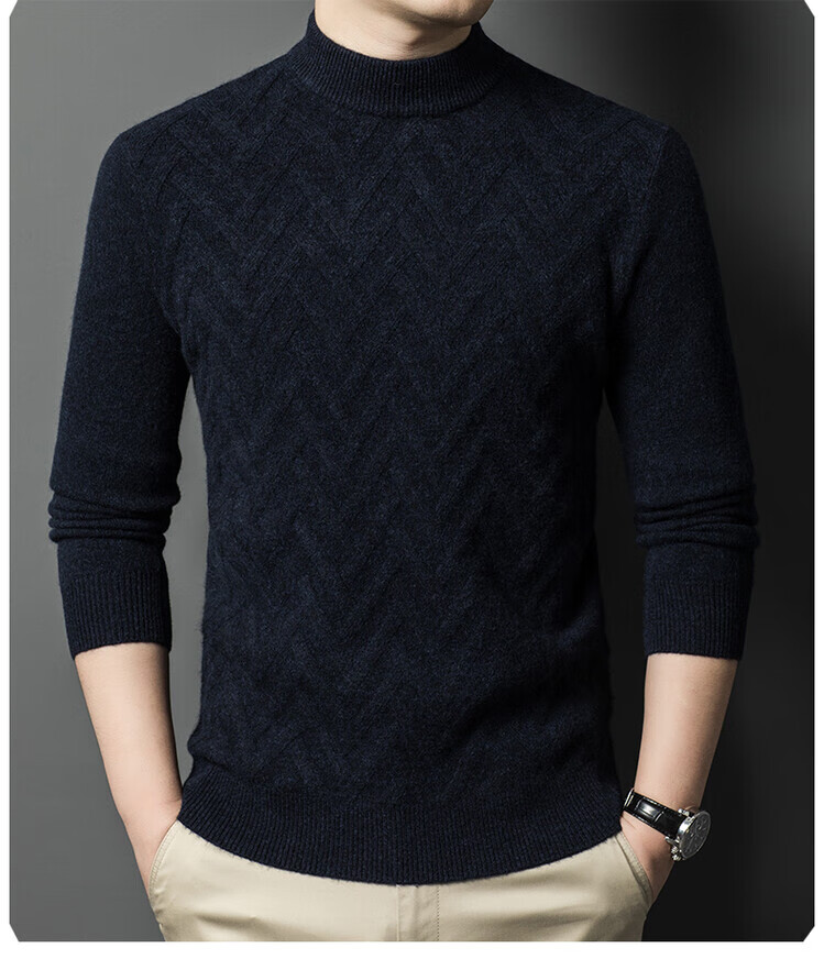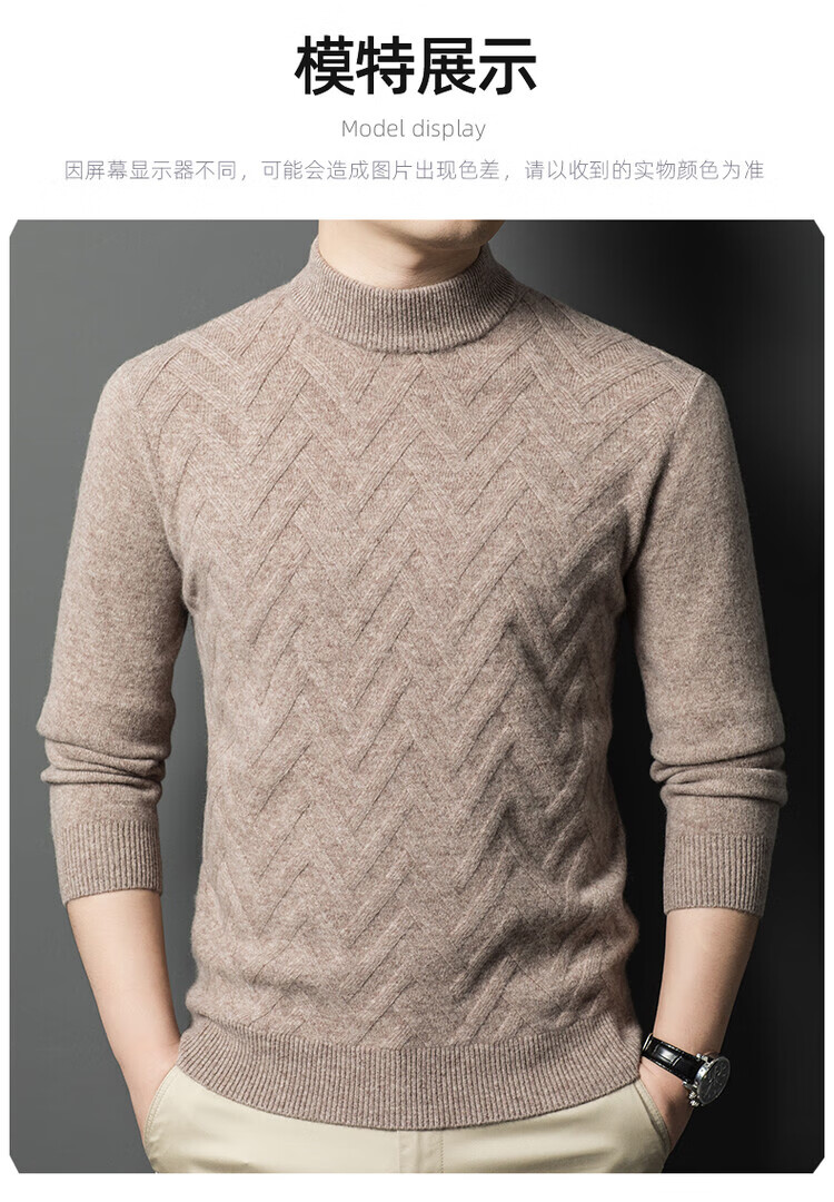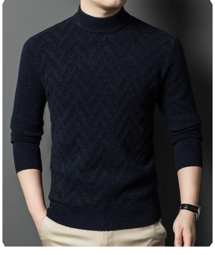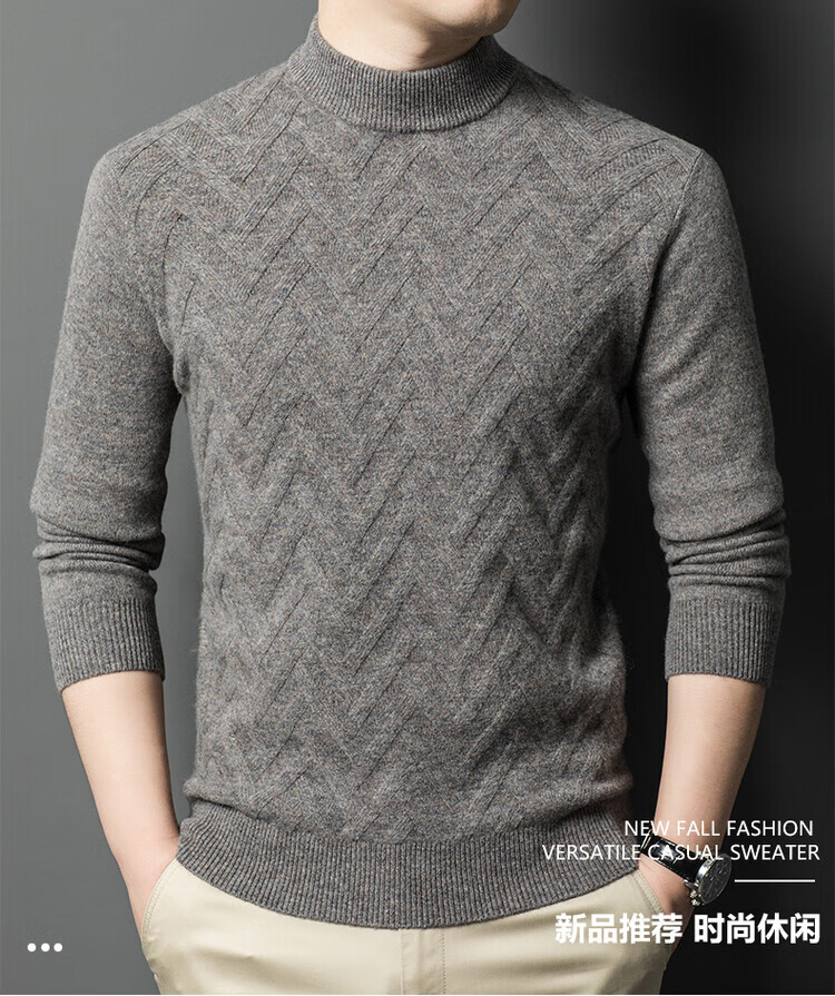 Hengyuanxiang 100% wool sweater autumn and winter half turtleneck thickened solid color casual men's dad top bottoming sweater
