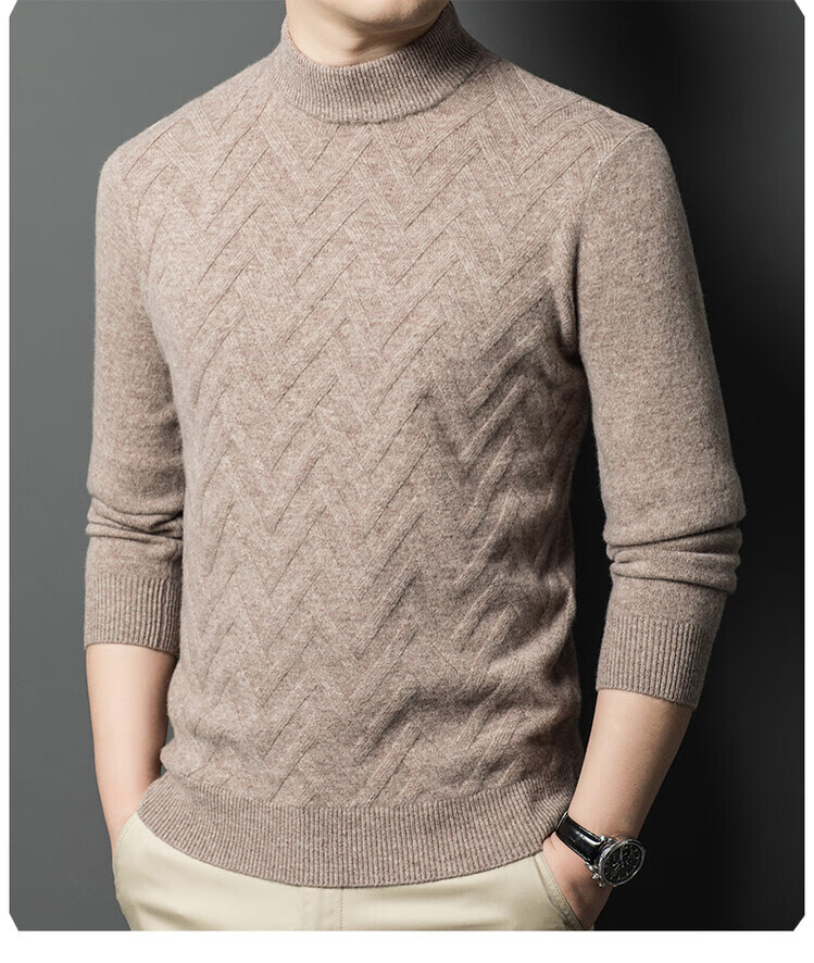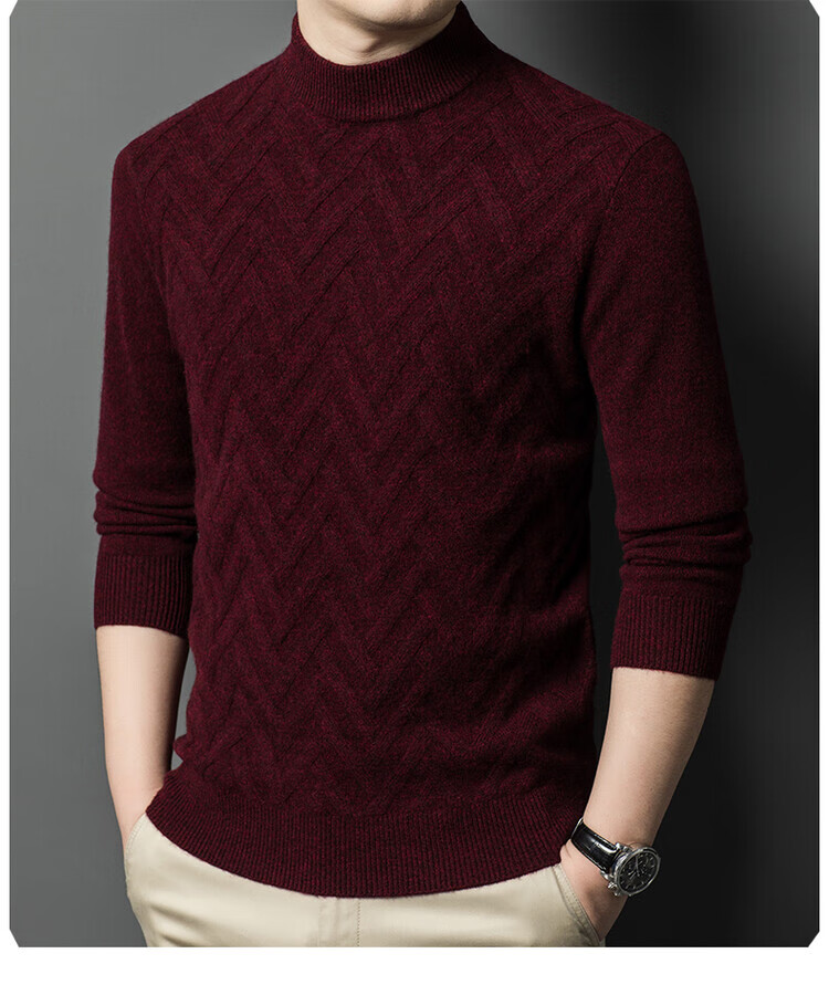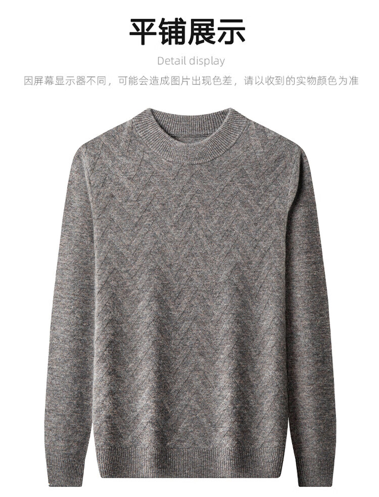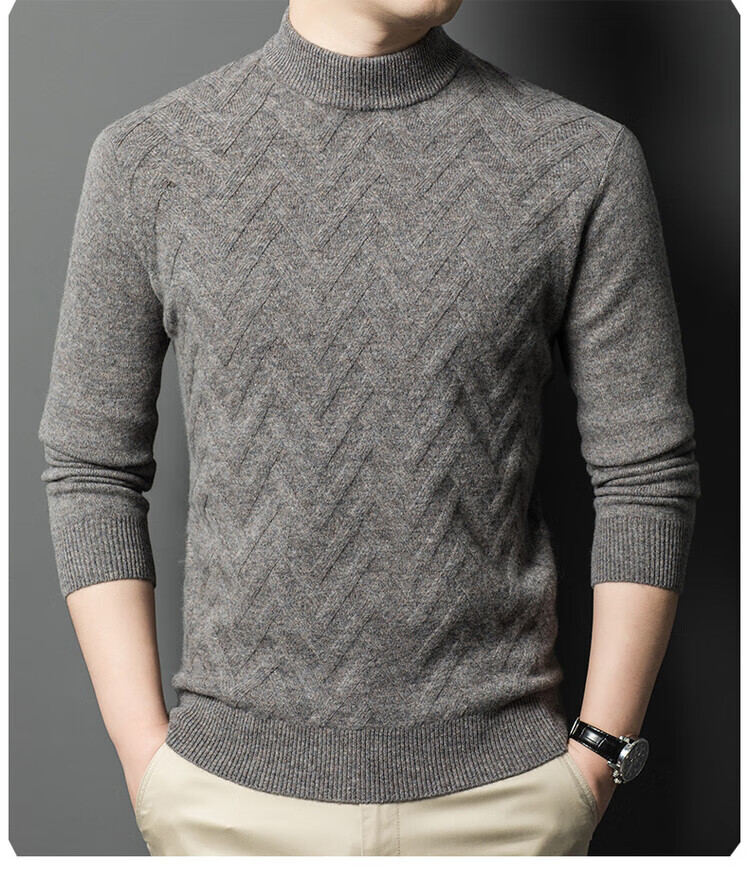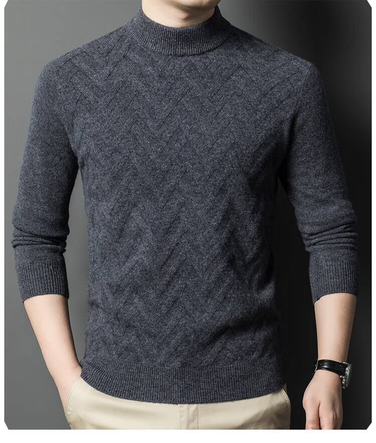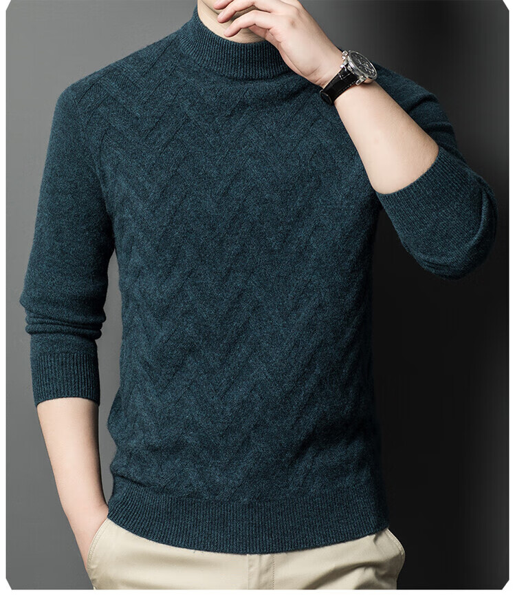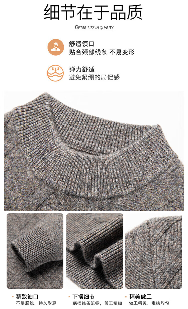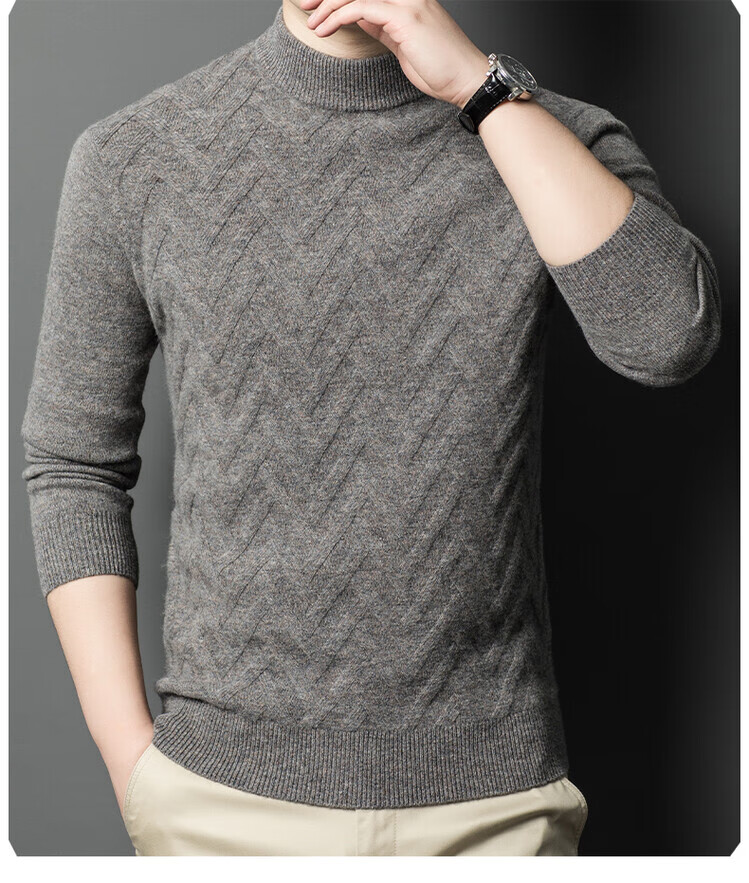 Hengyuanxiang 100% wool sweater autumn and winter half turtleneck thickened solid color casual men's dad top bottoming sweater