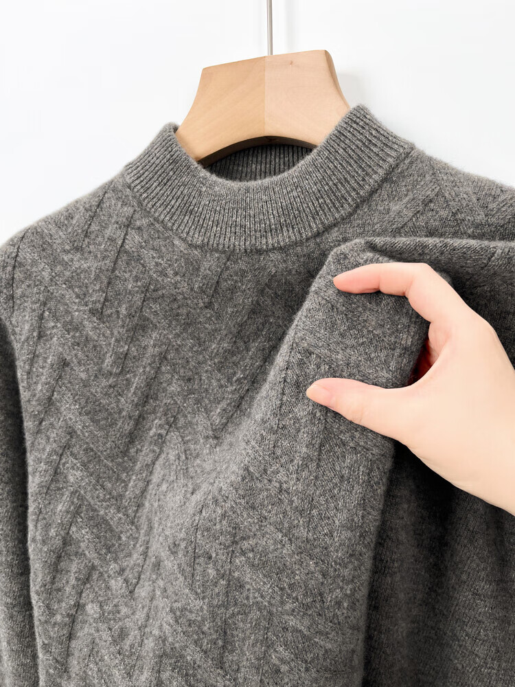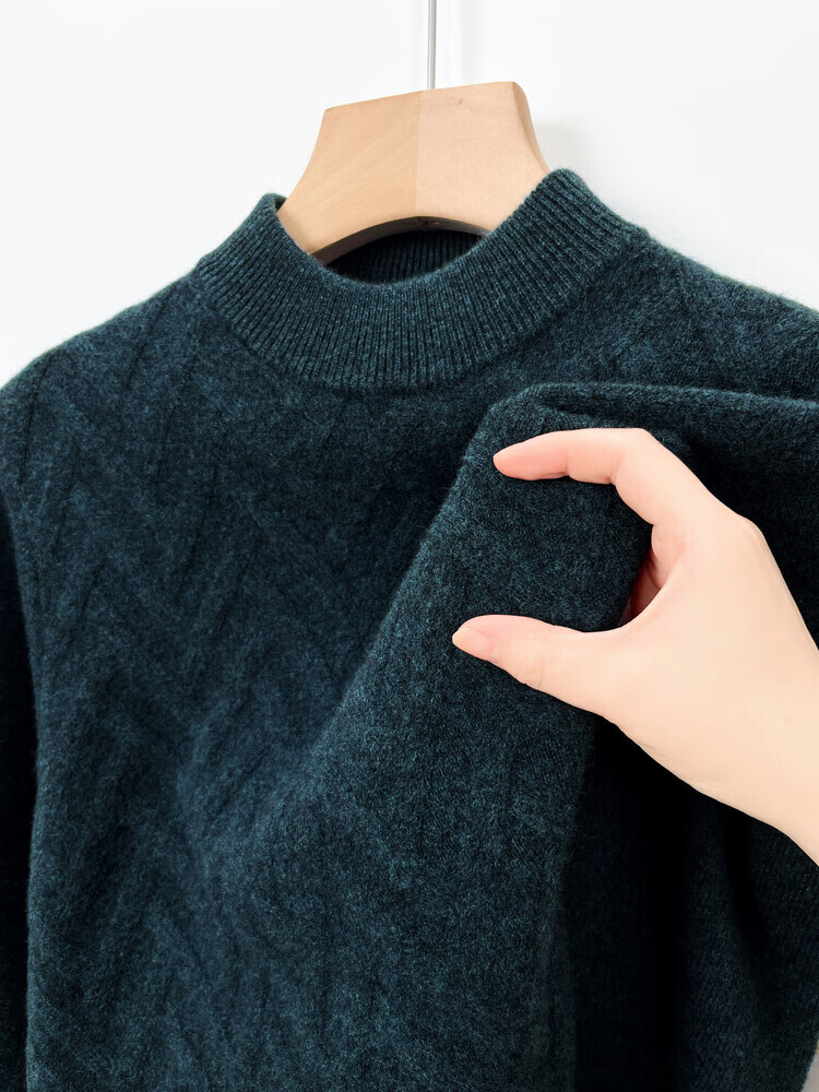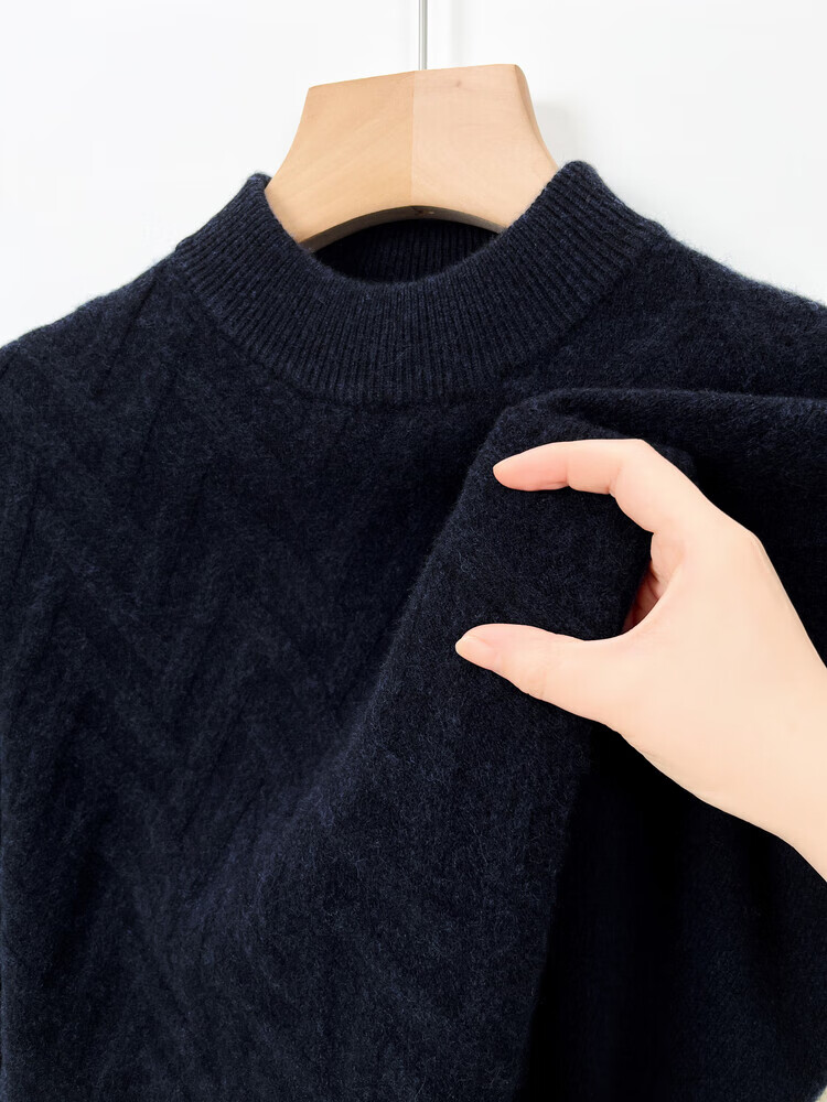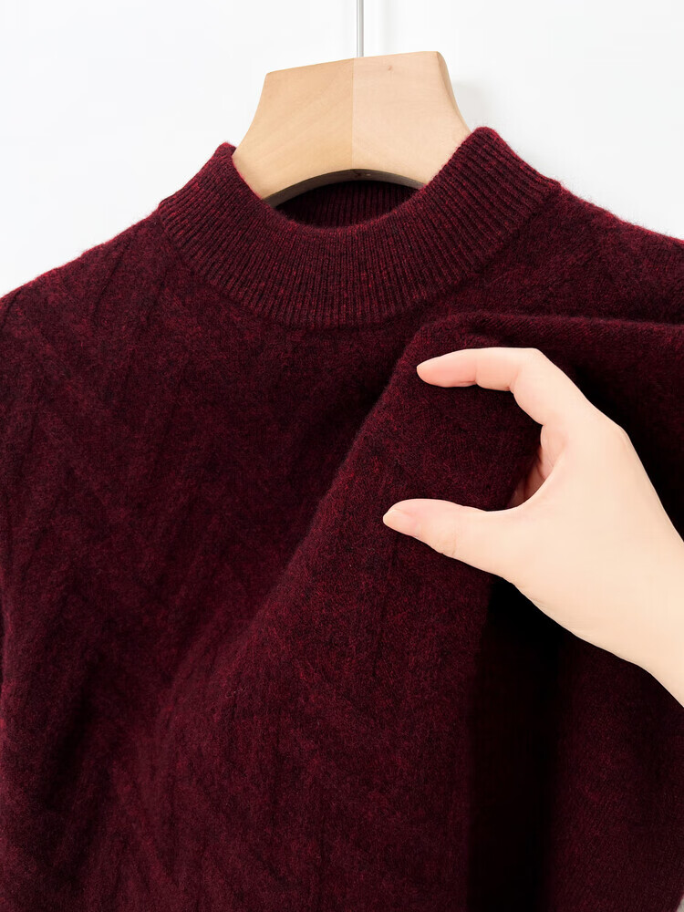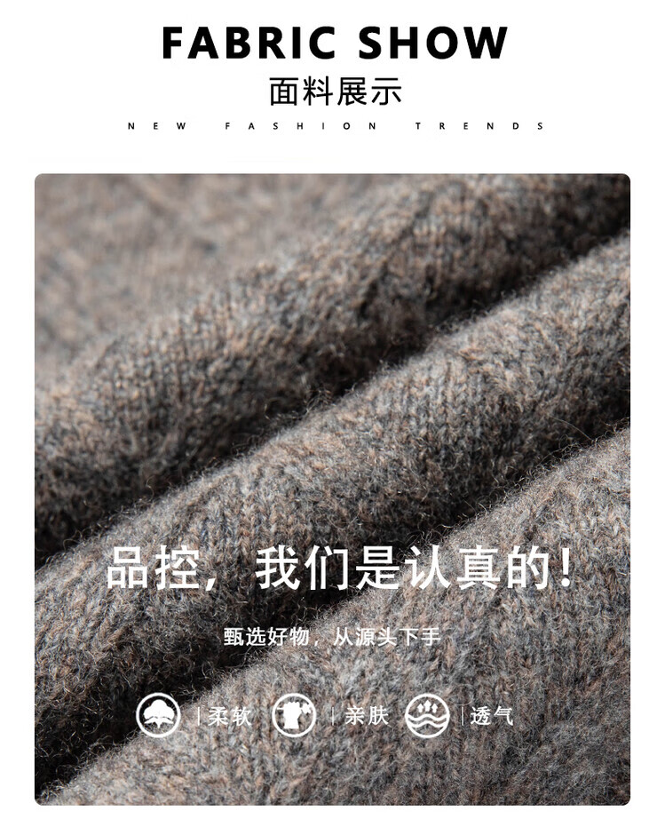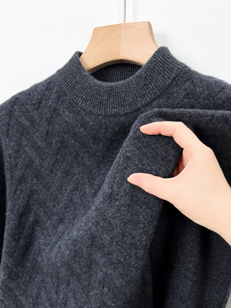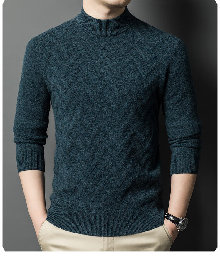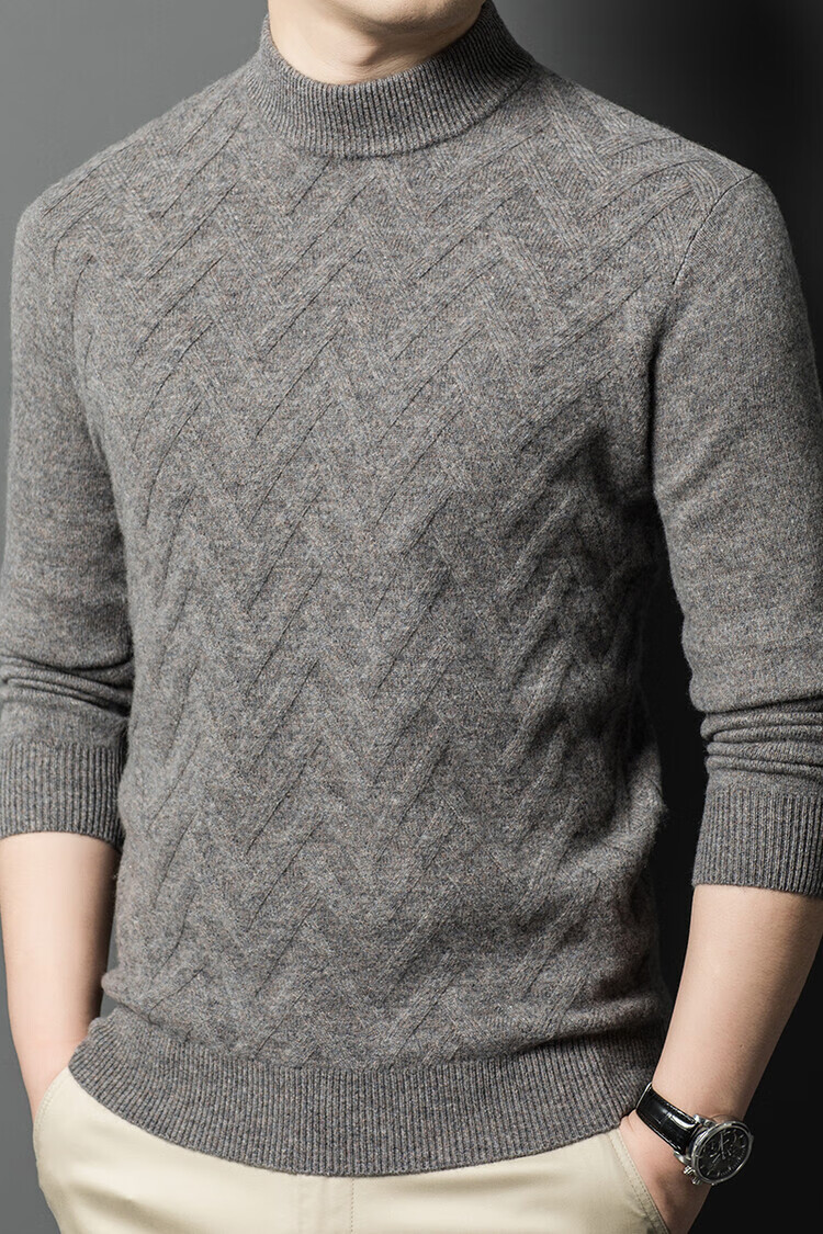 Hengyuanxiang 100% wool sweater autumn and winter half turtleneck thickened solid color casual men's dad top bottoming sweater