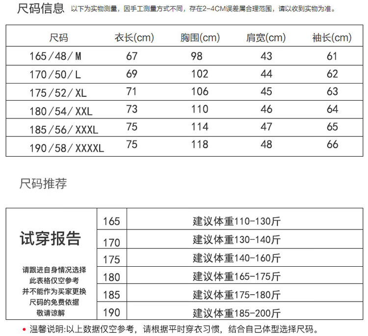China (cm) 160-165/84-86 165-170 / 88-90 167-172 / 92-96 168-173 / 98-102 170-176 / 106-110