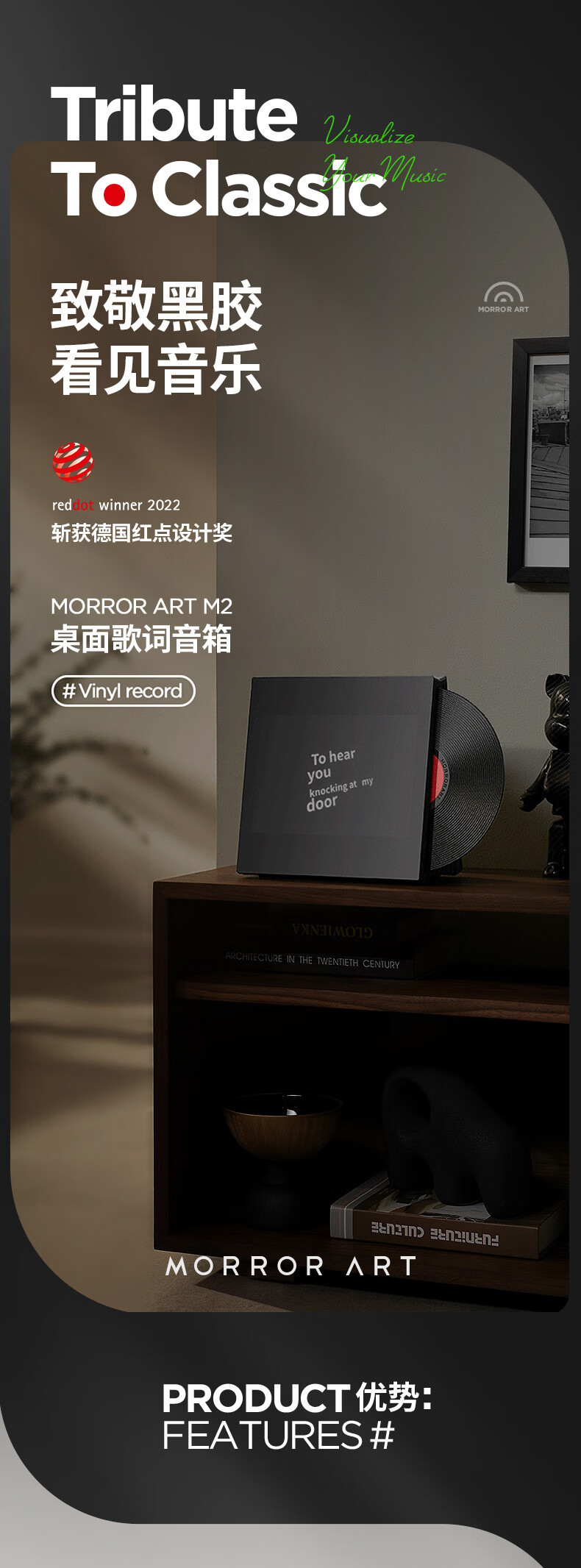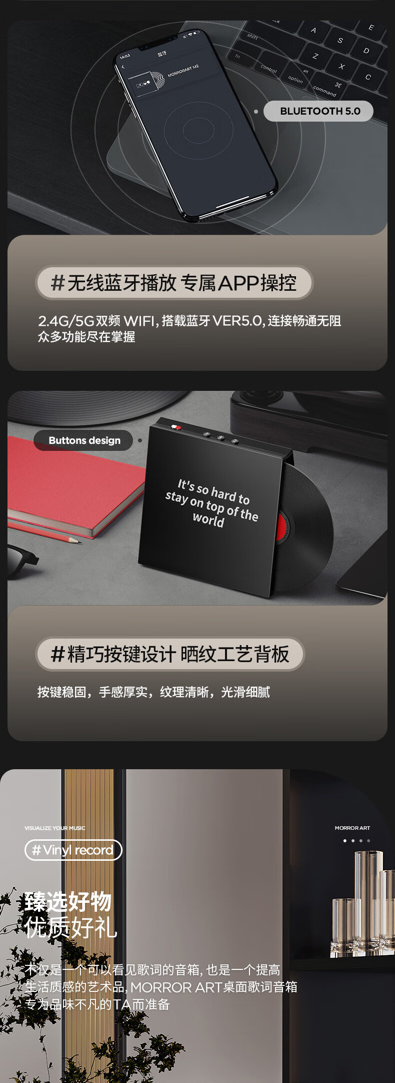 MORRORART M2 Desktop Lyrics Speaker Suspended Subtitles Vinyl Record Bluetooth Audio Home Living Room Bedroom Audio Smart Home Birthday Gift Gift Box