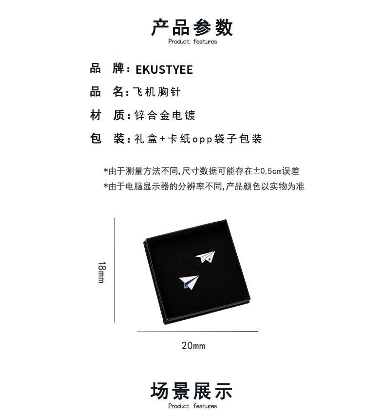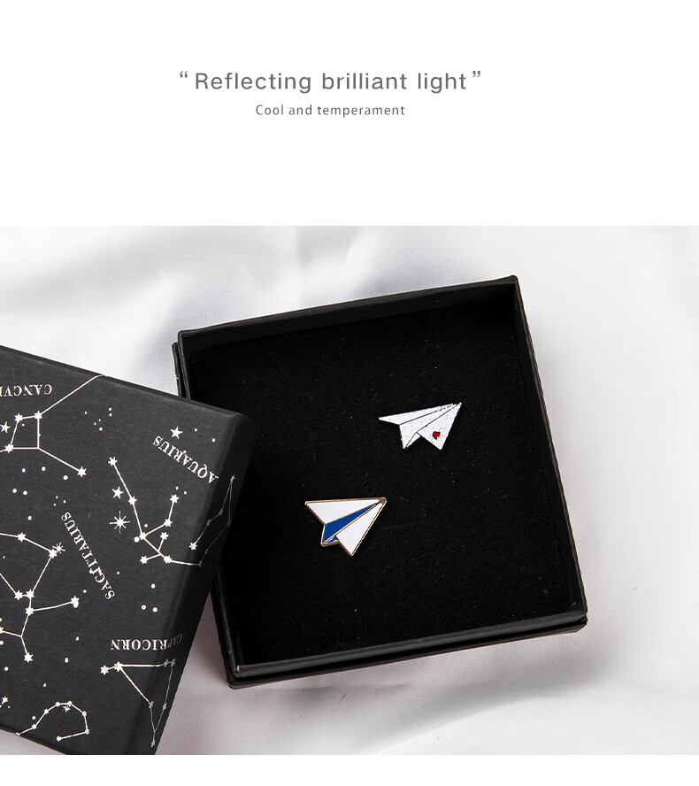EKUSTYEE small airplane brooch ins trendy men and women cute Japanese style simple personality student badge bag accessories small airplane + white paper airplane (gift box)