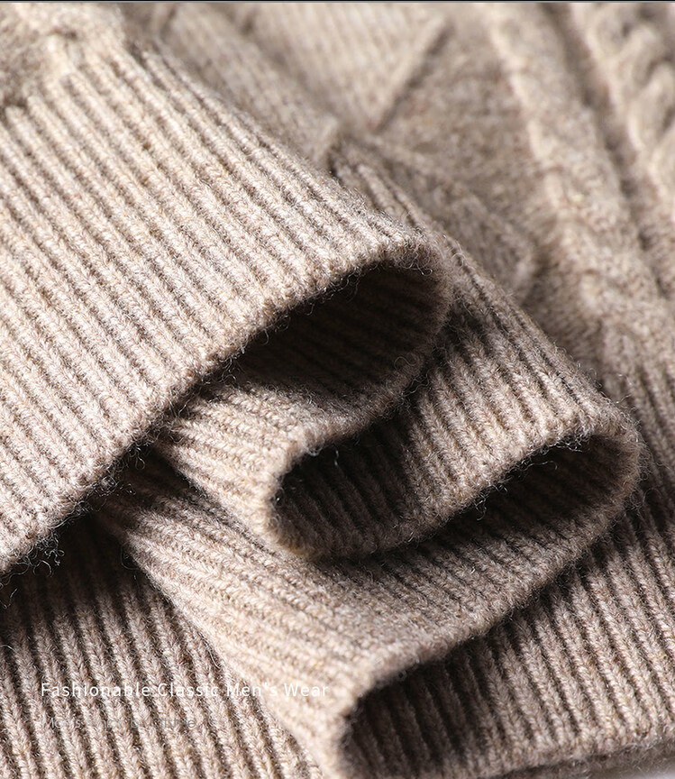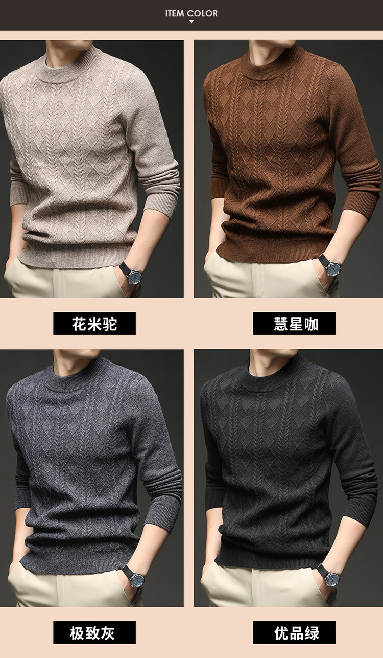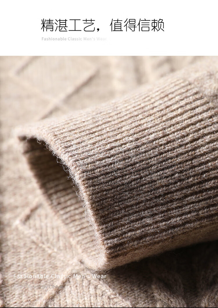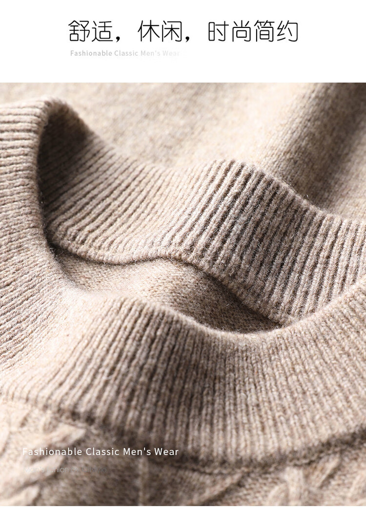 Hengyuanxiang 100 pure wool sweater new loose men's half turtleneck thickened threaded knitted sweater