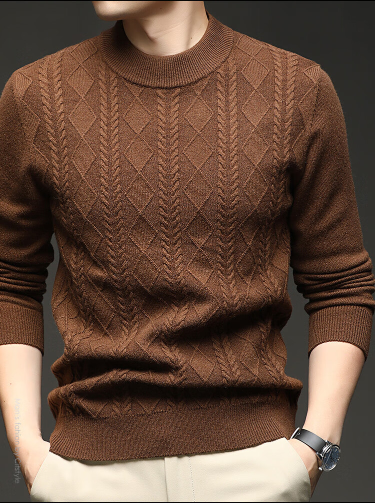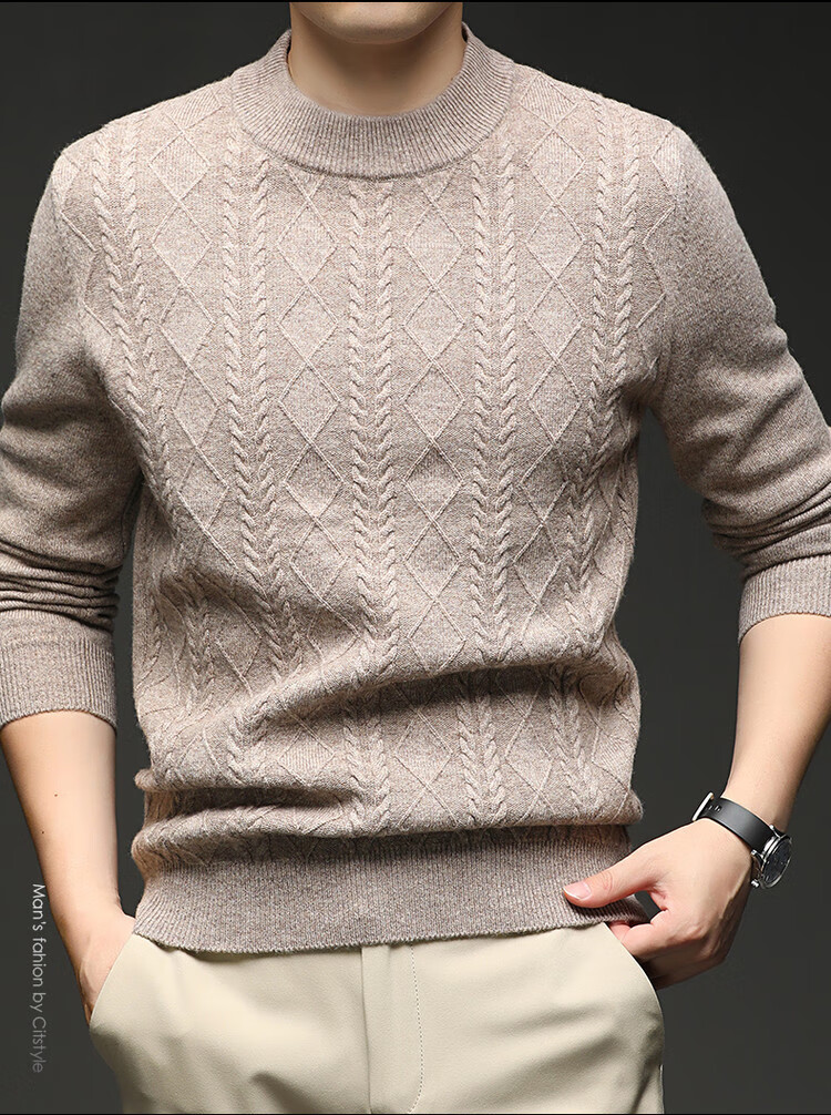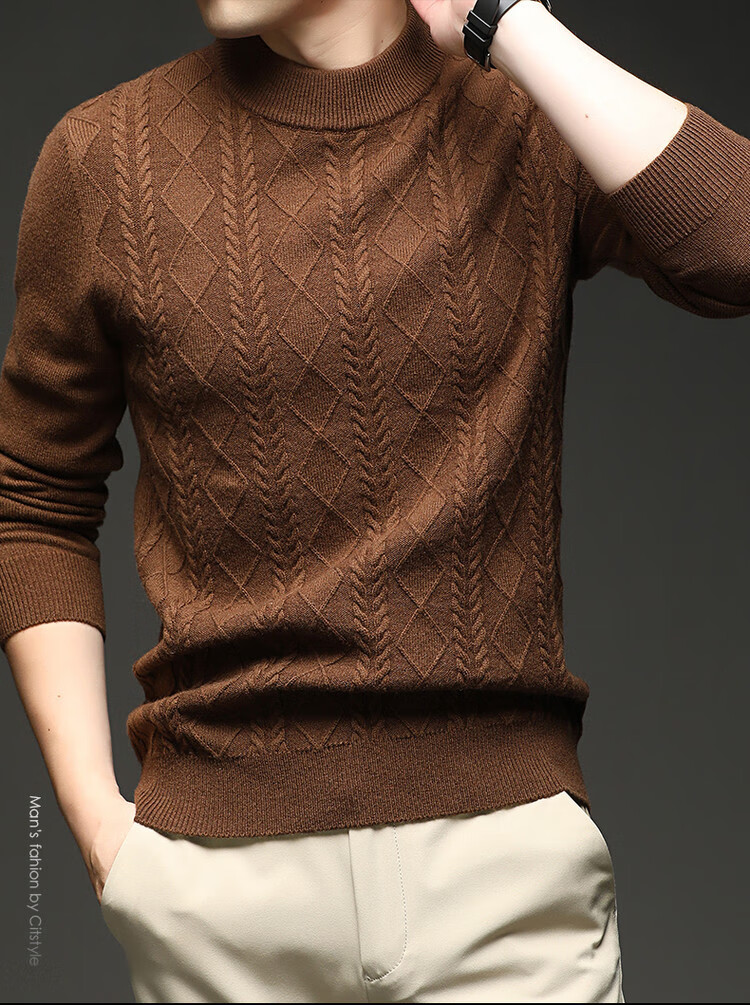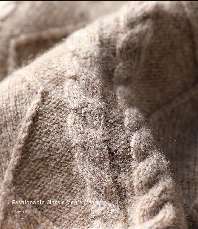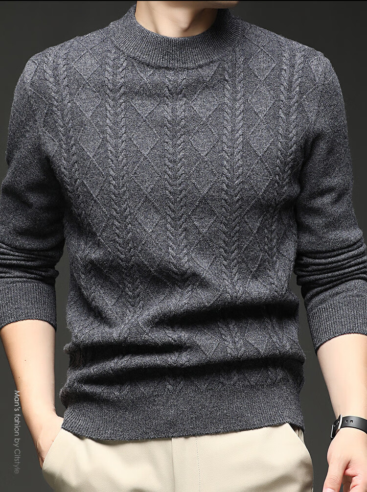 Hengyuanxiang 100 pure wool sweater new loose men's half turtleneck thickened threaded knitted sweater
