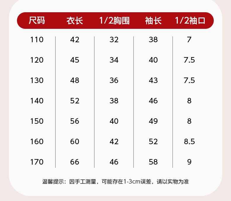 Size (cm) 42 44 46 48 50