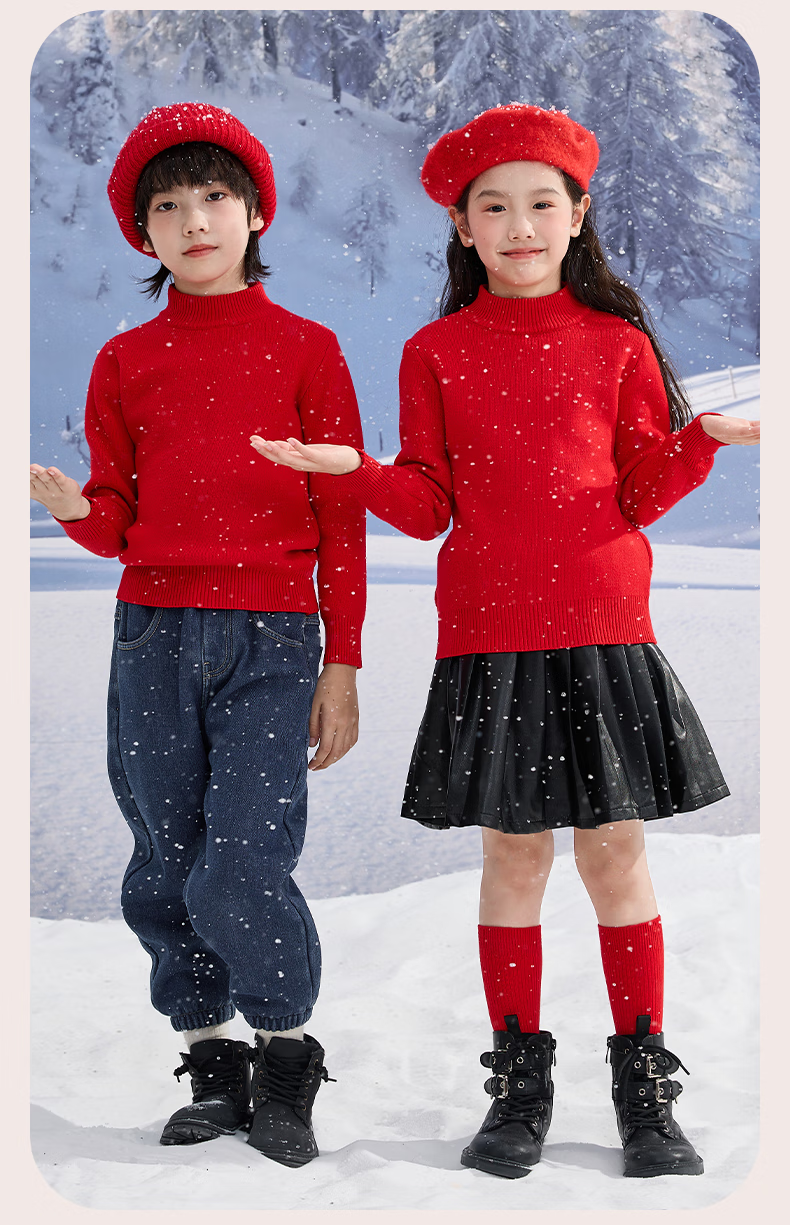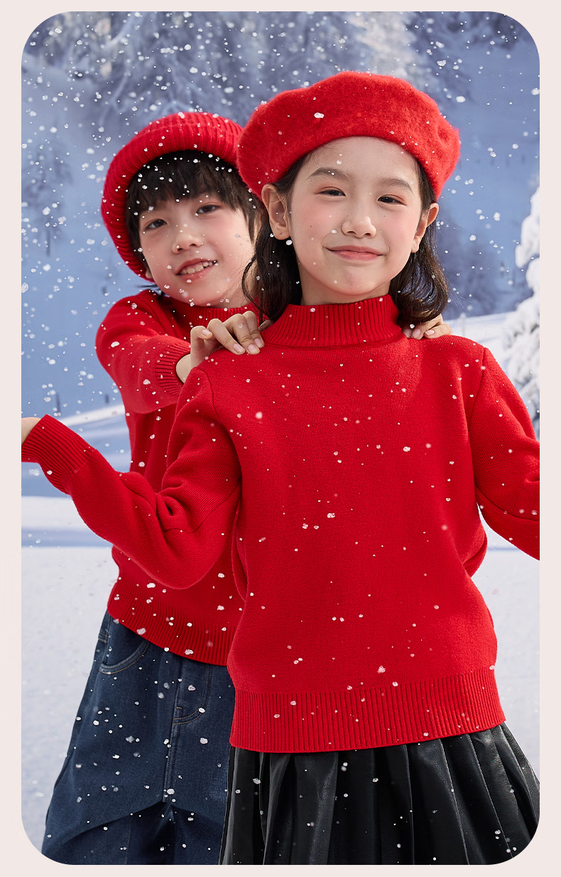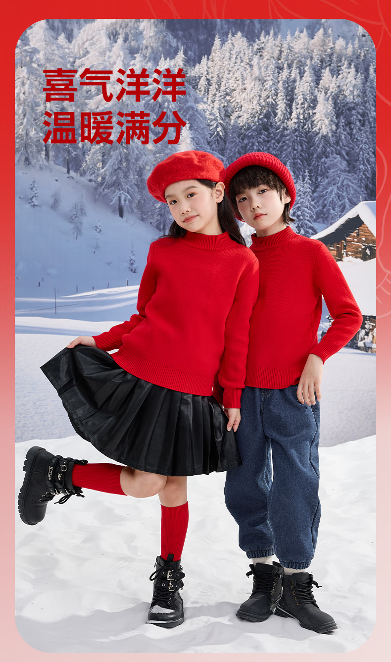 Jeanswest children's clothing children's red sweater autumn and winter 2026 new boys' New Year clothes girls' zodiac year warm sweater