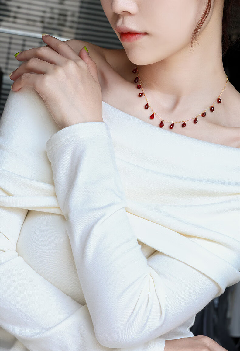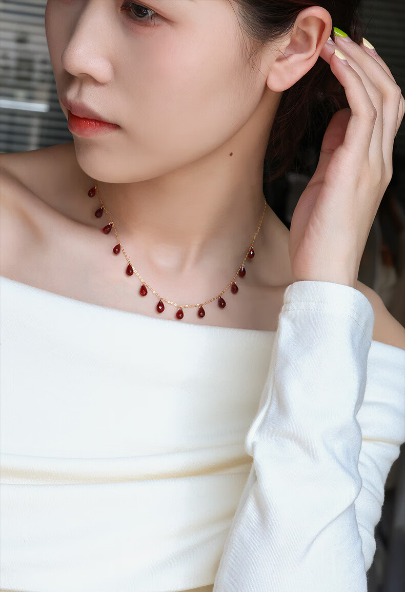 Ruohua (RUOHUA) Stars 5-6mm40cm Garnet Gypsophila Necklace for Women Colored Gemstone Necklace Clavicle Chain Birthday Gift