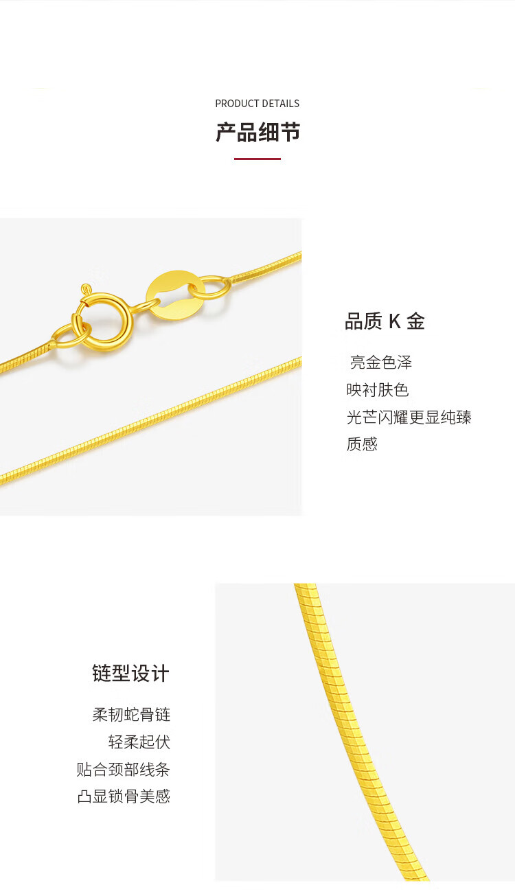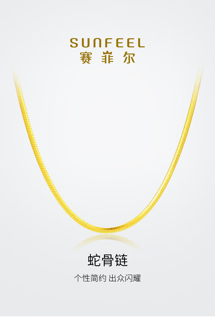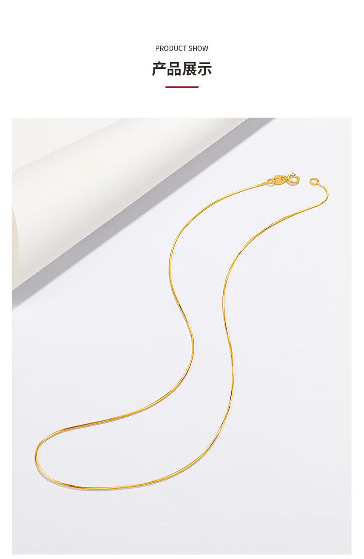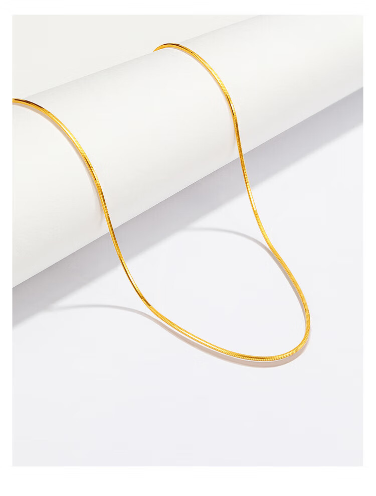 Safir 18K gold snake bone chain necklace for women, personalized color gold plain chain clavicle chain for girlfriend’s birthday gift, K yellow, about 43cm