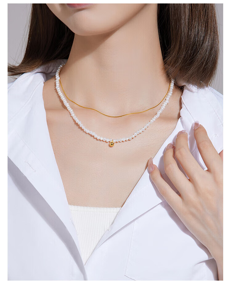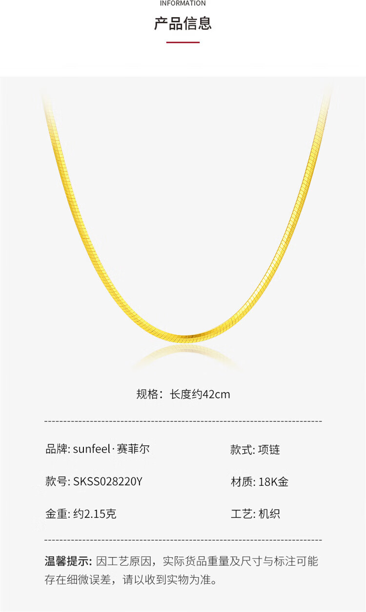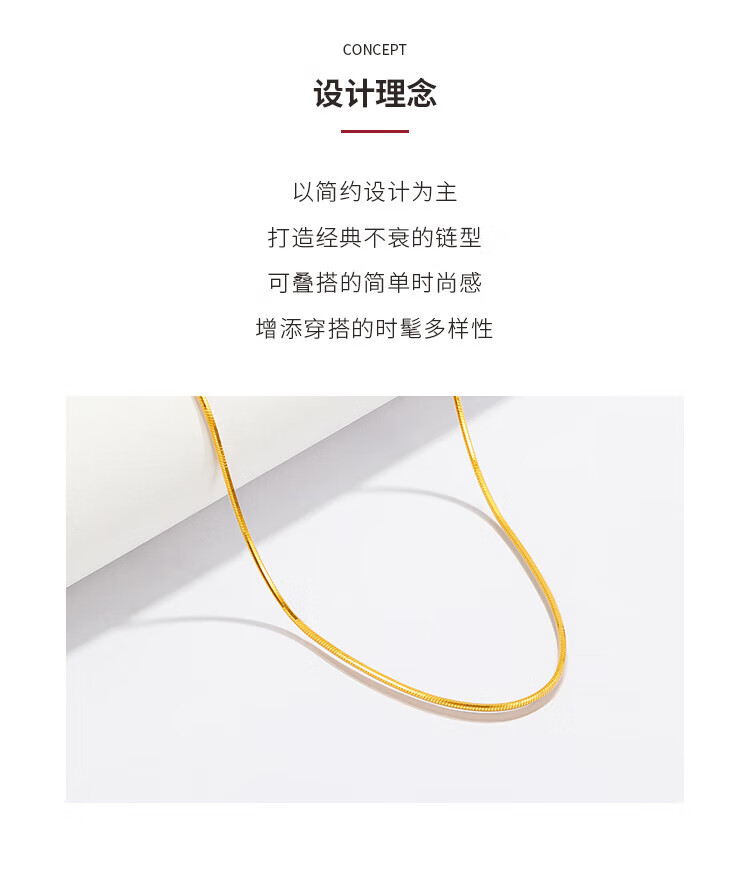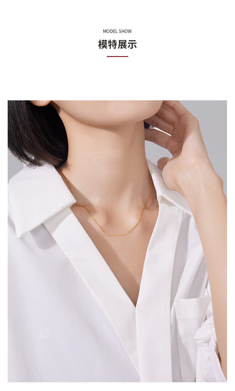 Safir 18K gold snake bone chain necklace for women, personalized color gold plain chain clavicle chain for girlfriend’s birthday gift, K yellow, about 43cm