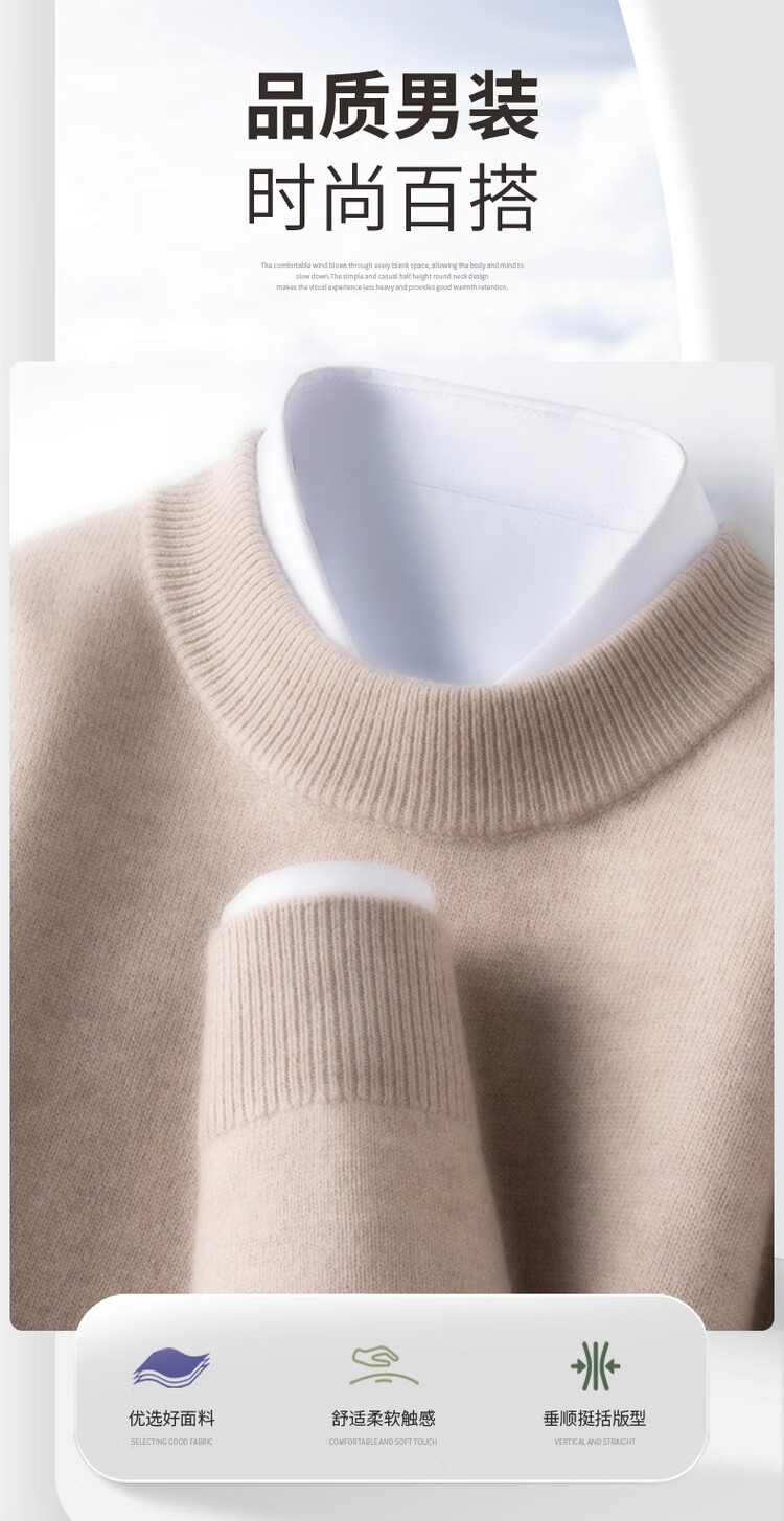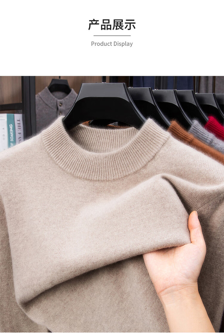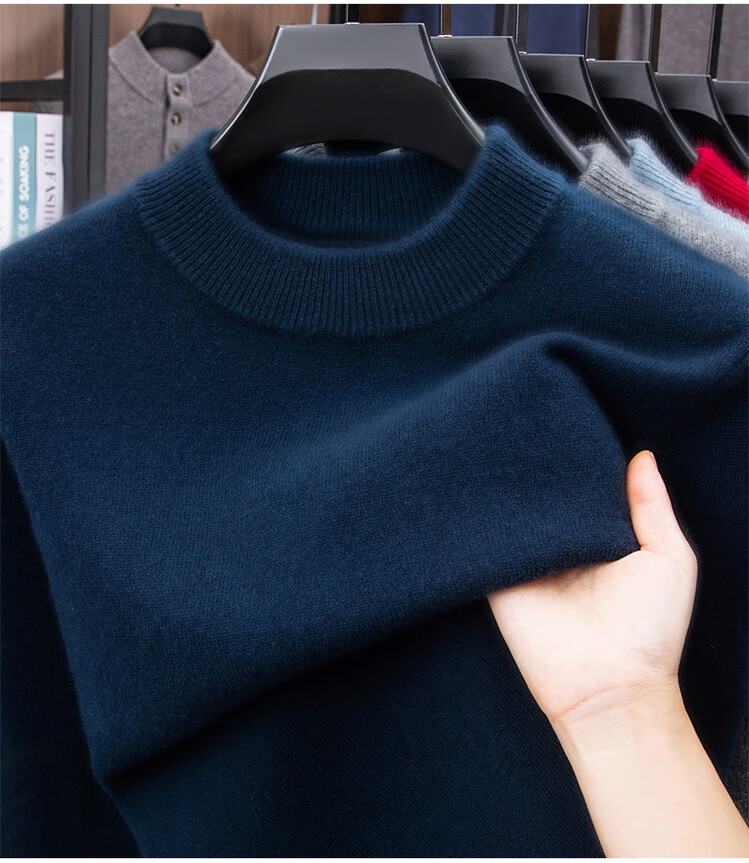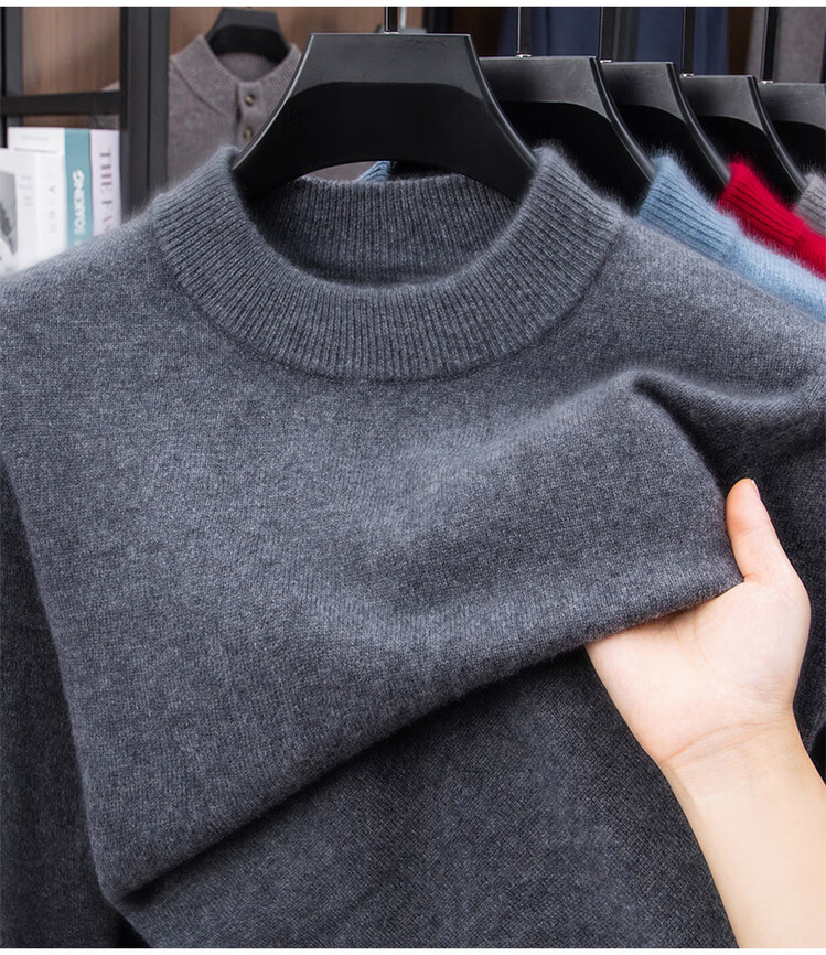 Hengyuanxiang autumn and winter cashmere men's new winter half turtleneck thickened sweater knitted base warm woolen sweater