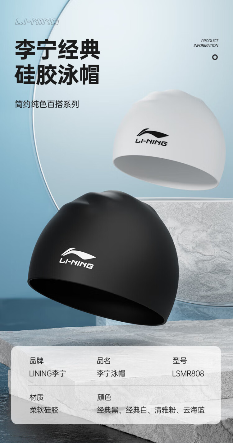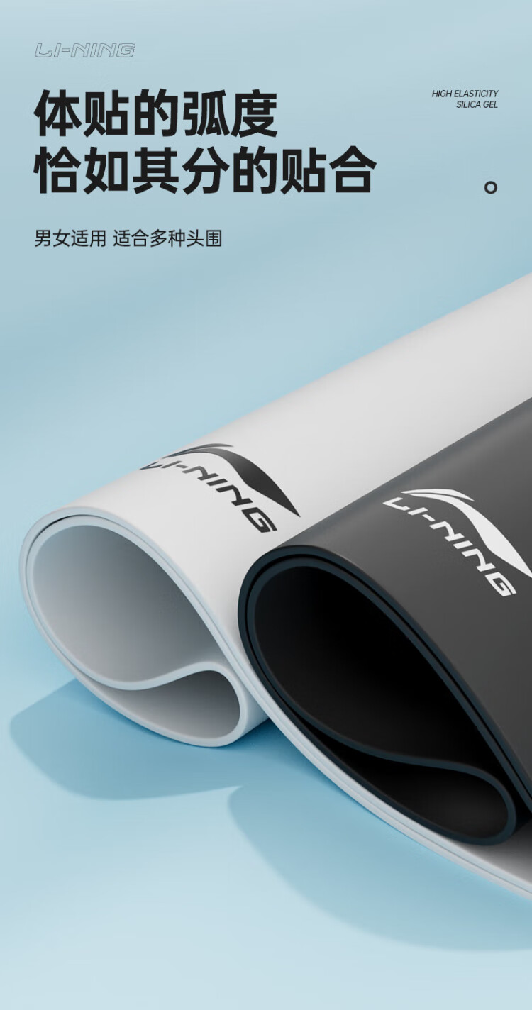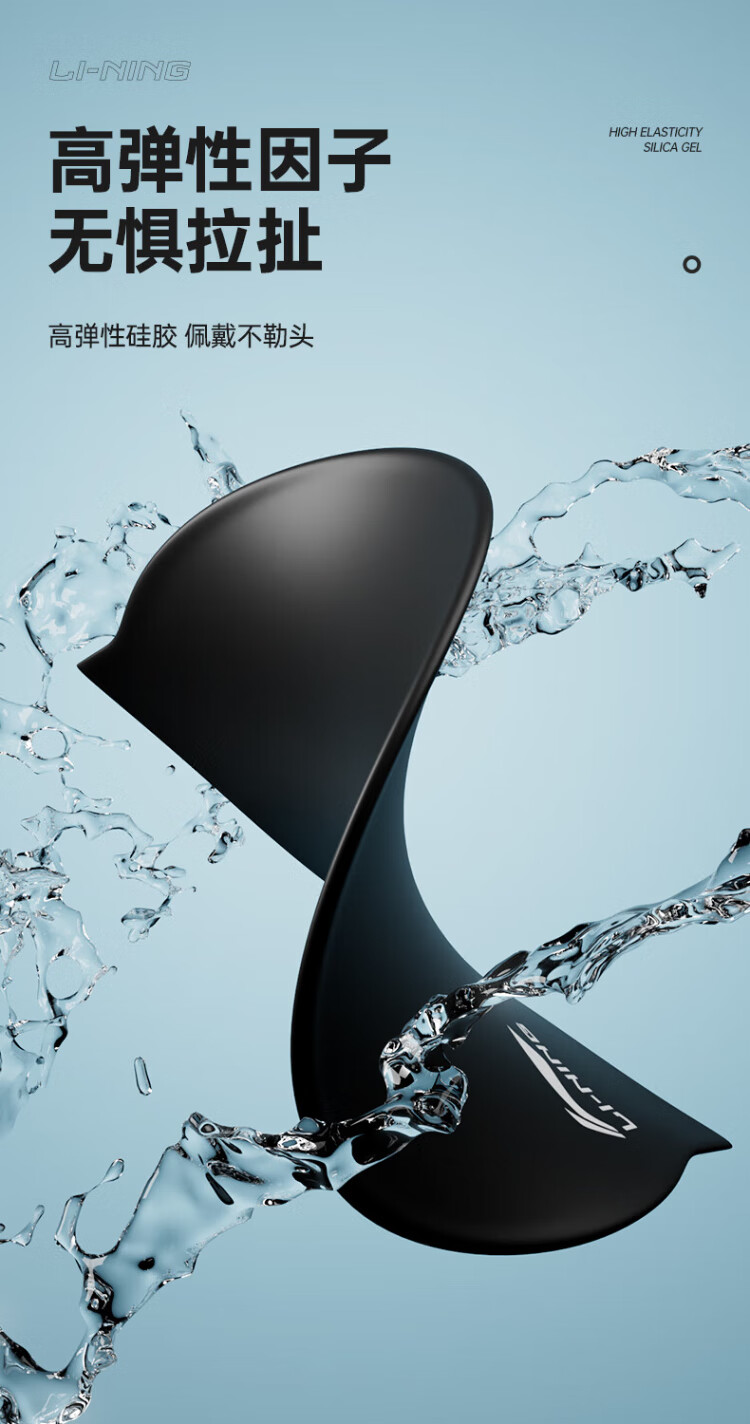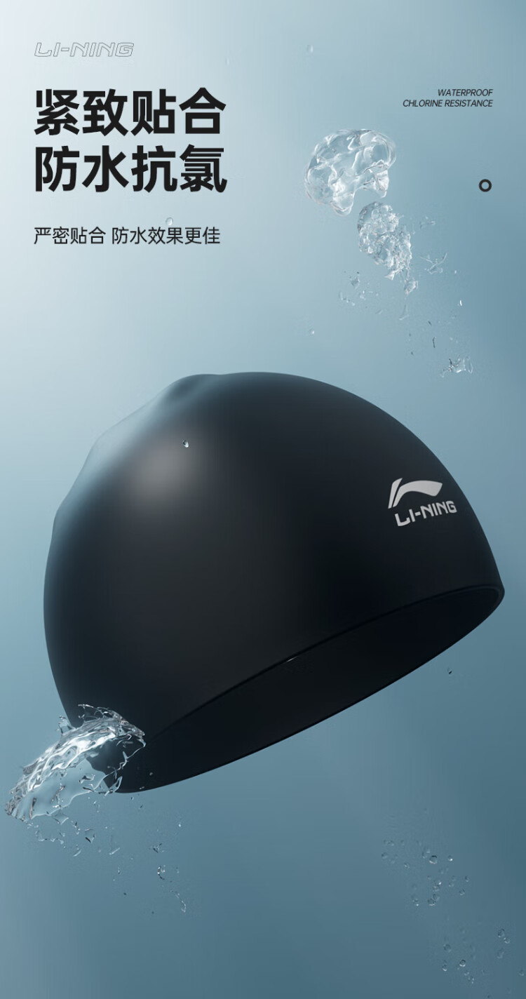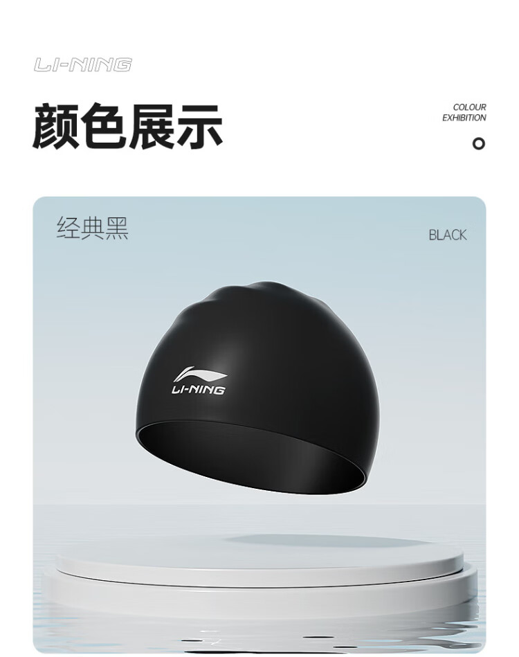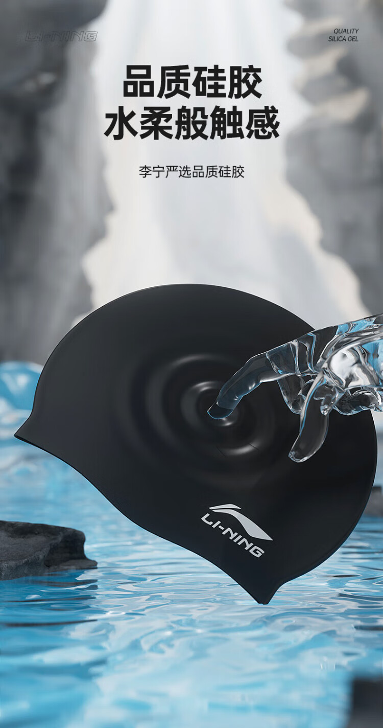 Li Ning (LI-NING) swimming cap, waterproof ear protection, comfortable long hair silicone swimming cap for men and women, adult professional training silicone swimming cap, cloth cap black