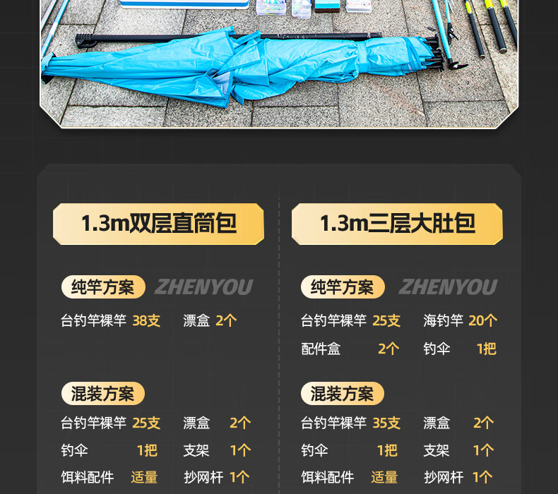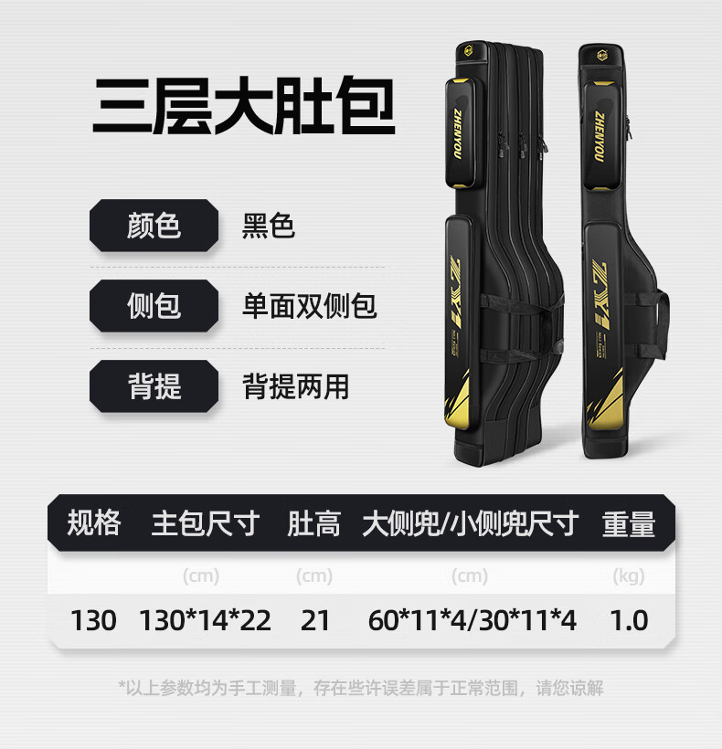 Zhenyou (Grsaed) fishing gear bag, fishing rod bag, lightweight waterproof three-layer belly bag 130cm multi-functional thickened sea rod bag fishing bag ZY1