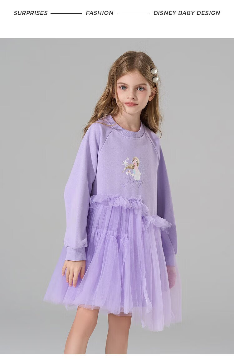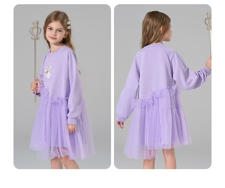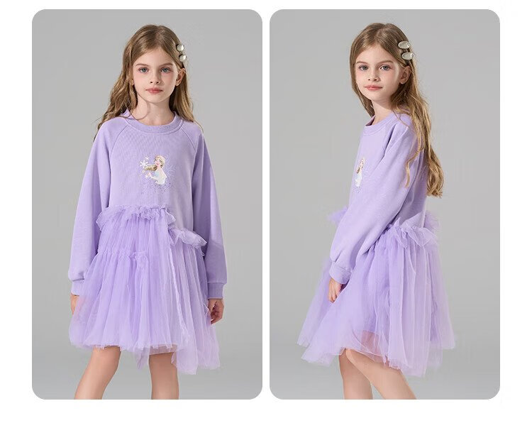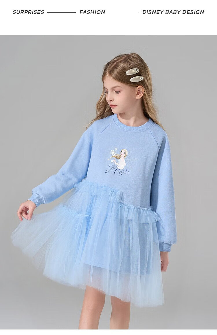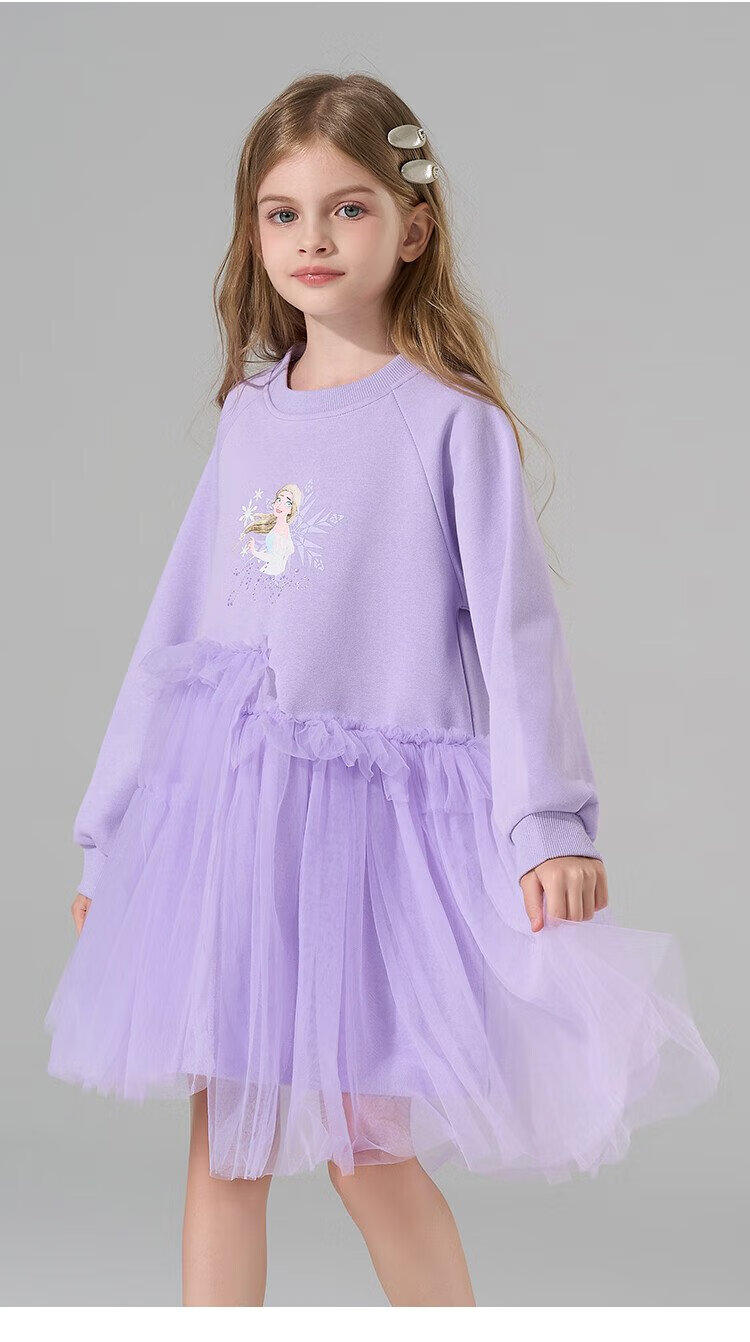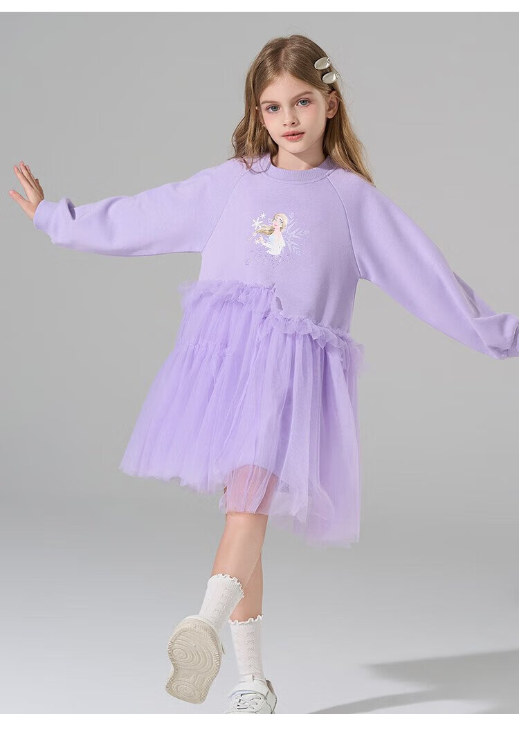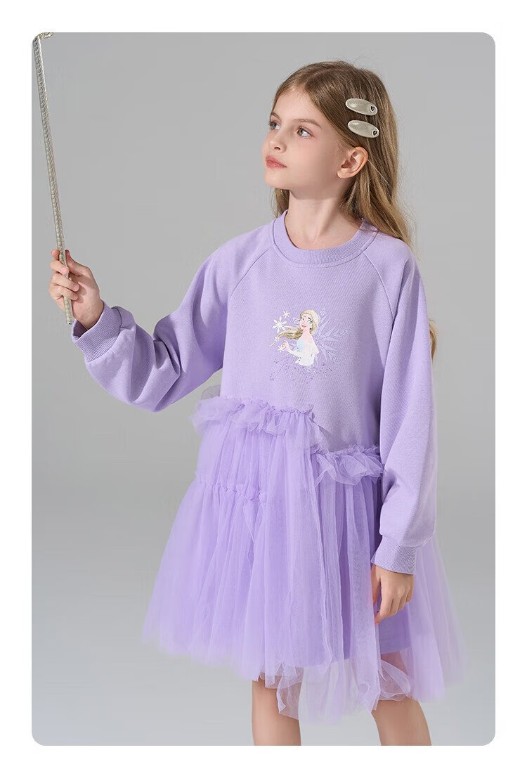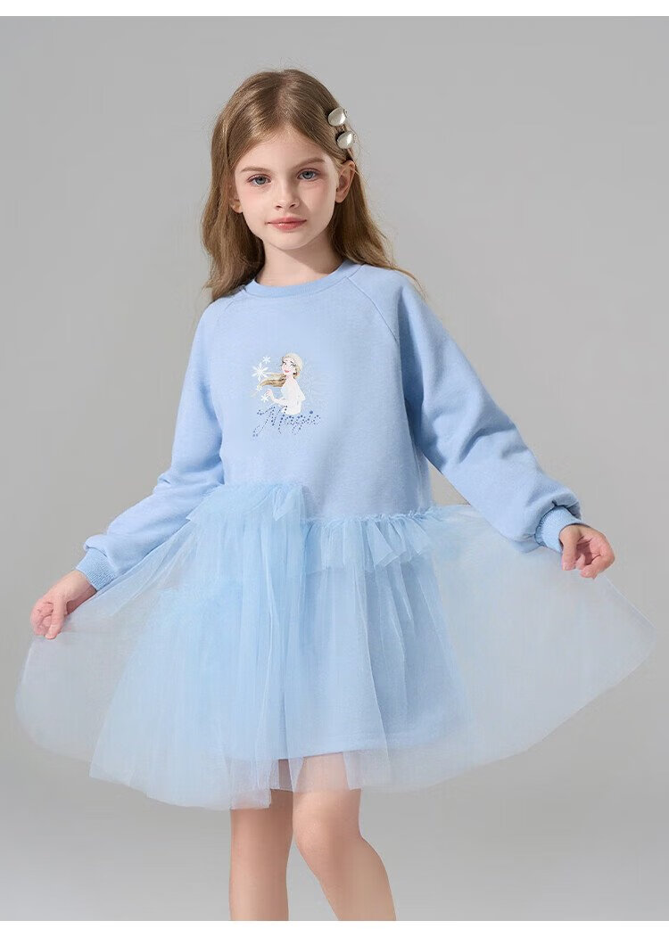 Disney (DISNEY) Elsa Princess Skirt 2025 New Sweater Skirt Girls Splicing Dress Children's Western-style Gauze Skirt Princess Skirt