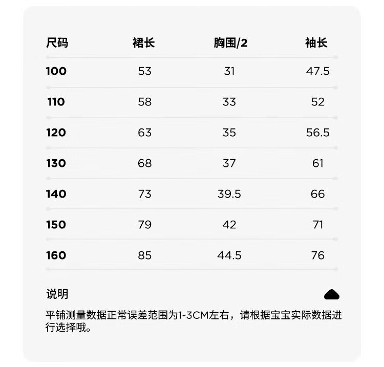 Size (cm) 42 44 46 48 50