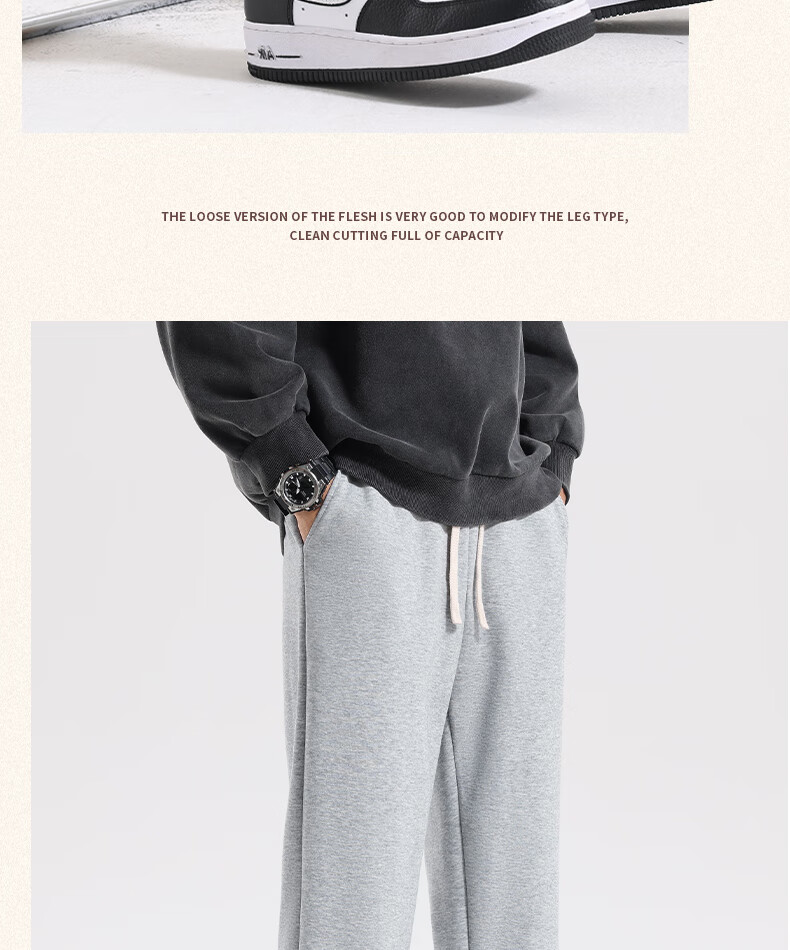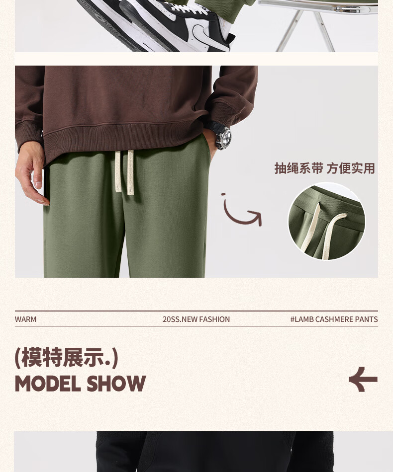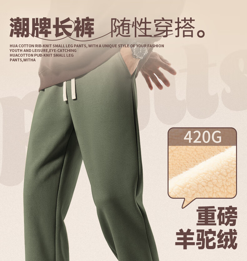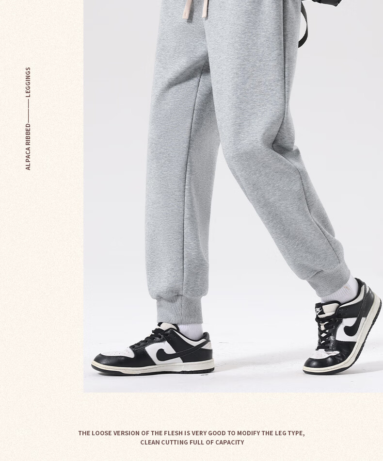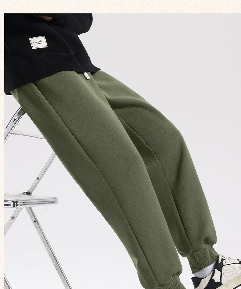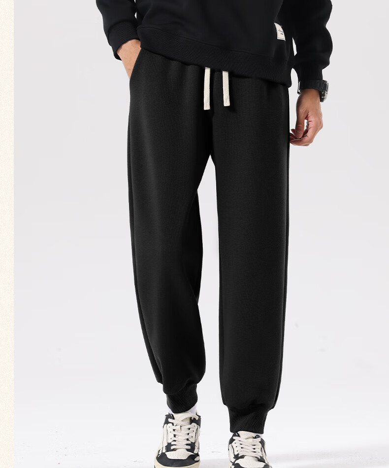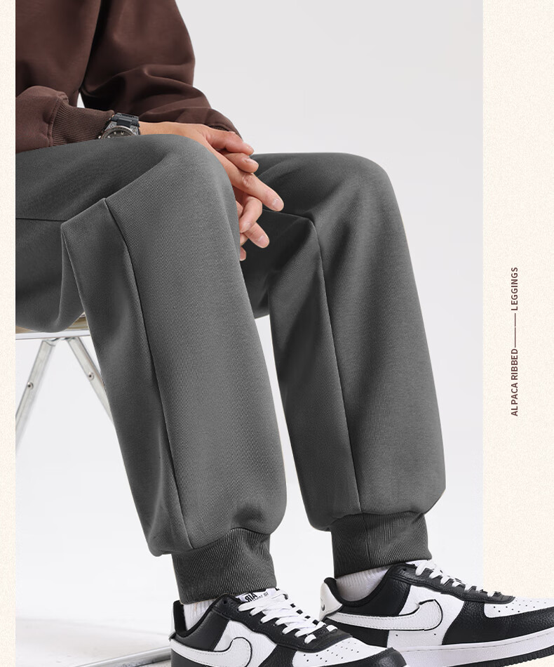 MINISO American casual heavyweight leggings men's winter sports plus velvet warm loose leggings long pants dark gray L