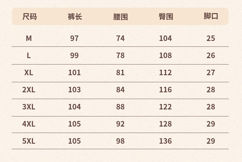 Outseam (cm) 99 cm 101.5 cm 104 cm 106.5 cm 109 cm