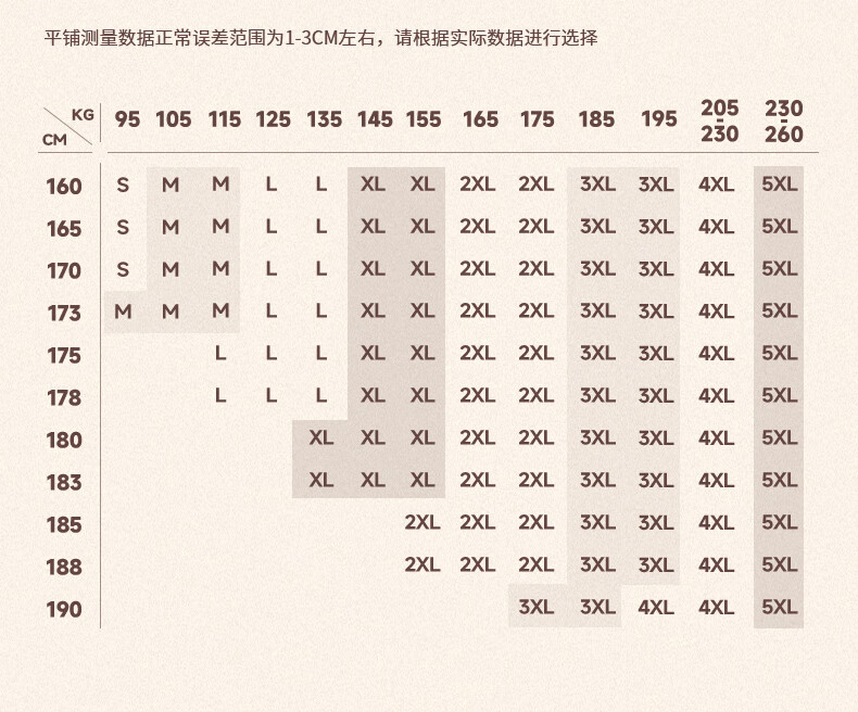 China (cm) 160-165/84-86 165-170 / 88-90 167-172 / 92-96 168-173 / 98-102 170-176 / 106-110