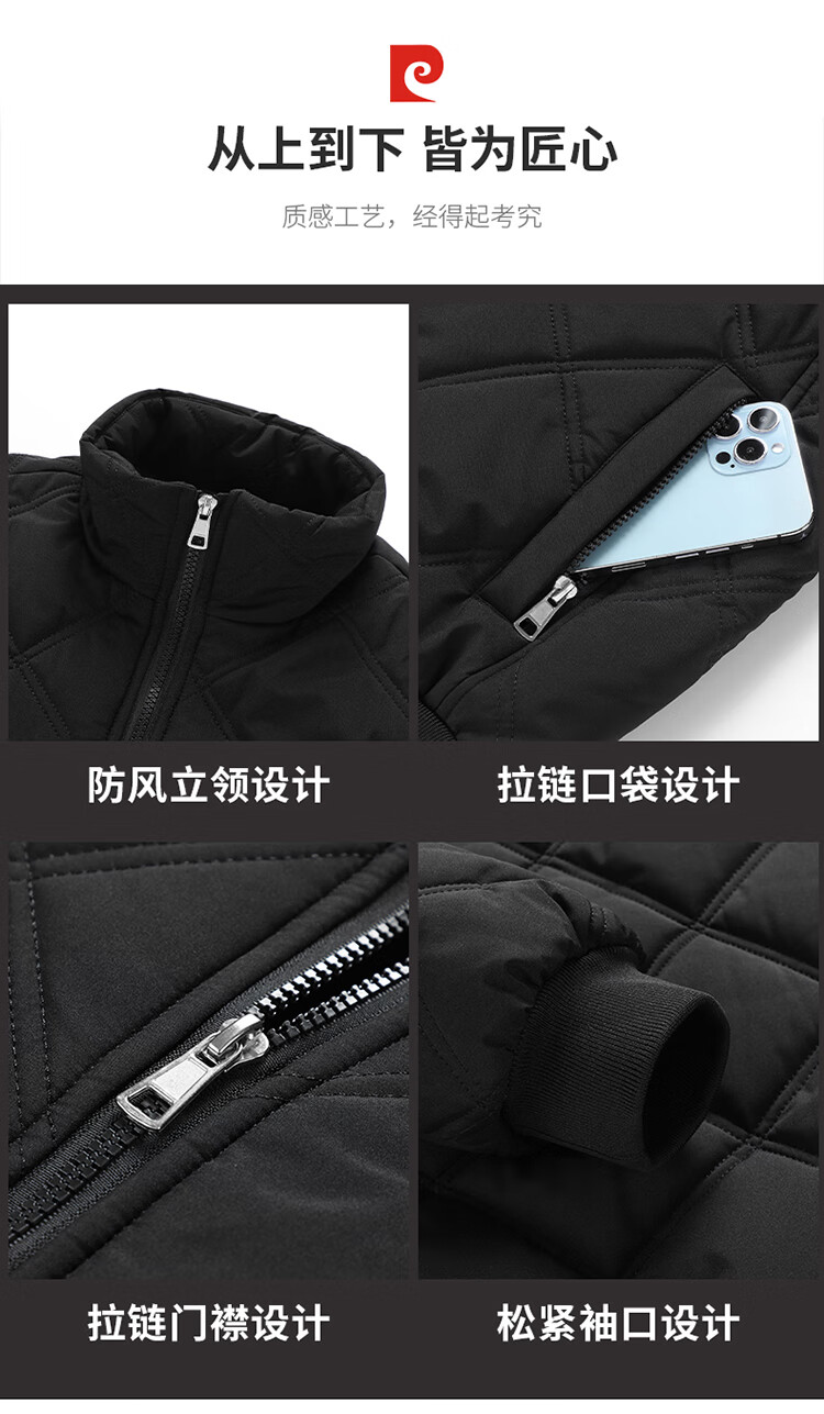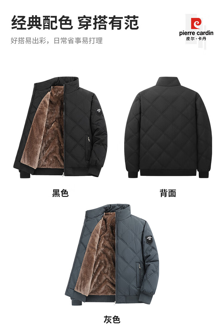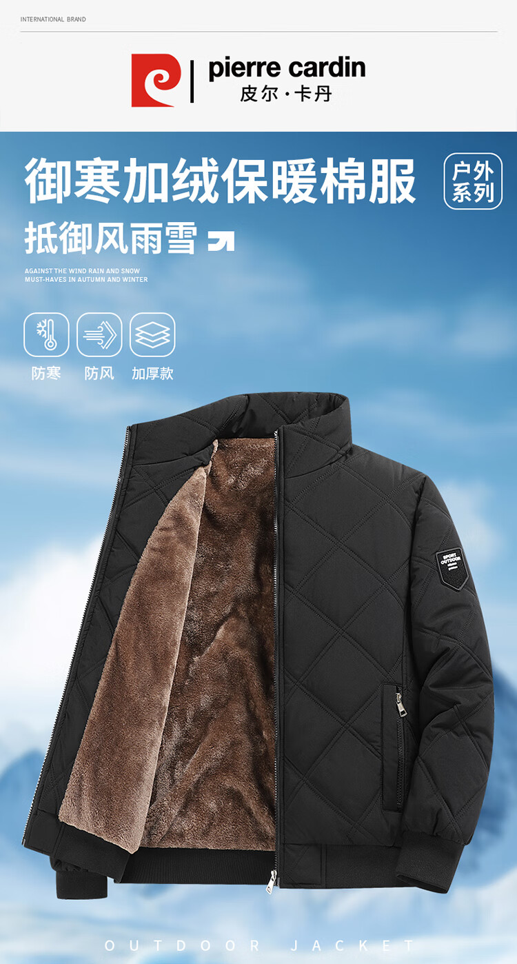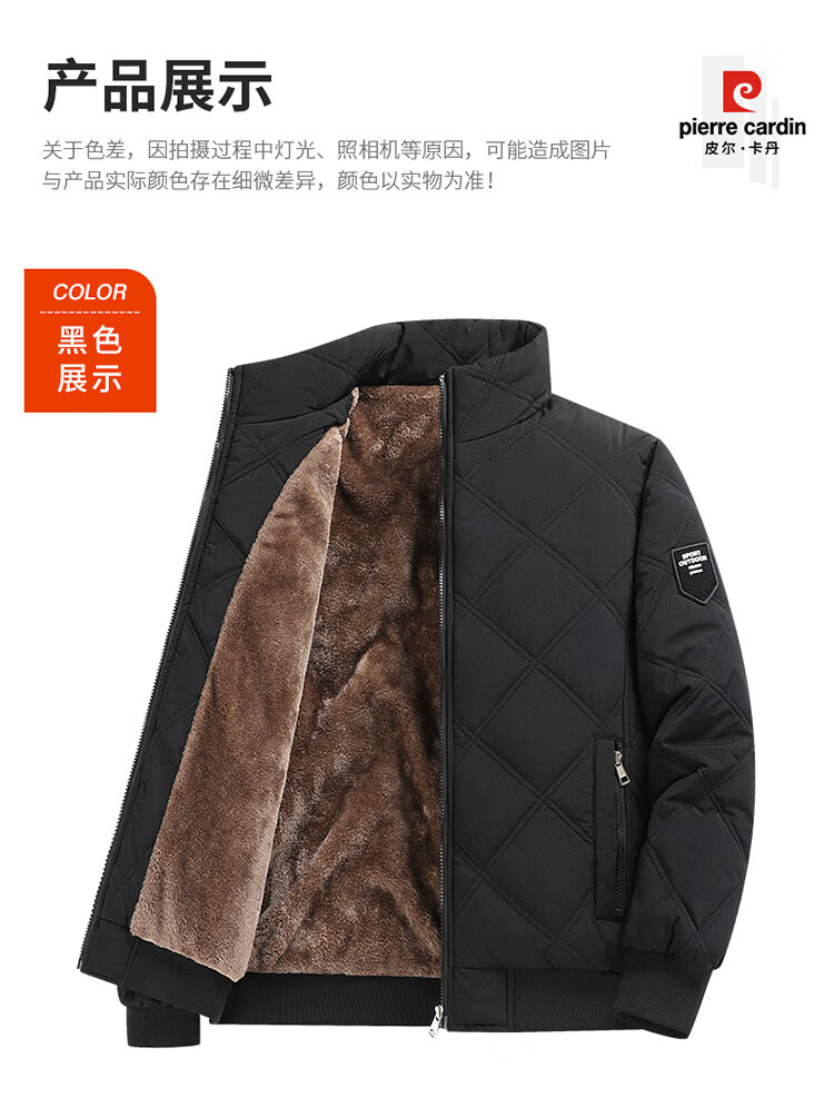 Pierre Cardin cotton-padded jacket for men in autumn and winter, thickened velvet and warm cotton jacket, loose casual cold-proof clothing, cotton-padded jacket for men, black 2XL