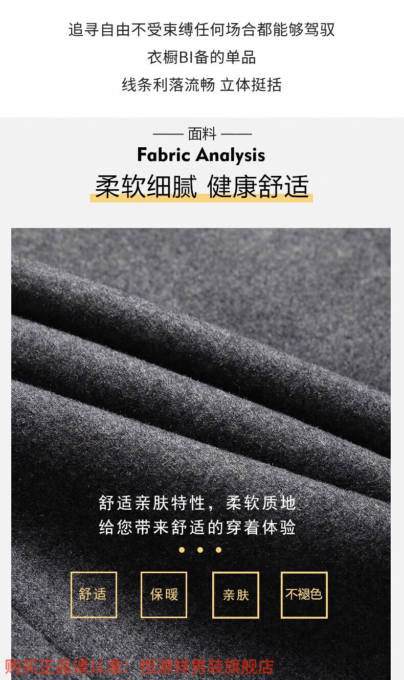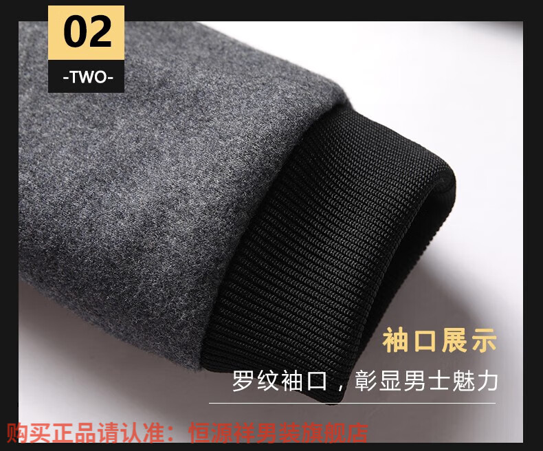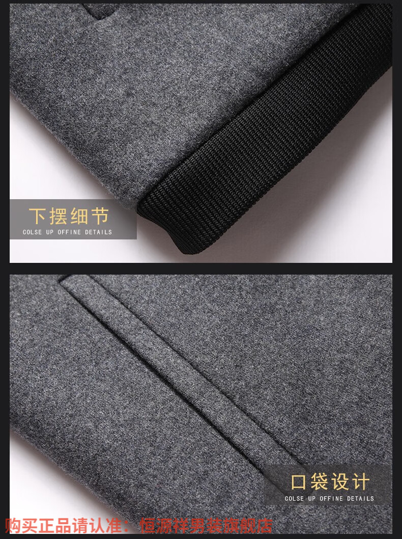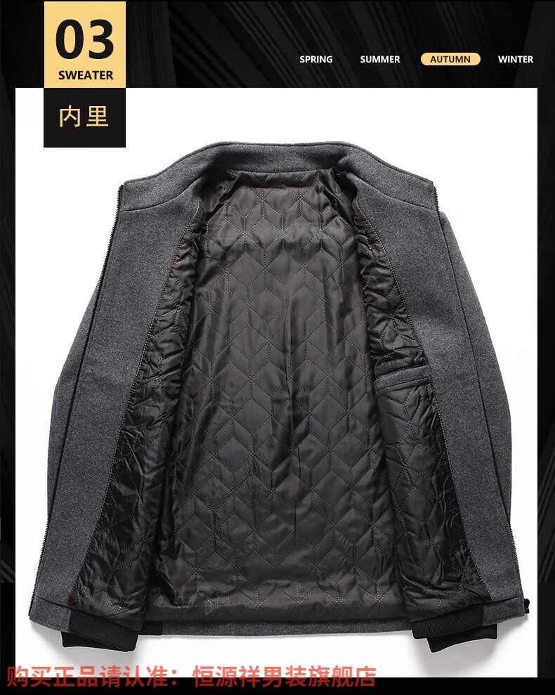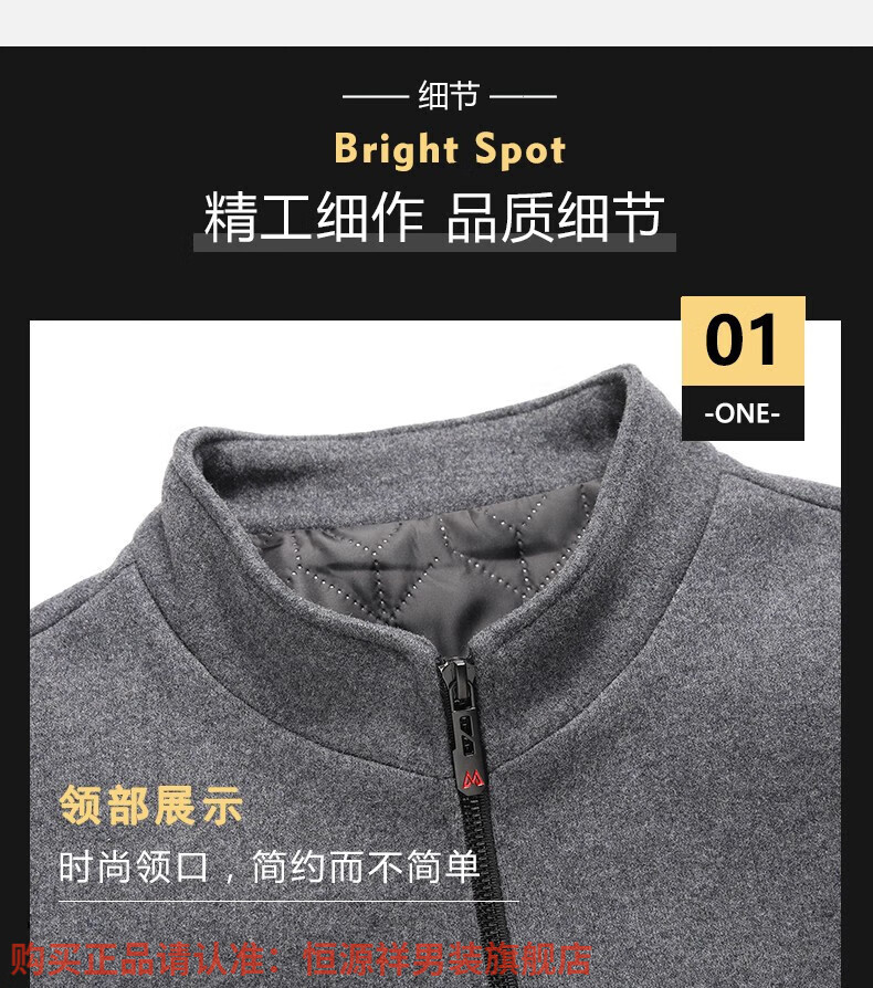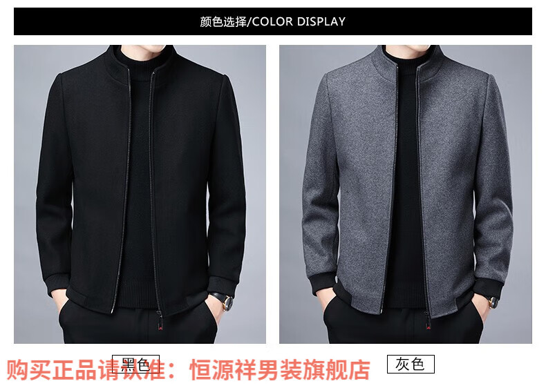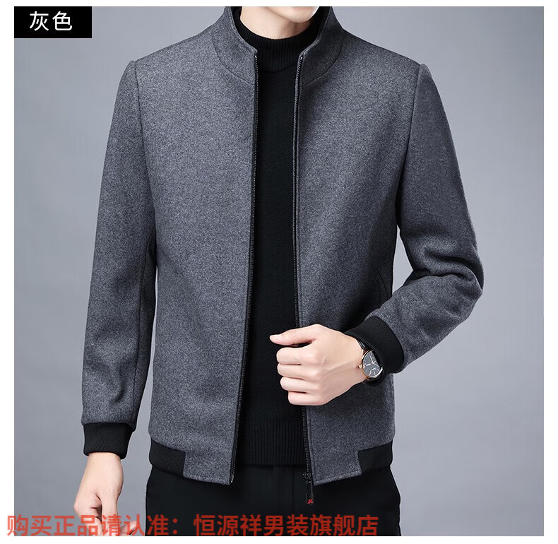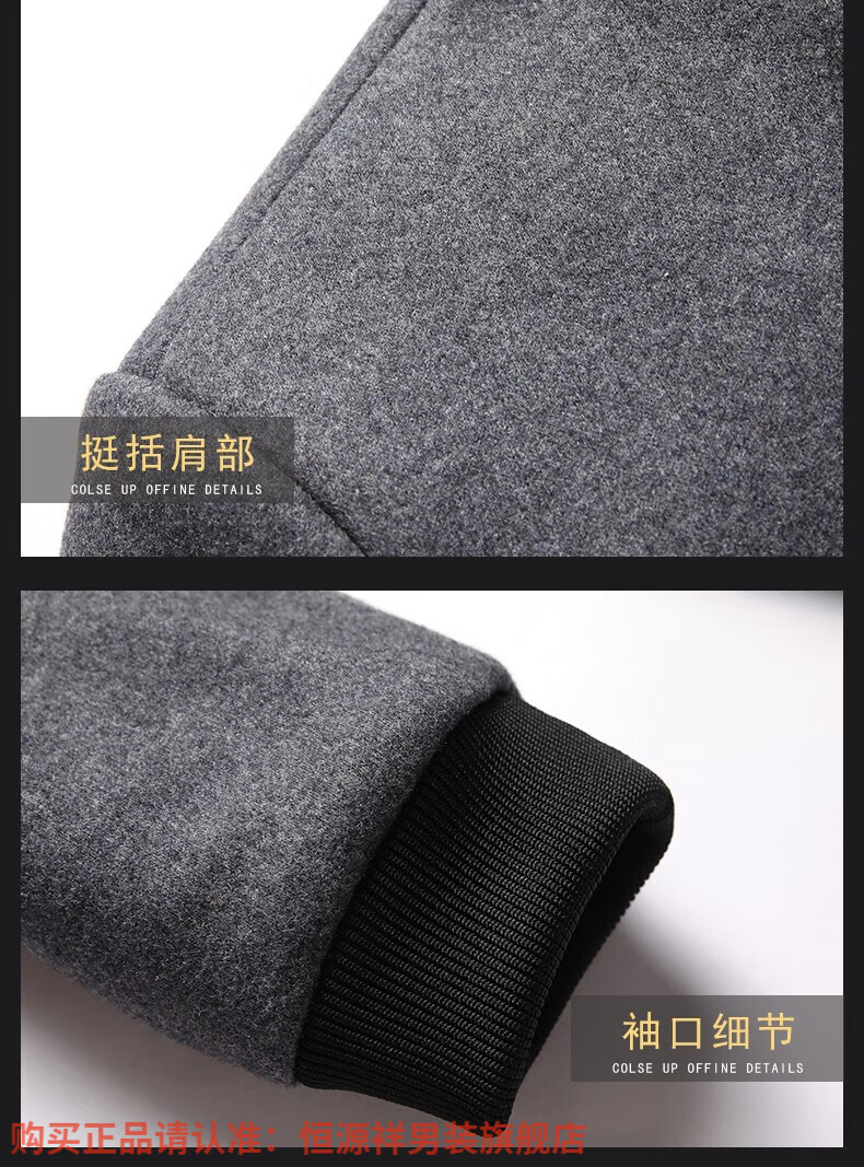 Hengyuanxiang men's wool jacket autumn and winter stand collar fashion jacket casual tops men's middle-aged dad woolen jacket black XL 180