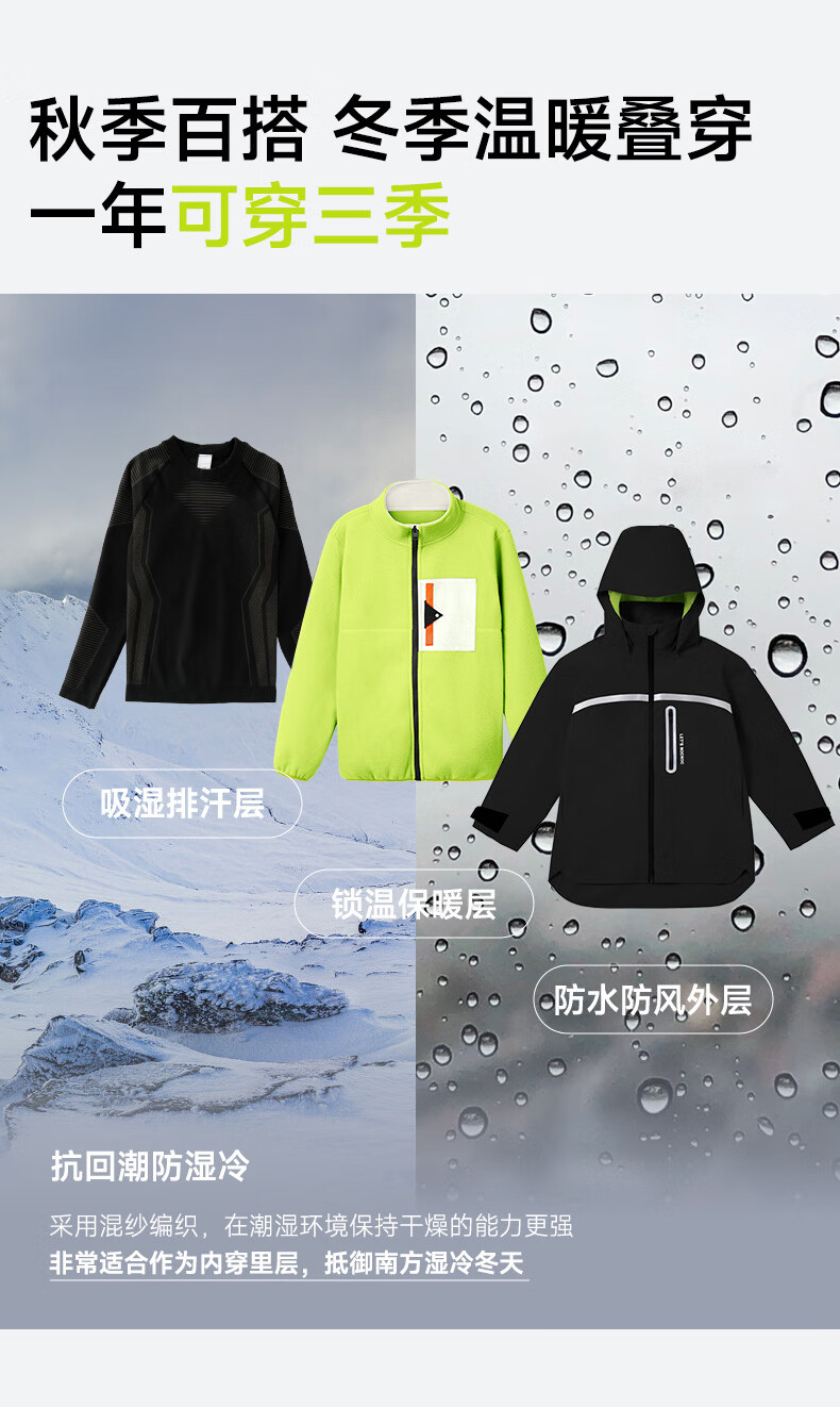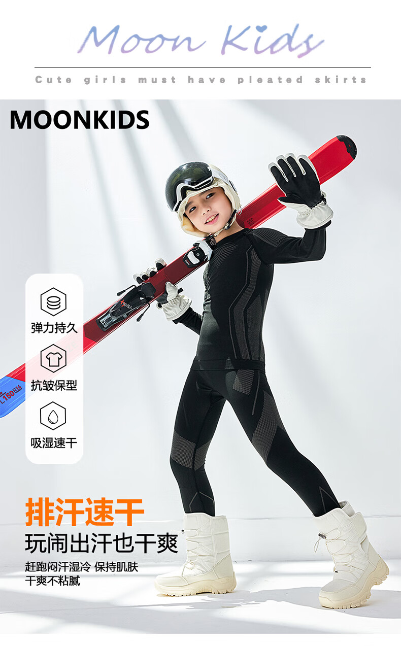 Moonkids children's sports quick-drying suit autumn and winter outdoor training ski clothing boys and girls 2025 winter warm functional clothing