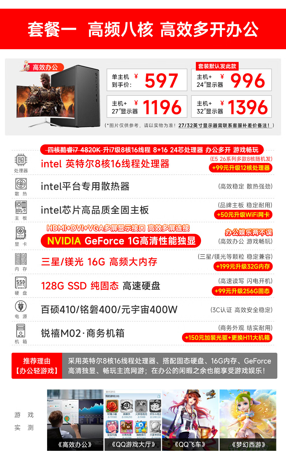 Navigator Intel i5 Core i7 liter 54 core/RTX5060/30604060 desktop computer host DIY assembly computer complete set of business office e-sports live game computer host + monitor one i7 level 24 core/16G memory/performance independent display