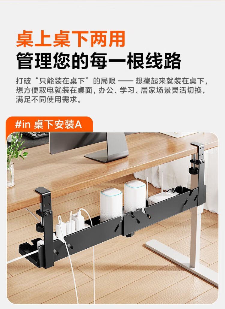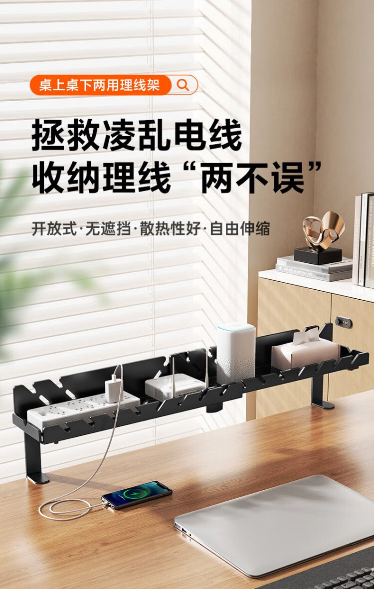 Behind the Scenes Hero TV Accessories Desktop Cable Management Rack Cable Manager Trough Box No-Punch Desktop Data Cable Strip Storage Box Organizing Line Wire Artifact Small Black