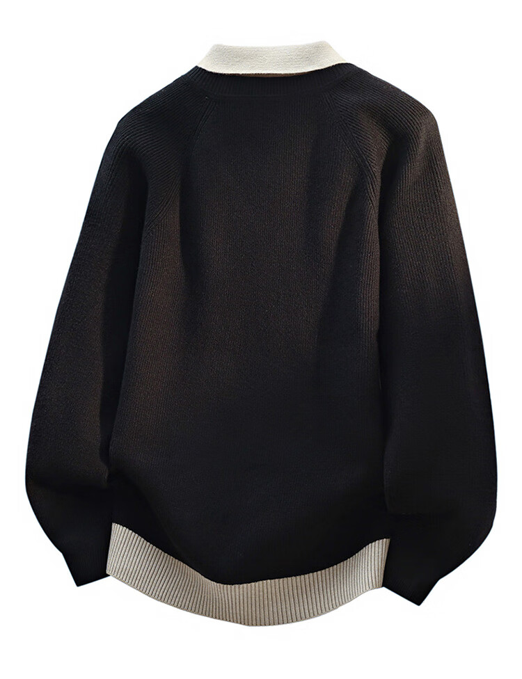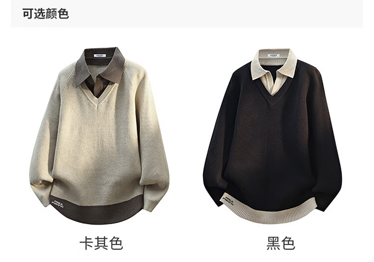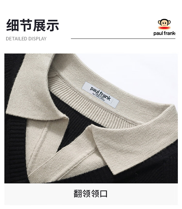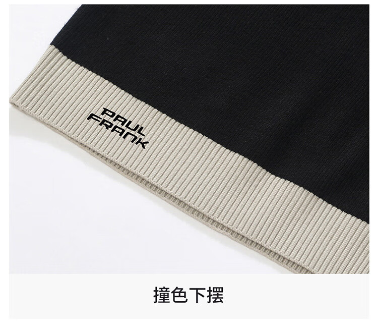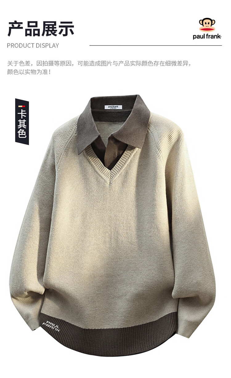Big mouth monkey (paul frank) sweater men's winter fake two-piece knitted sweater men's warm base shirt top woolen clothes black XL