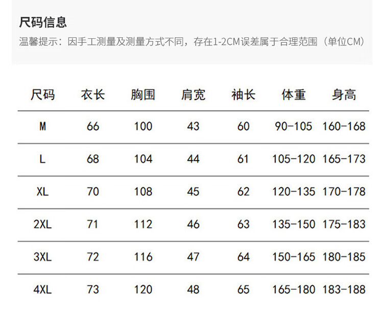 China (cm) 165 / 88-90 170 / 96-98 175 / 108-110 180 / 118-122 185 / 126-130
