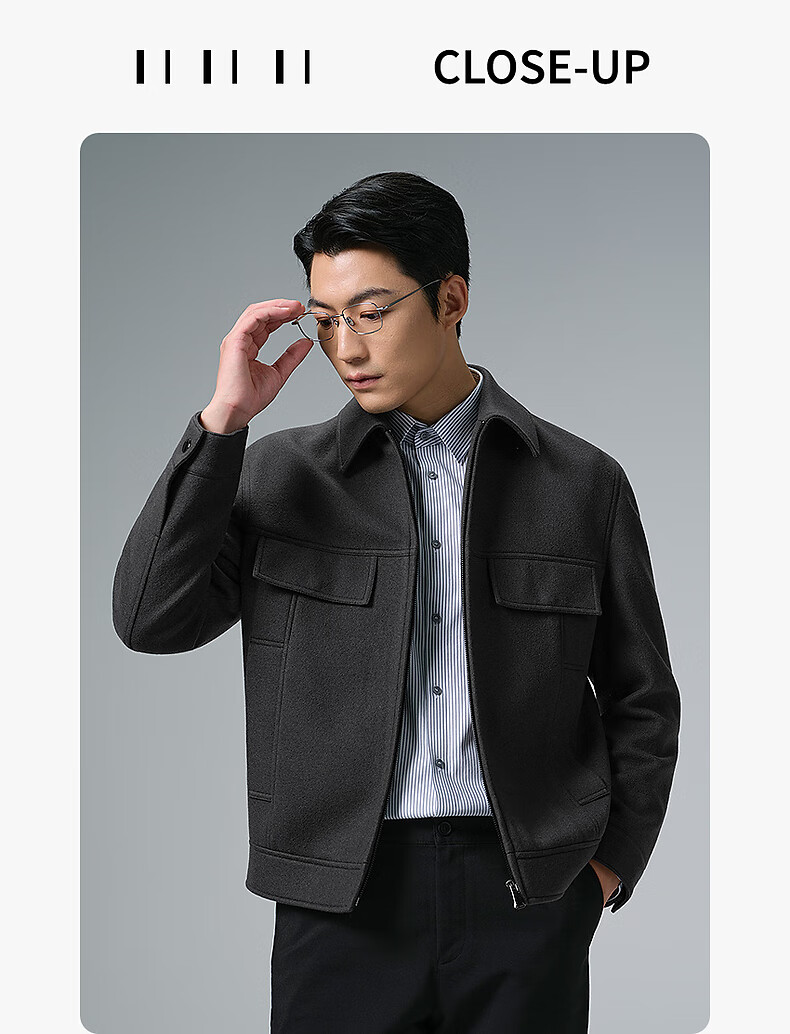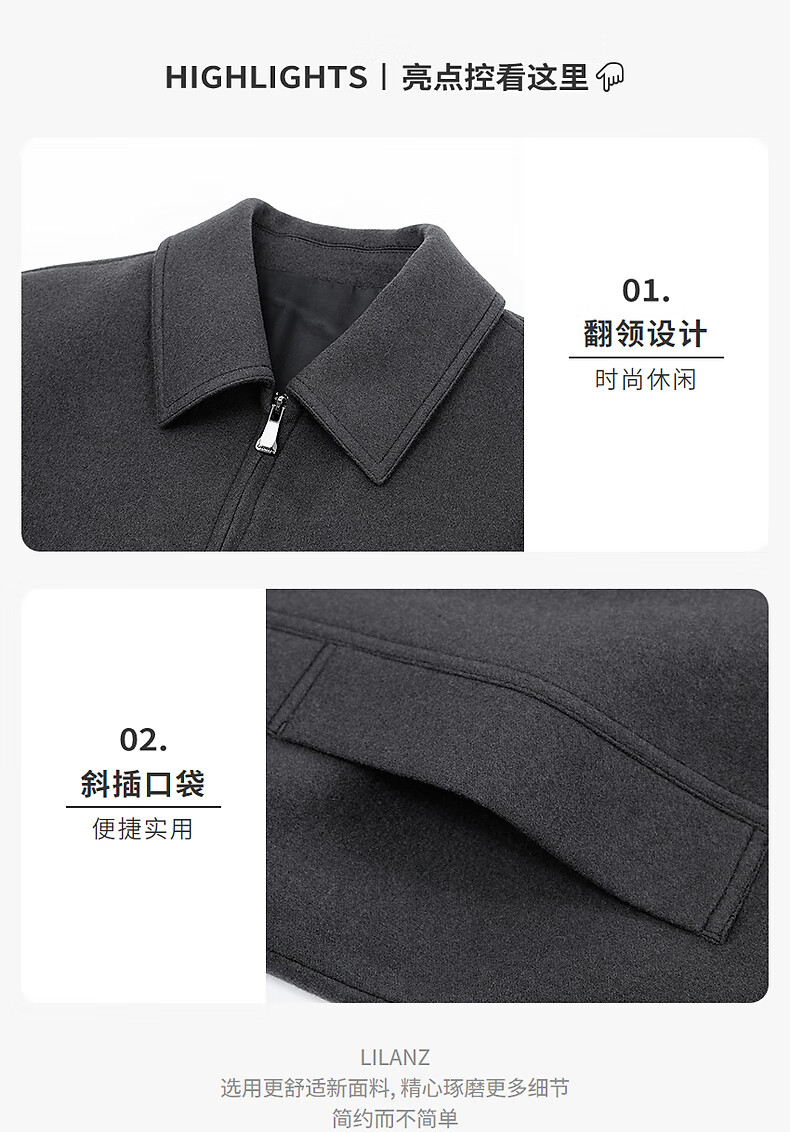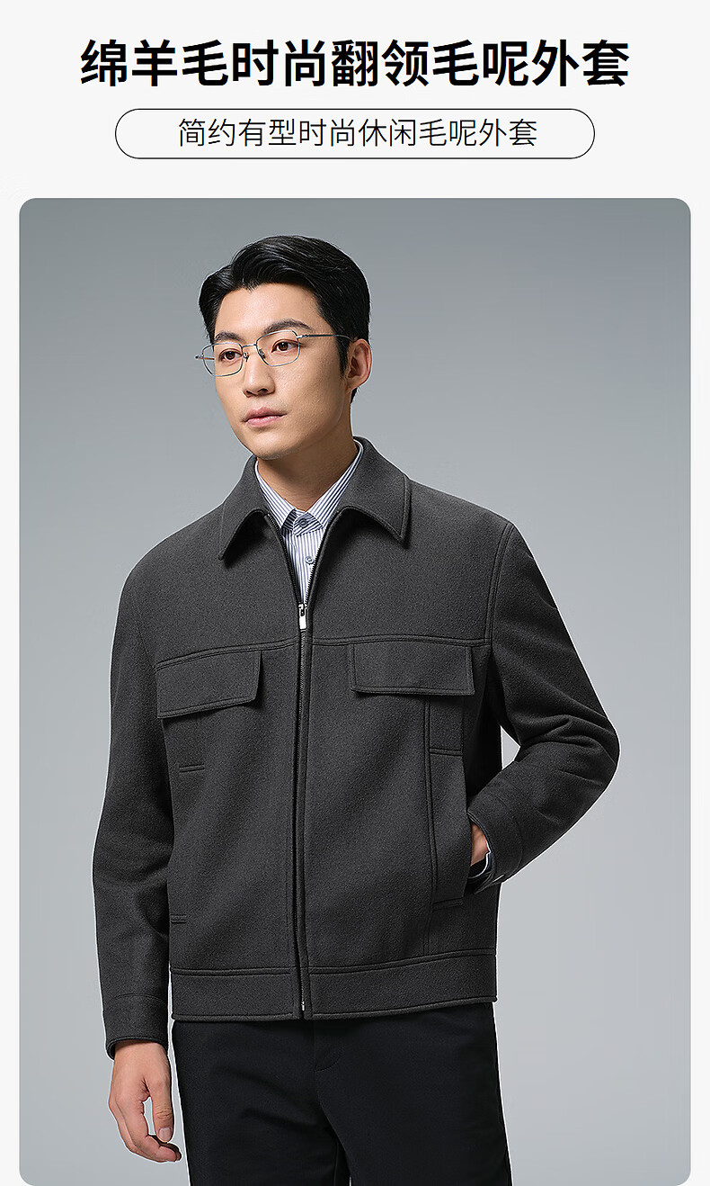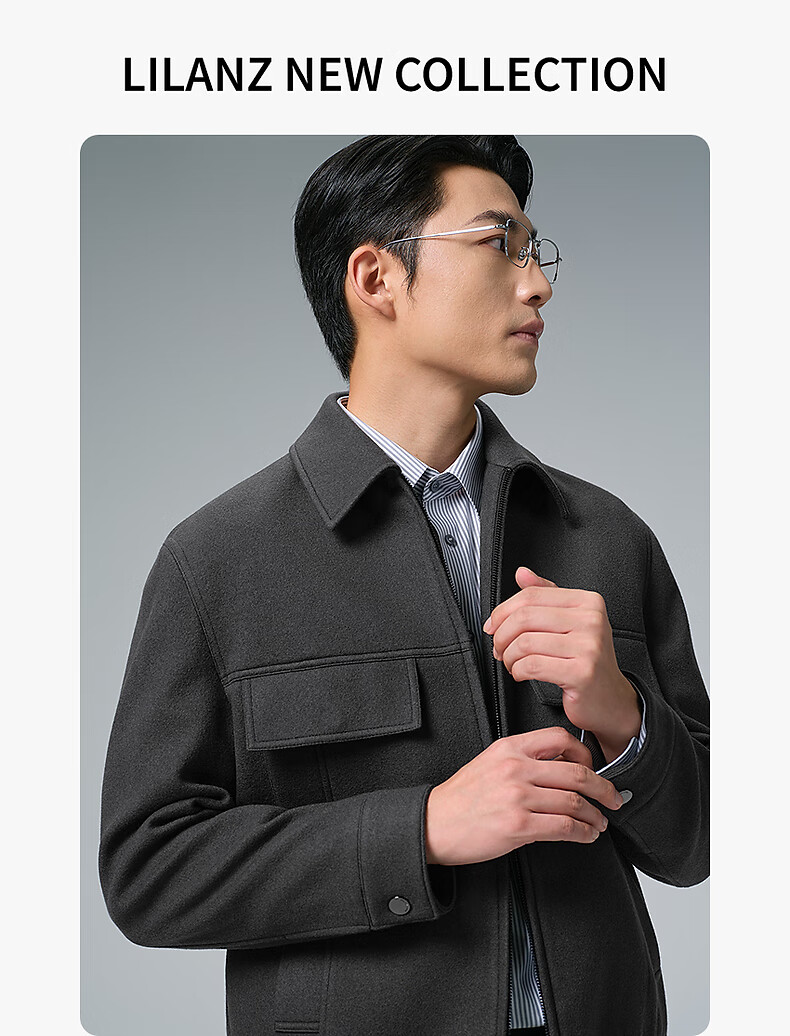 Abrigo de lana Lilang, abrigo corto de invierno con solapa para hombre, novedad de 2025, abrigo informal de lana de oveja para hombre, chaqueta de lana