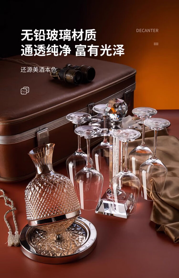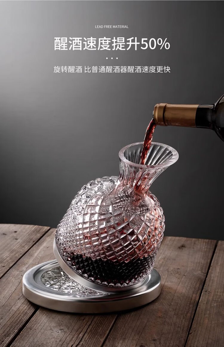 FANKAQI high-end crystal rotating red wine decanter, light luxury glass wine dispenser, wine pourer, high-end flask
