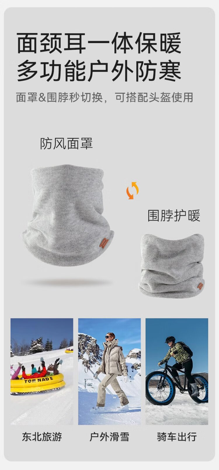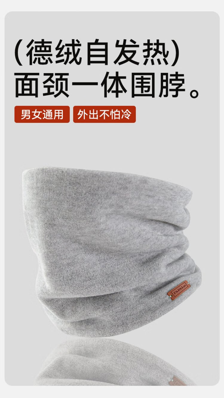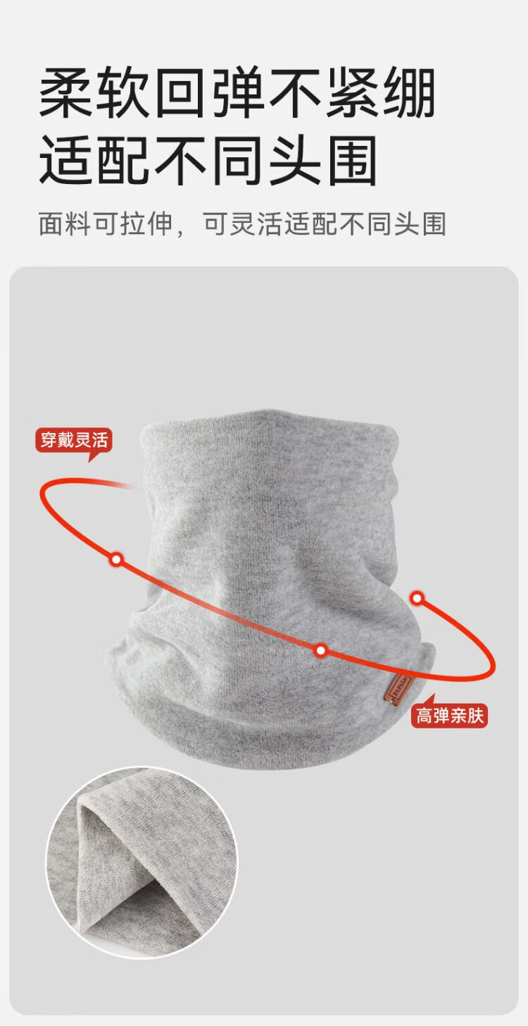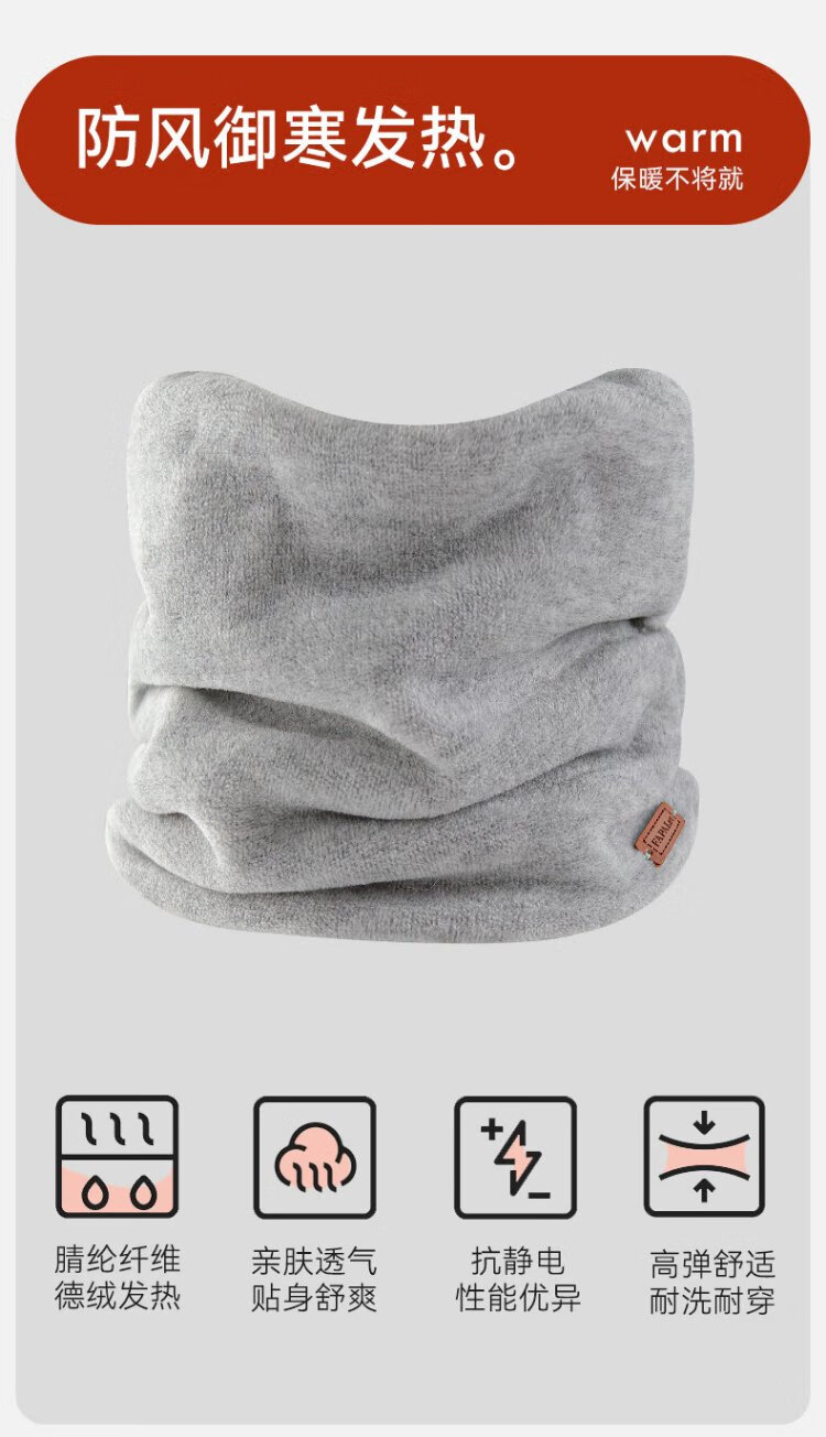 French style cycling scarf for men, warm neck cover for autumn and winter, windproof and velvet cycling scarf for women, light gray