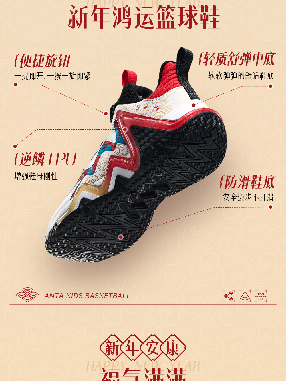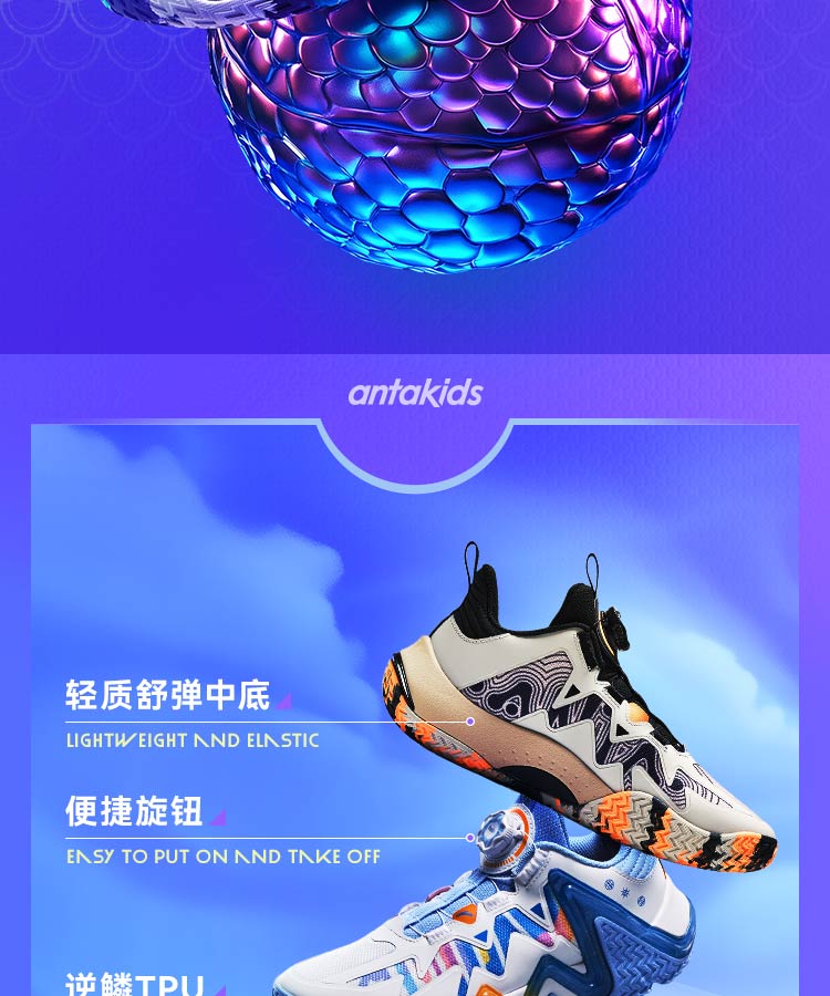 ANTA children's sports shoes for boys 2026 spring wear-resistant practical cushioning knob reverse scale basketball shoes A12511108J
