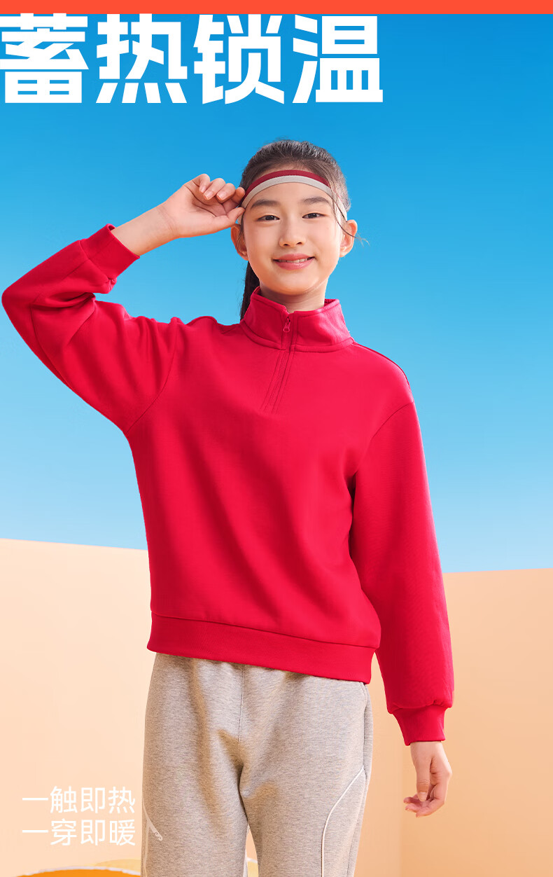 Peak children's clothing children's sweatshirts 2025 new boys' velvet red tops autumn and winter teenagers' national fashion new year clothes are handsome