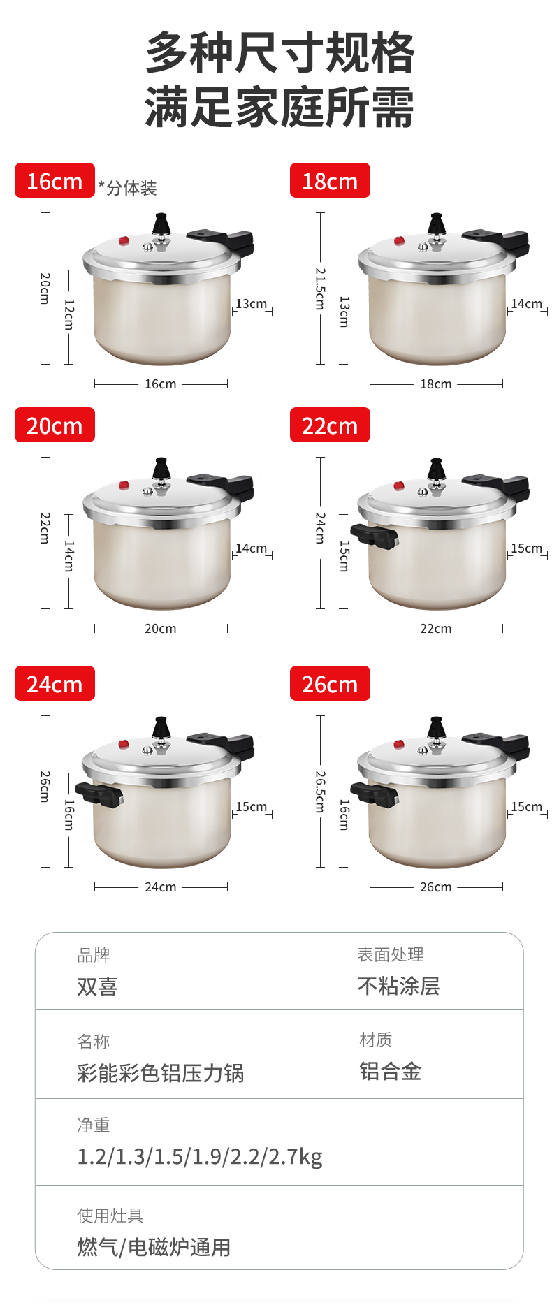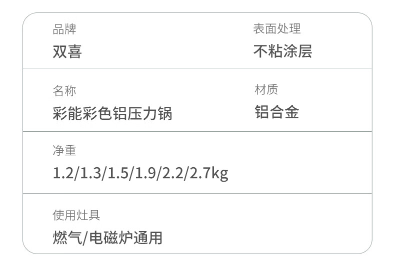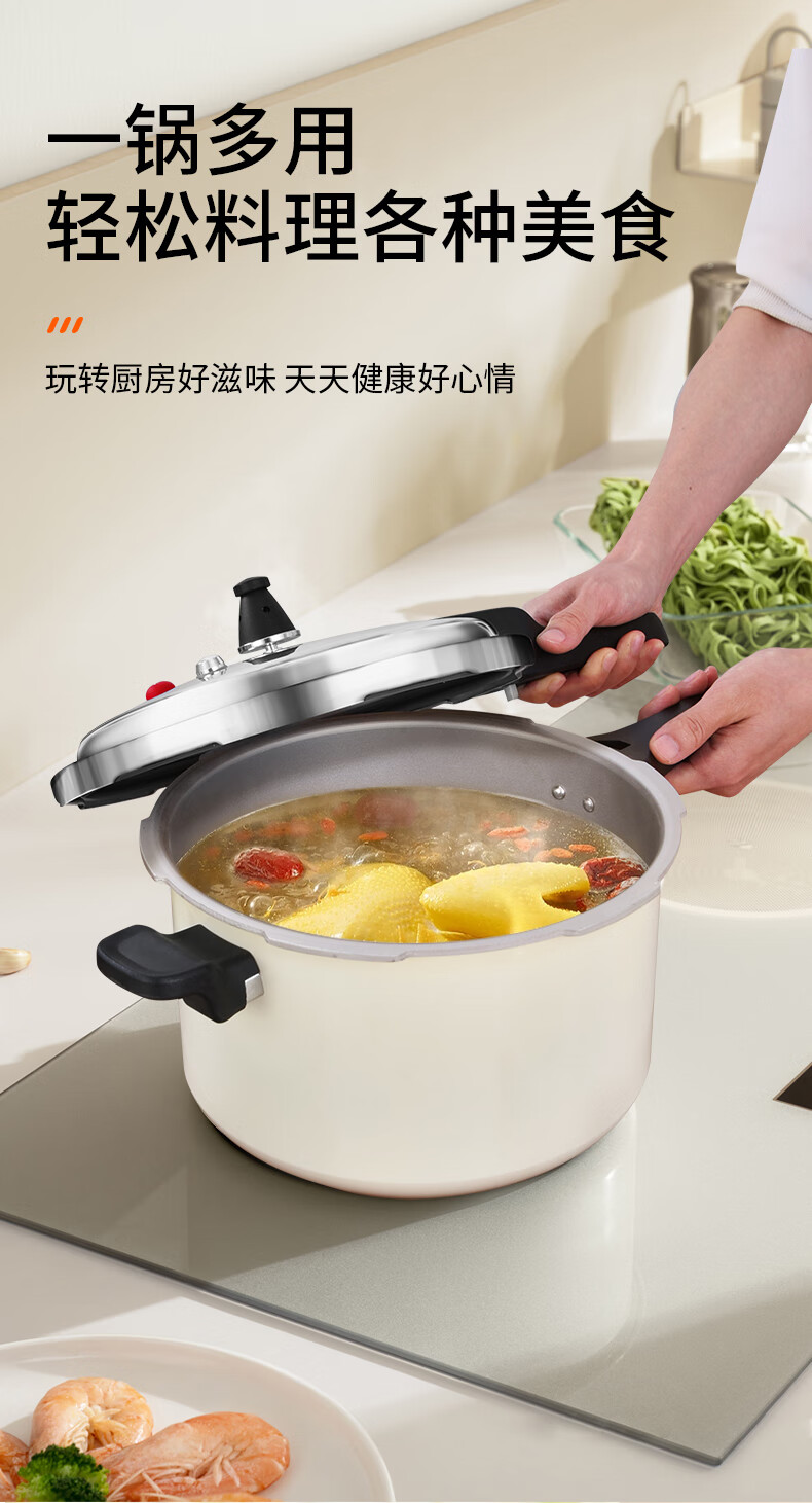 Shuangxi pressure cooker household explosion-proof pressure cooker aluminum alloy gas induction cooker universal ivory white 24CM/7.5L