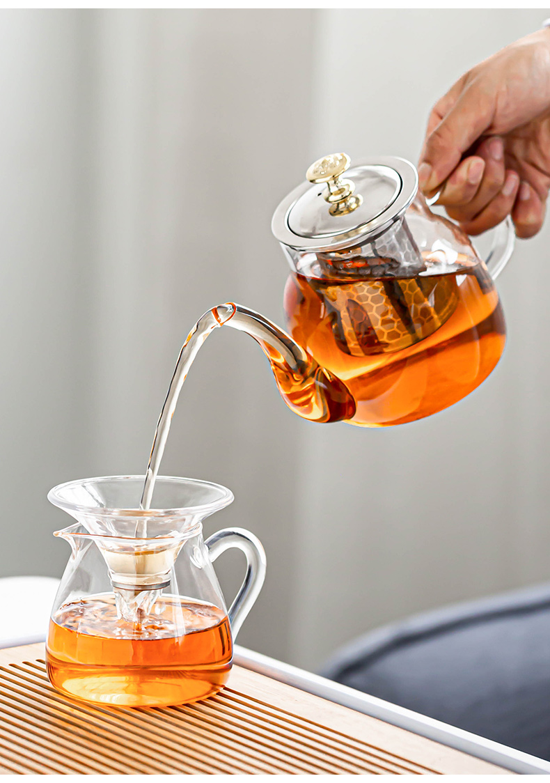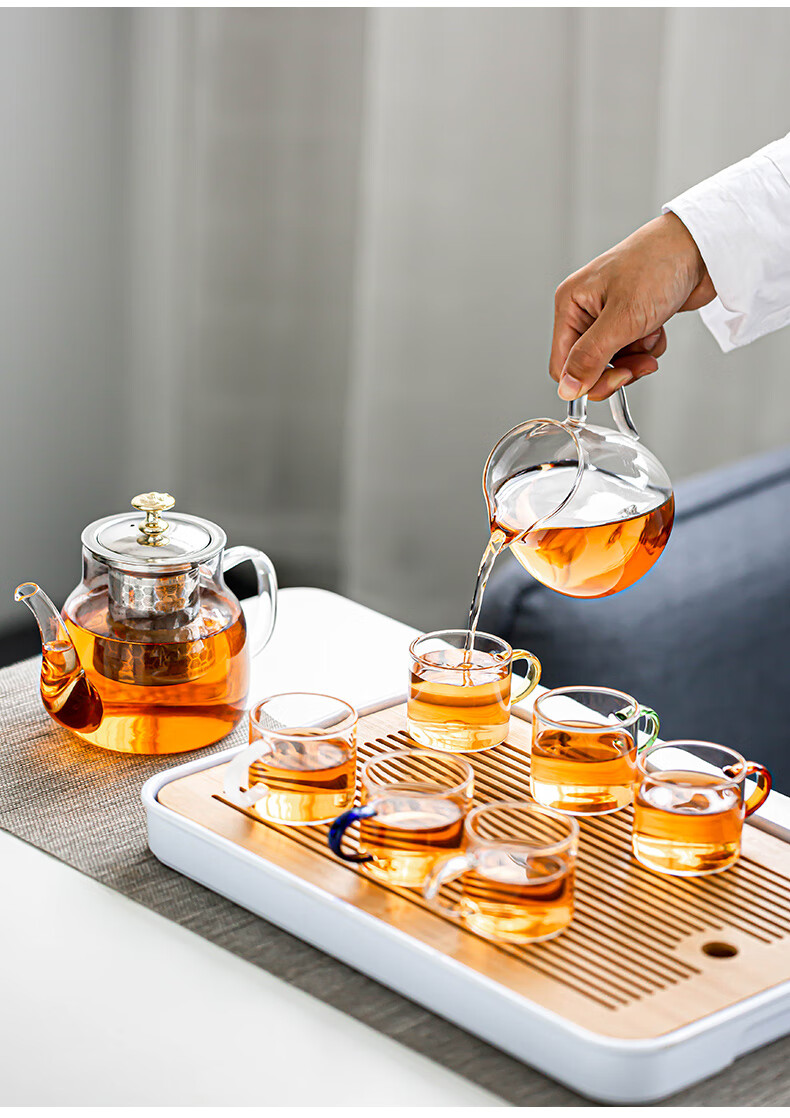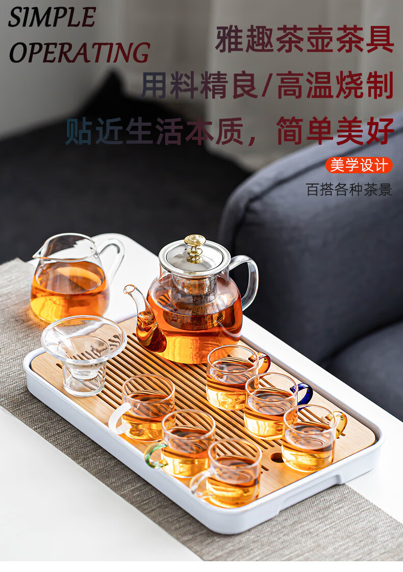 Porcelain brand tea set glass tea set household tea tray set with filter teapot thickened heat-resistant teapot tea cup large capacity elegant large capacity 11 pieces