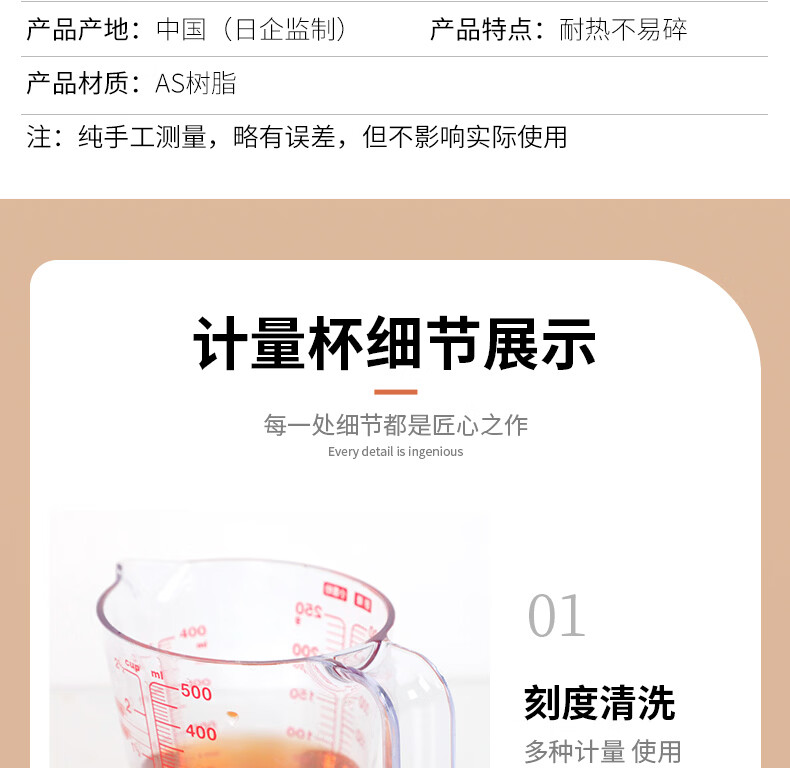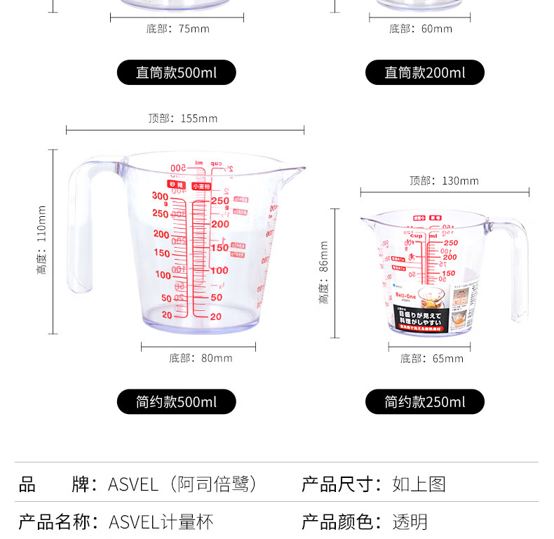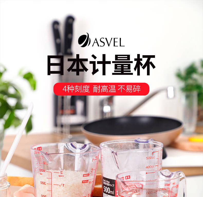 ASVEL measuring cup kitchen scale cup milk egg cup cake baking tool heat-resistant and high-temperature imported from Japan 500ML