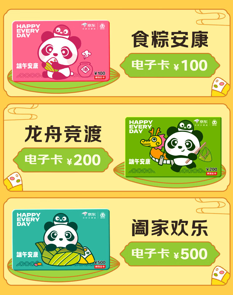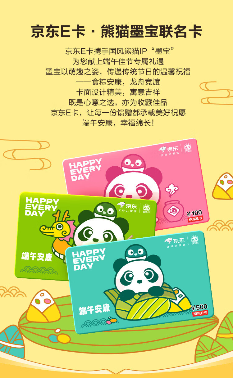 Jingdong E Card Dragon Boat Festival Card Panda Mobao Co-branded 200 yuan (electronic card) official self-operated gift card/shopping card/pickup card