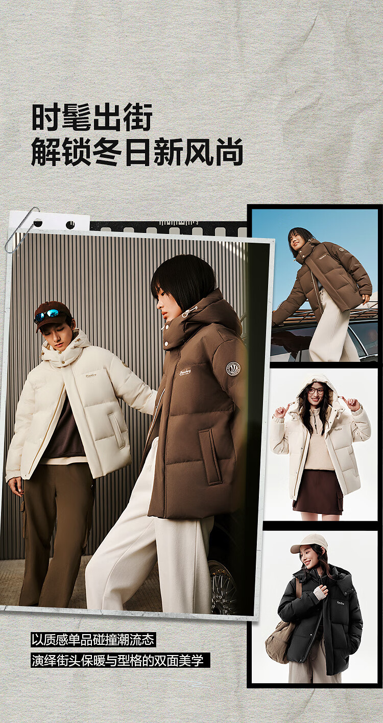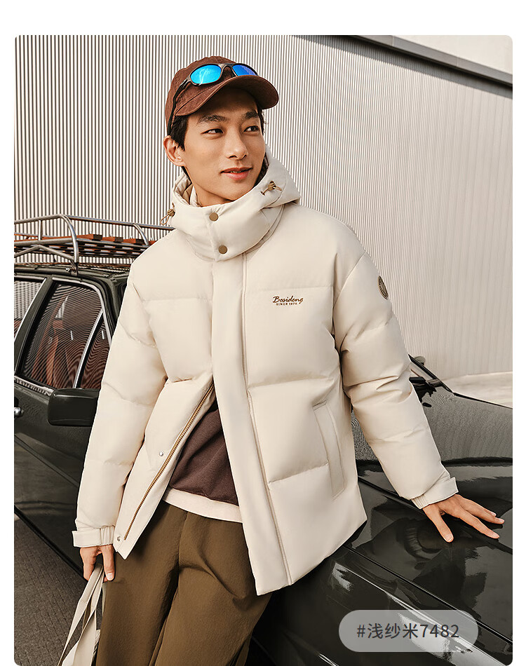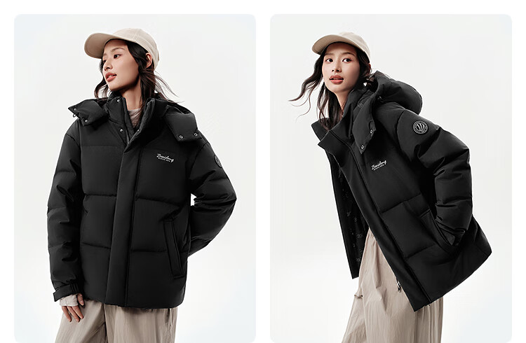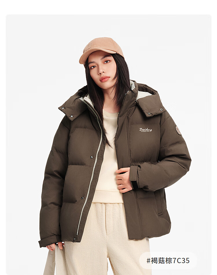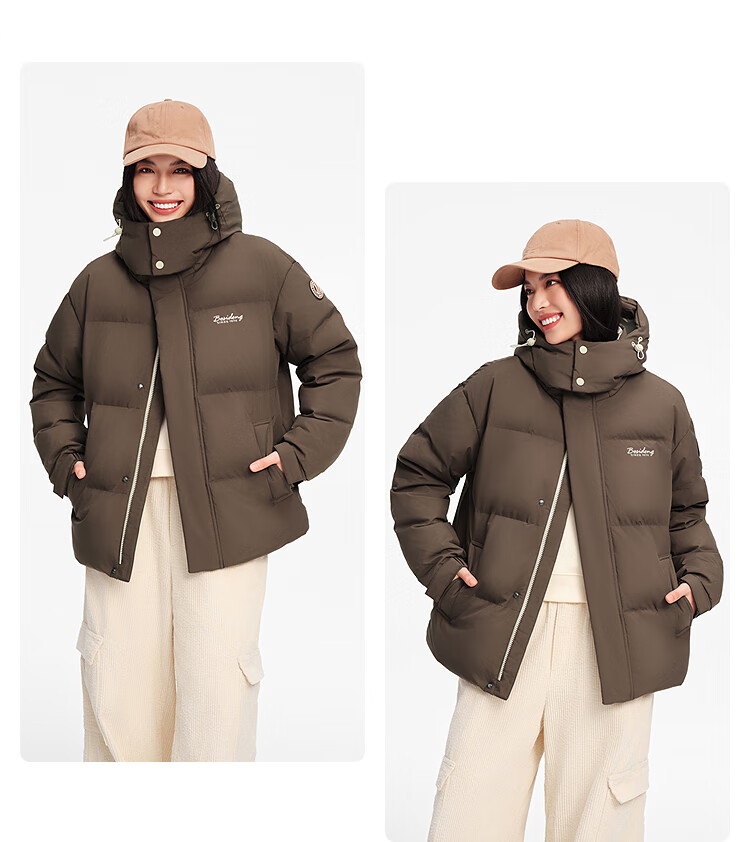 波司登25年冬季羽绒服男女情侣同款修身短款休闲加厚脱卸帽外套