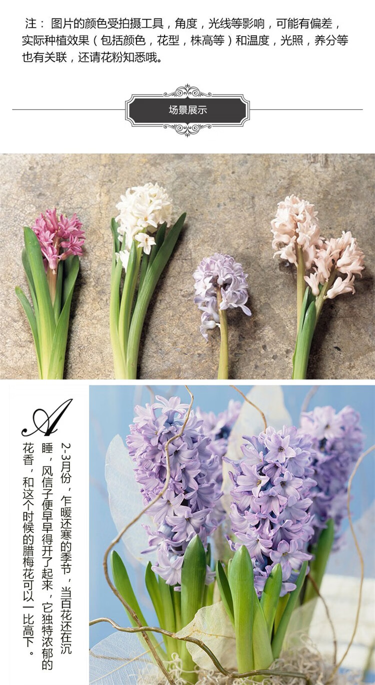 Zuojia Garden Imported 3 large hyacinth seed bulbs for hydroponics in the office, soil culture potted plants that bloom in winter and are easy for beginners to grow, 1 ball each of red, yellow, blue, white, pink and purple, a total of 6 balls, circumference 16-17cm