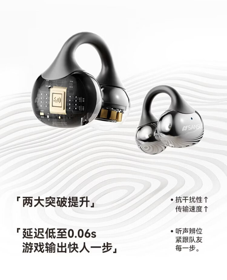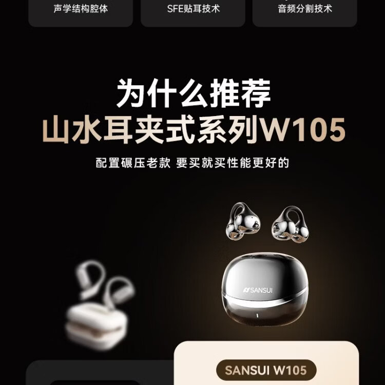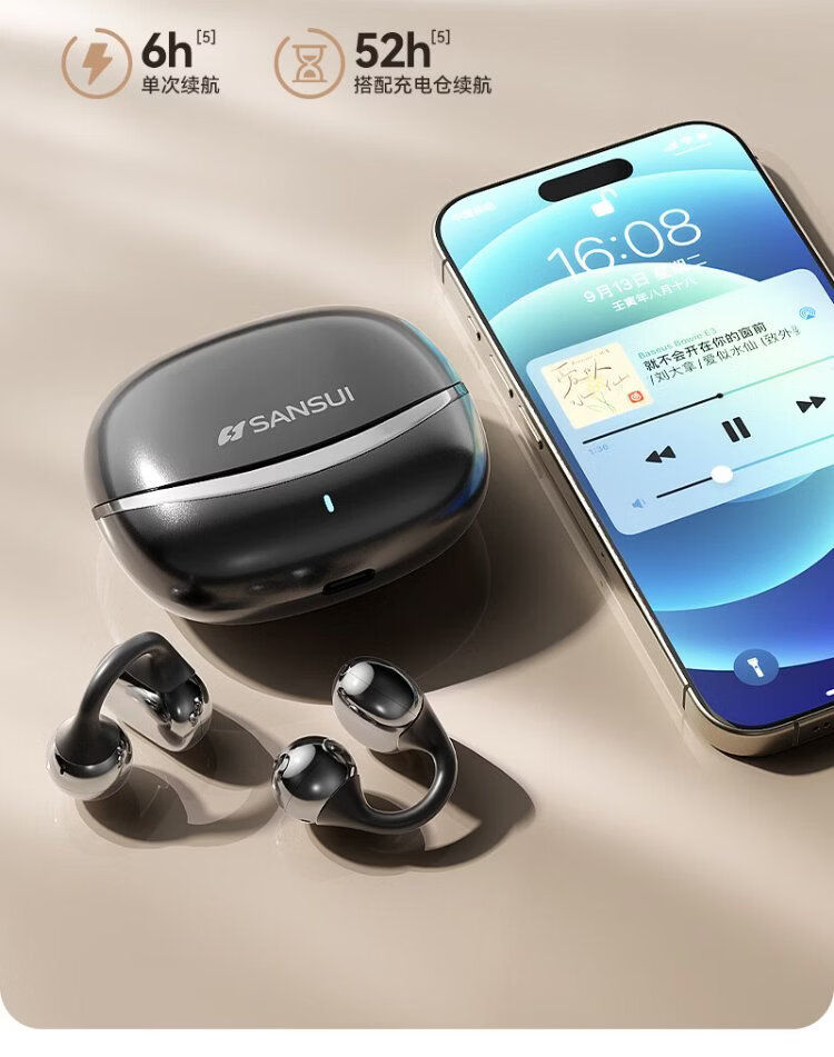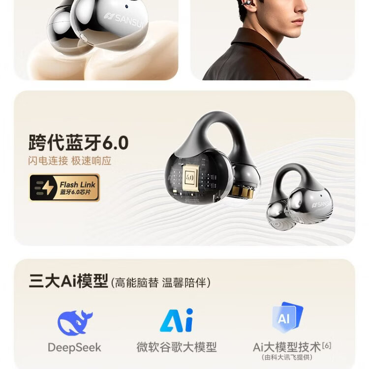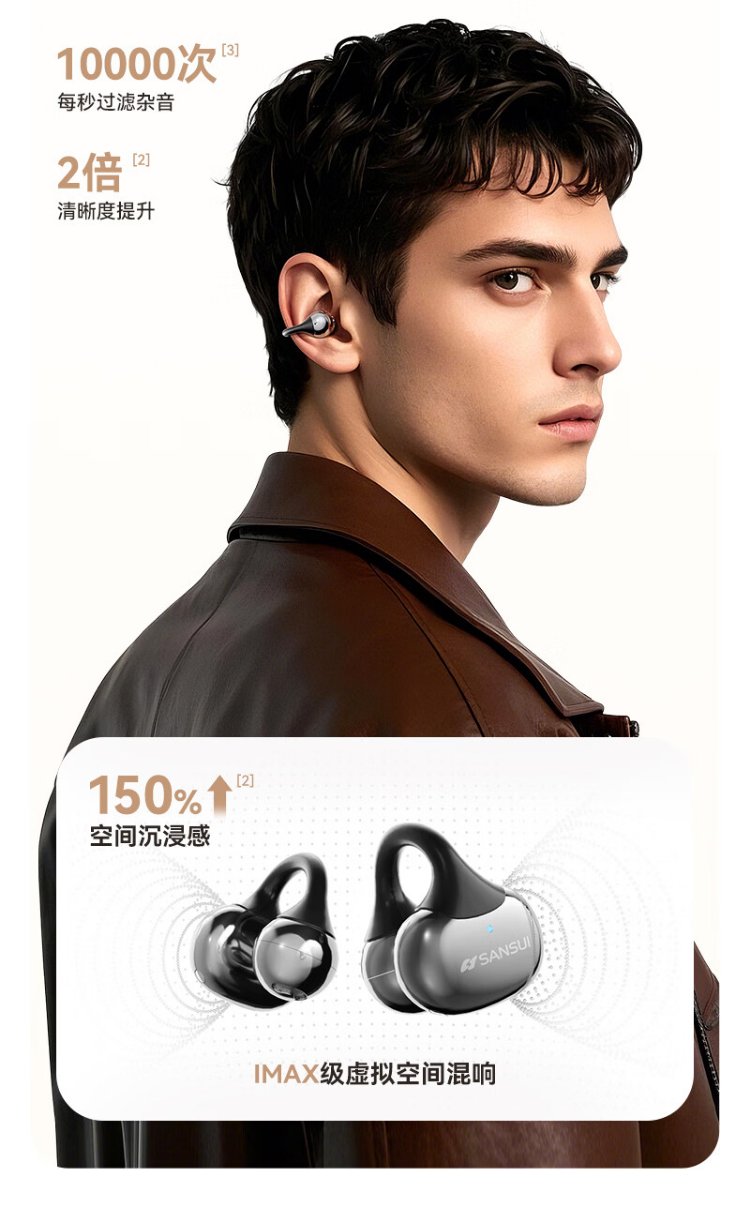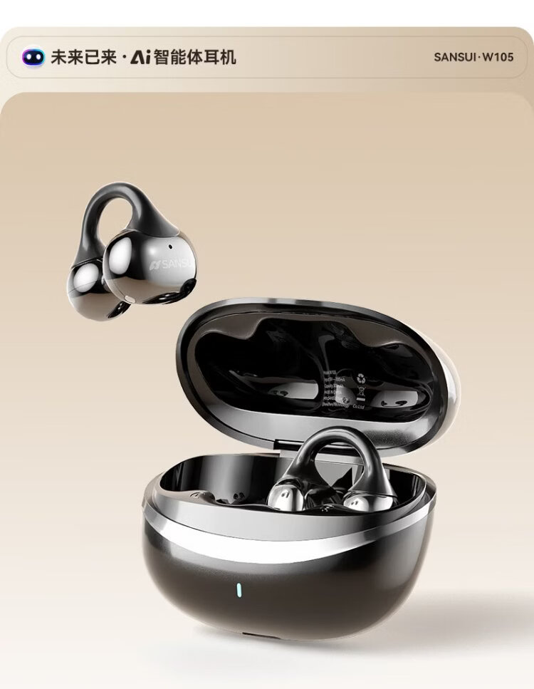 SANSUI W105 National Subsidy丨AI real-time translation Bluetooth headset bone conduction concept ear clip type AI translation headset Top ten wireless running sports call noise reduction list