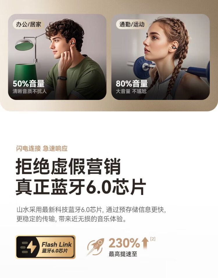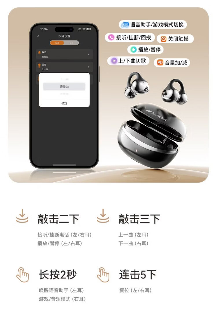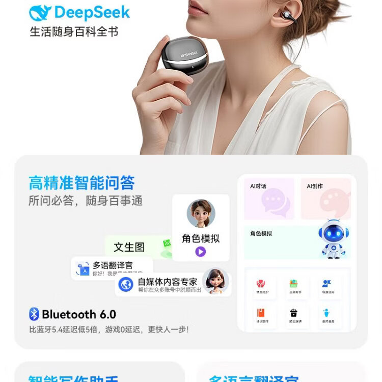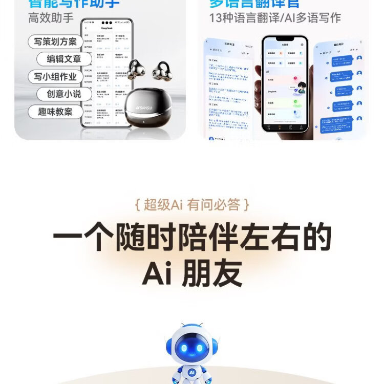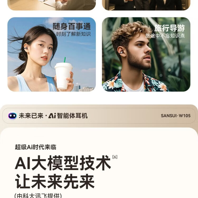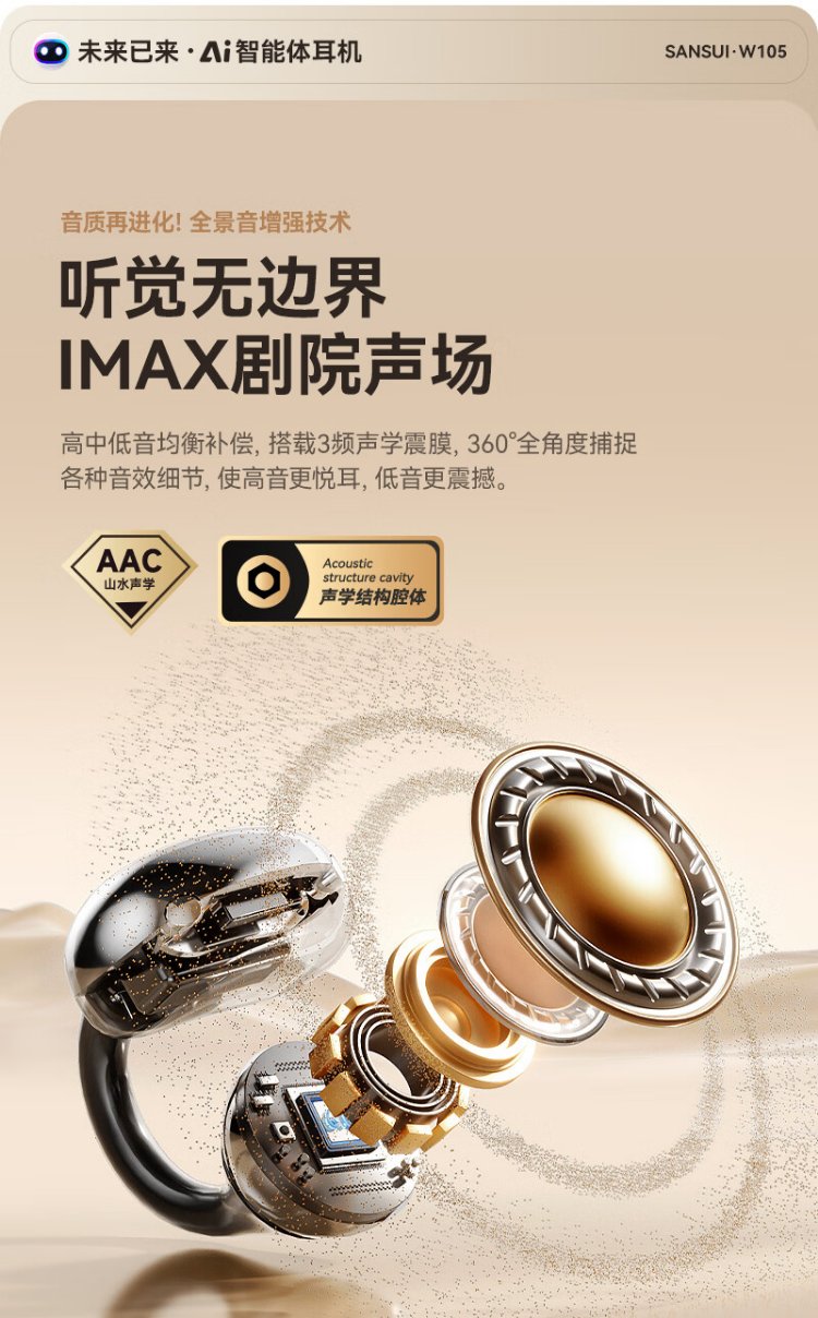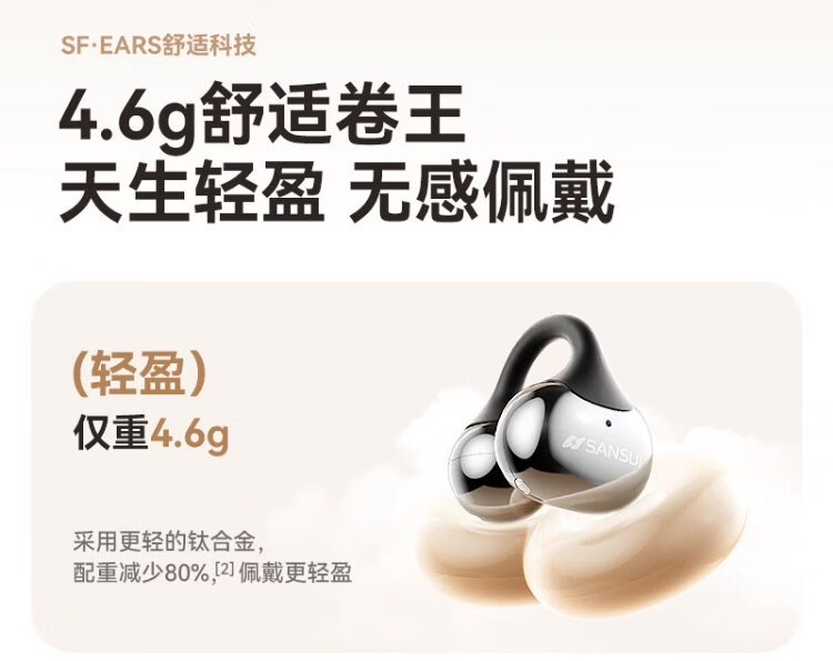 SANSUI W105 National Subsidy丨AI real-time translation Bluetooth headset bone conduction concept ear clip type AI translation headset Top ten wireless running sports call noise reduction list