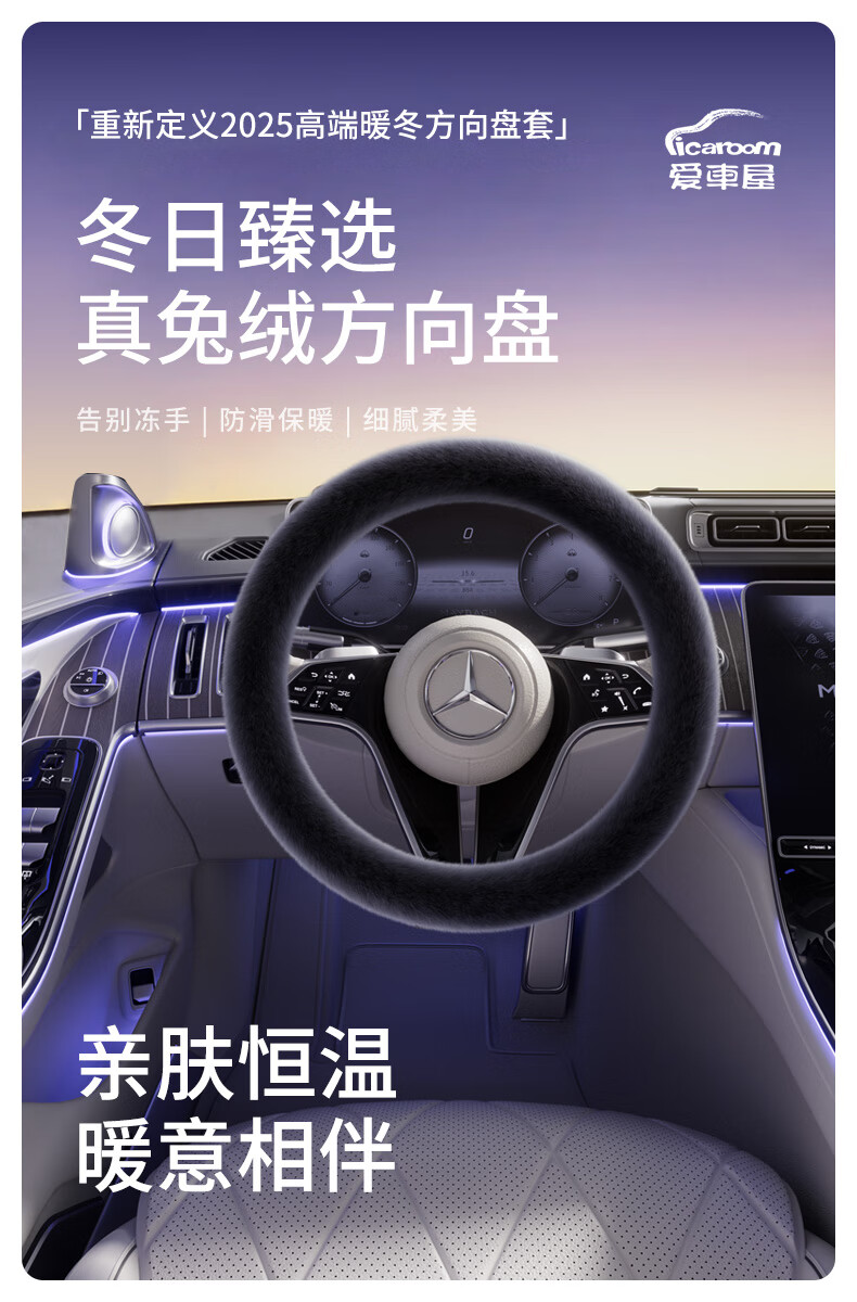 ICAROOM winter rabbit and mink velvet steering wheel cover anti-warm anti-slip plush sheath Tesla BYD Volkswagen Toyota GM