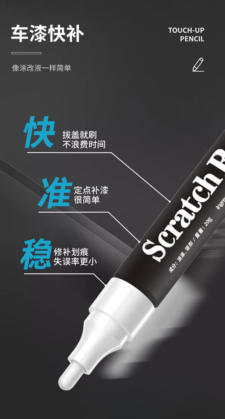 Zhicheng black touch-up pen car scratch repair touch-up paint artifact car paint depth scratch paint pen special for repairing paint surface