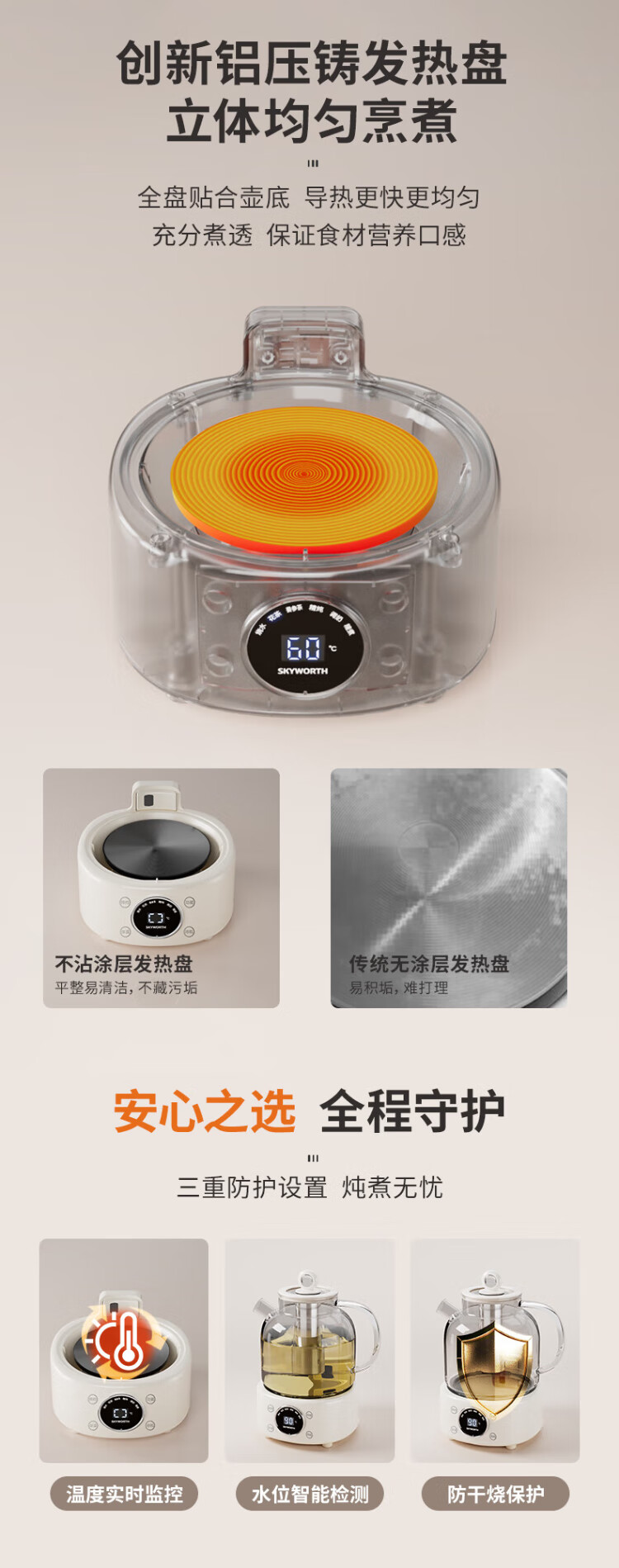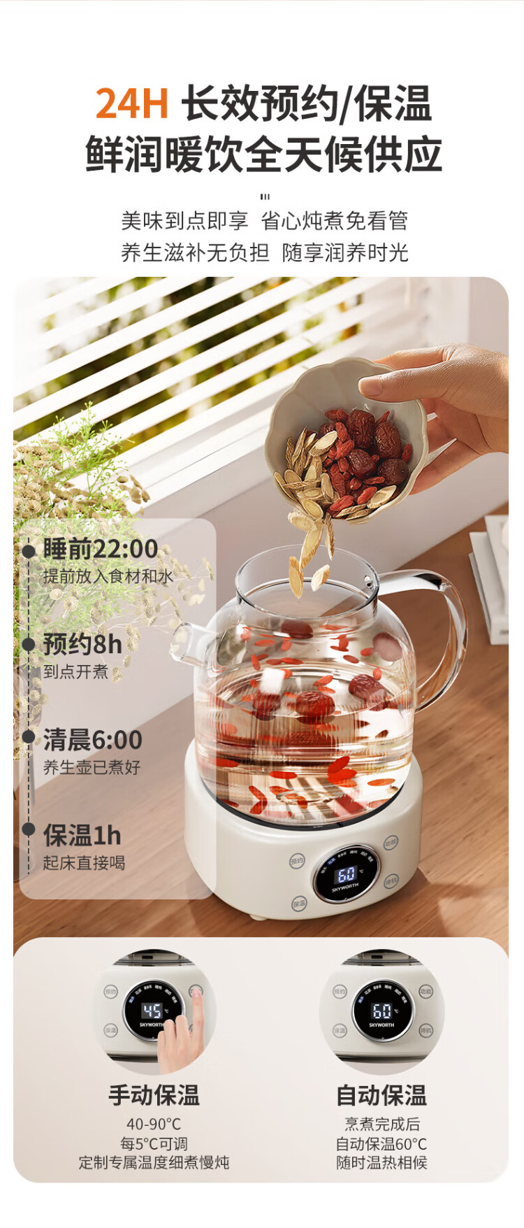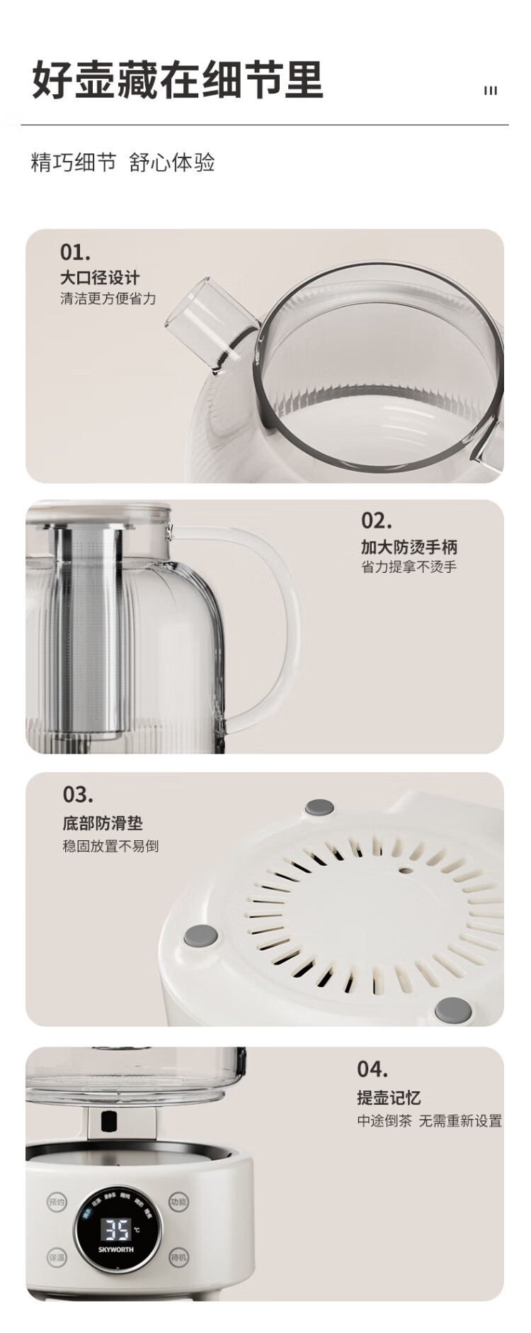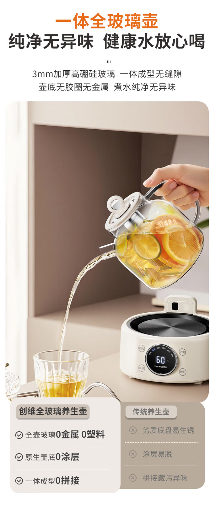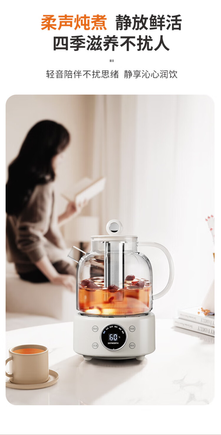 Skyworth government subsidy 0 glue all-glass health pot 1.2L with filter office multi-function teapot kettle milk regulator electric kettle flower teapot S236