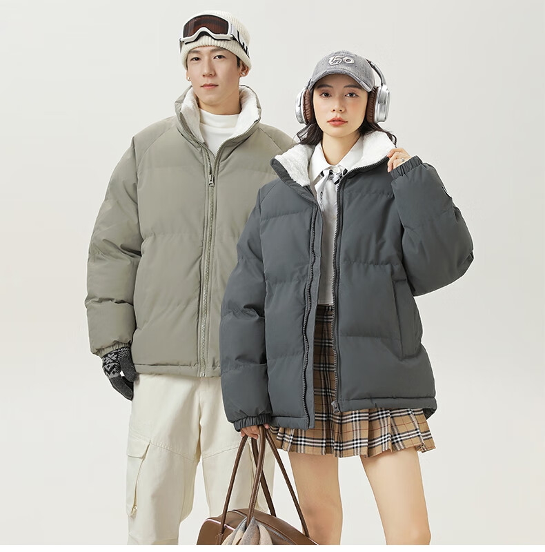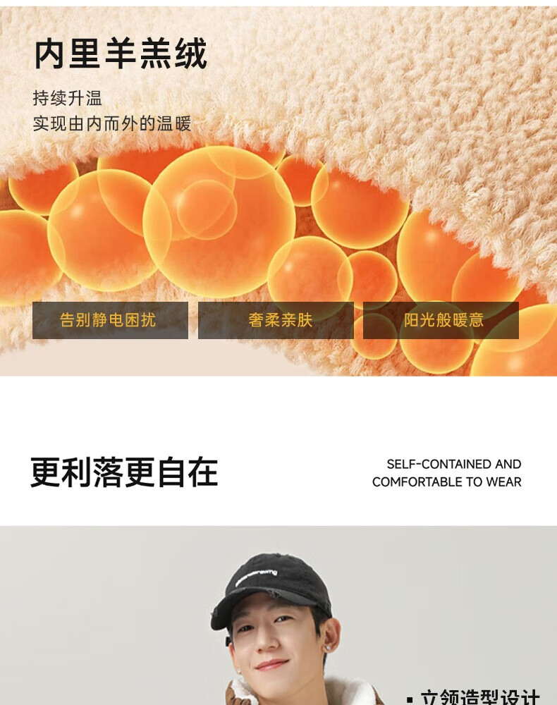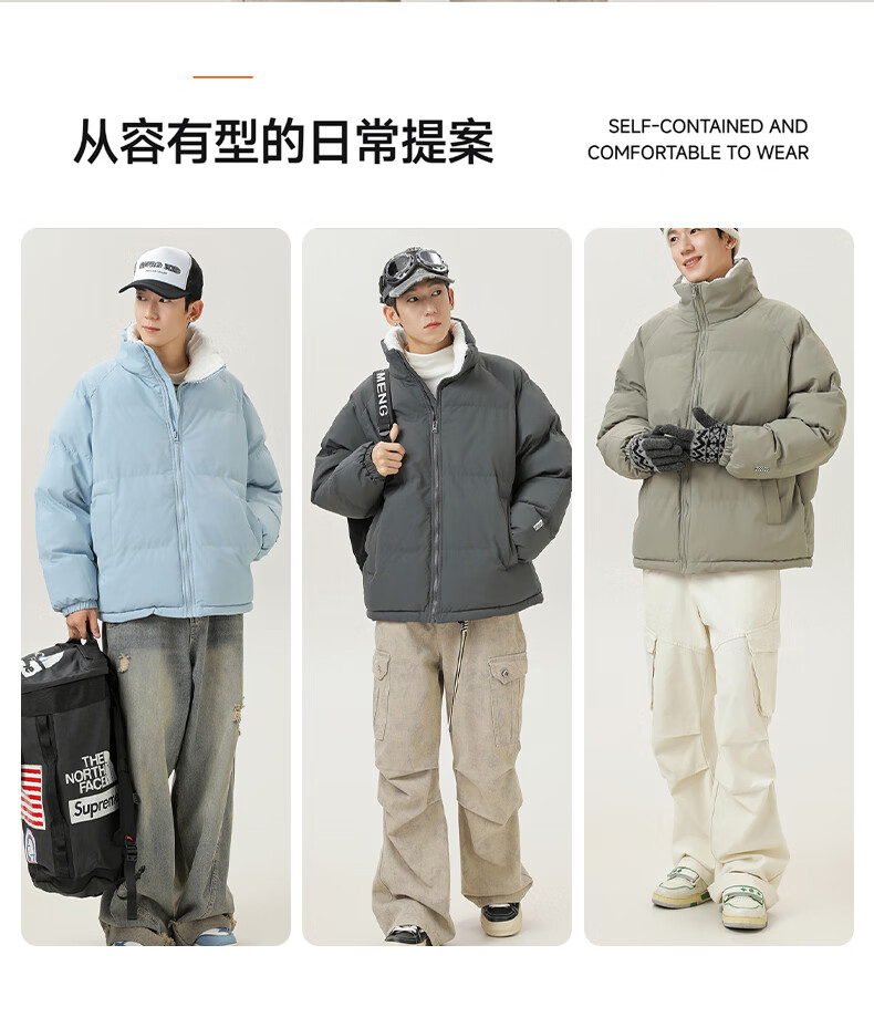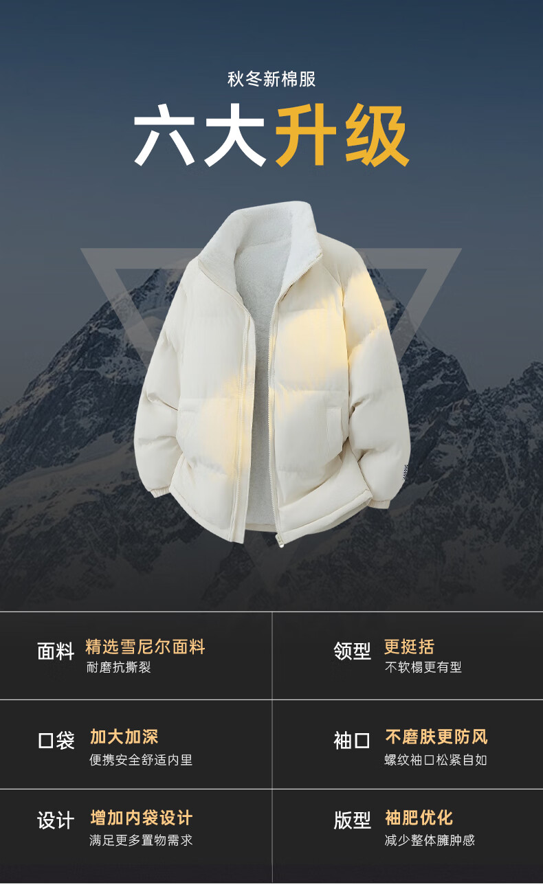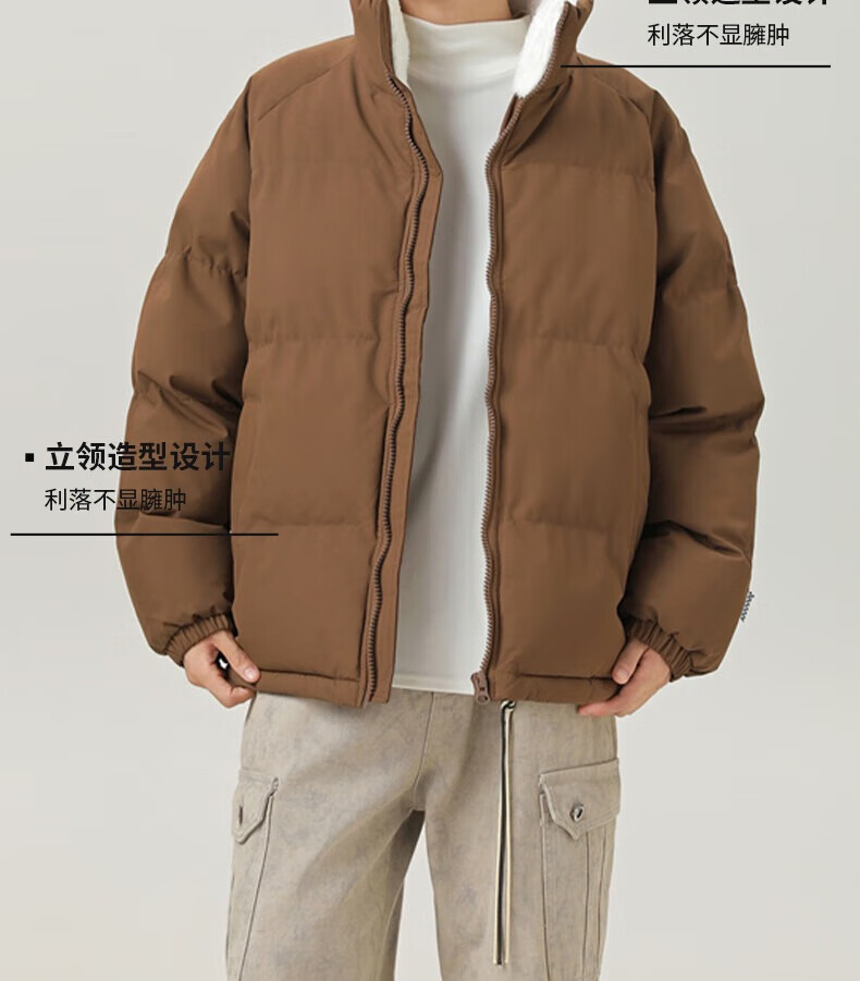 LangSha cotton-padded jacket for men in autumn and winter, thickened cold-proof and warm cotton-padded jacket, windproof, waterproof and stain-proof, hoodless cotton-padded coat and fleece jacket