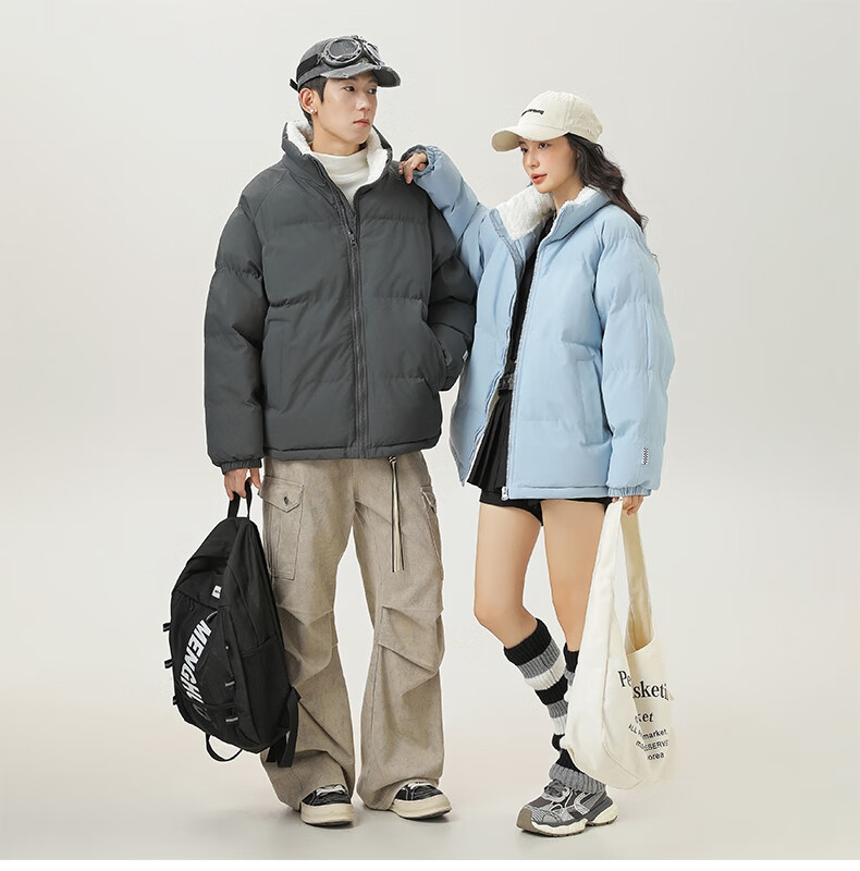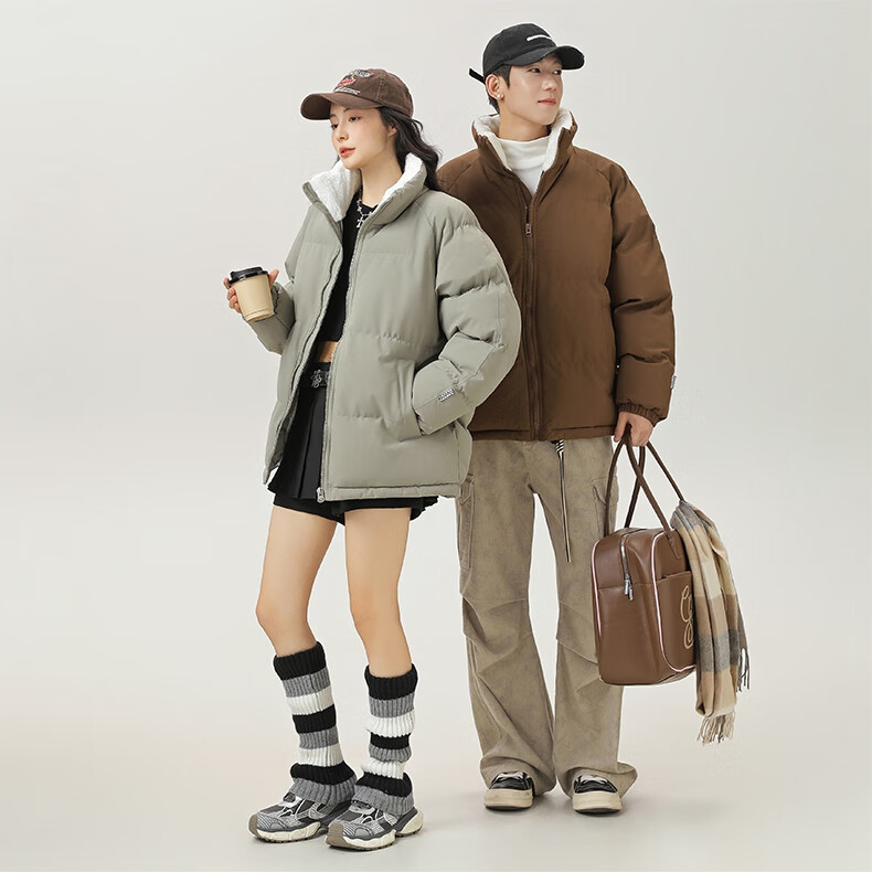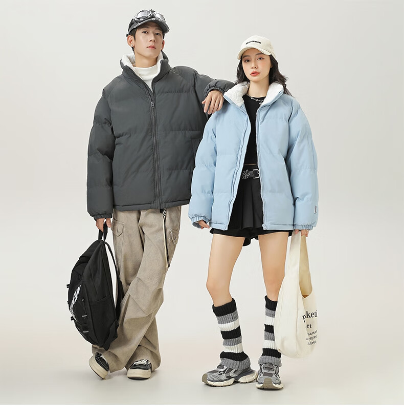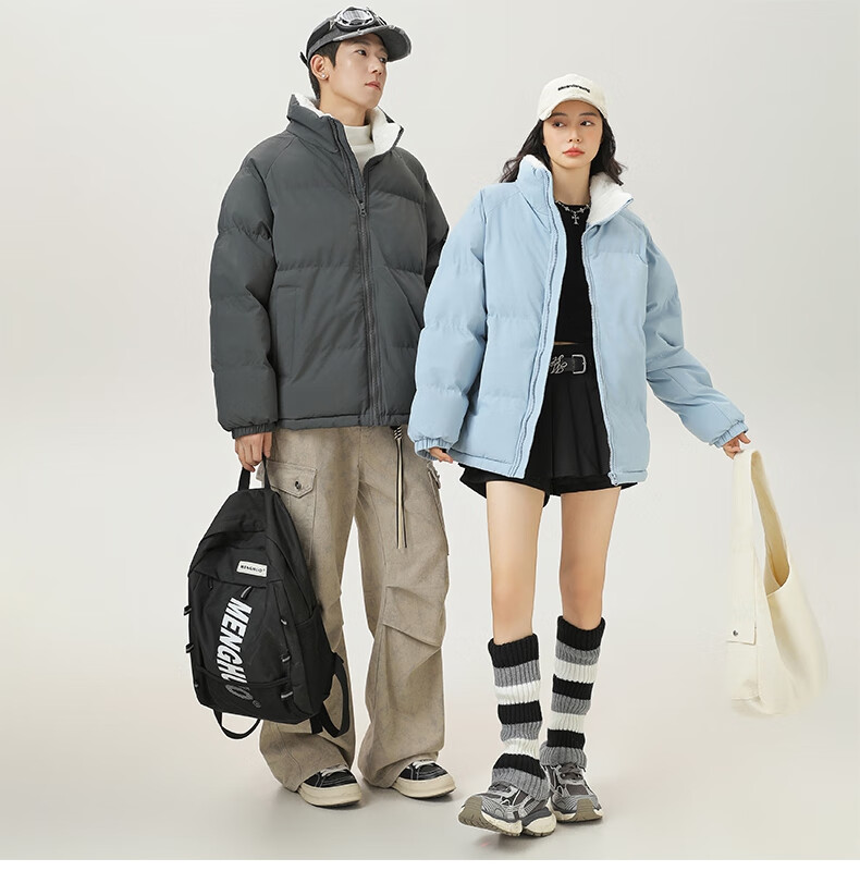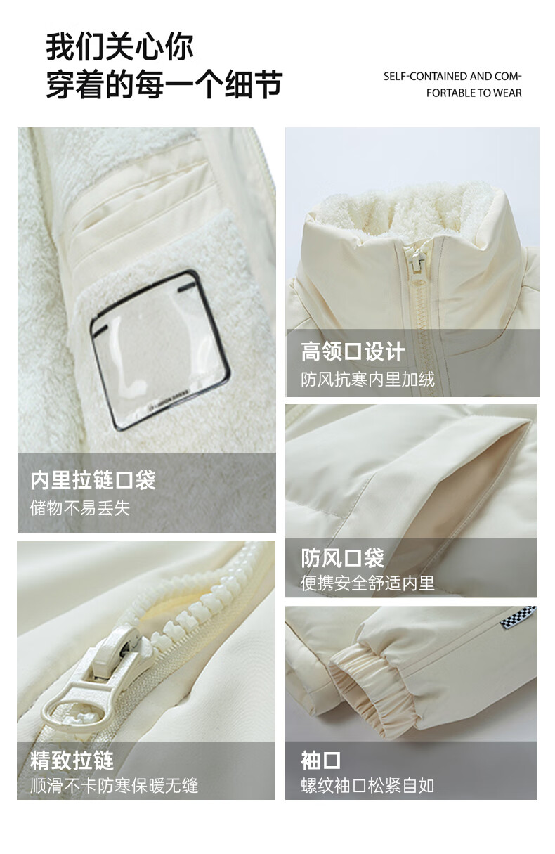 LangSha cotton-padded jacket for men in autumn and winter, thickened cold-proof and warm cotton-padded jacket, windproof, waterproof and stain-proof, hoodless cotton-padded coat and fleece jacket