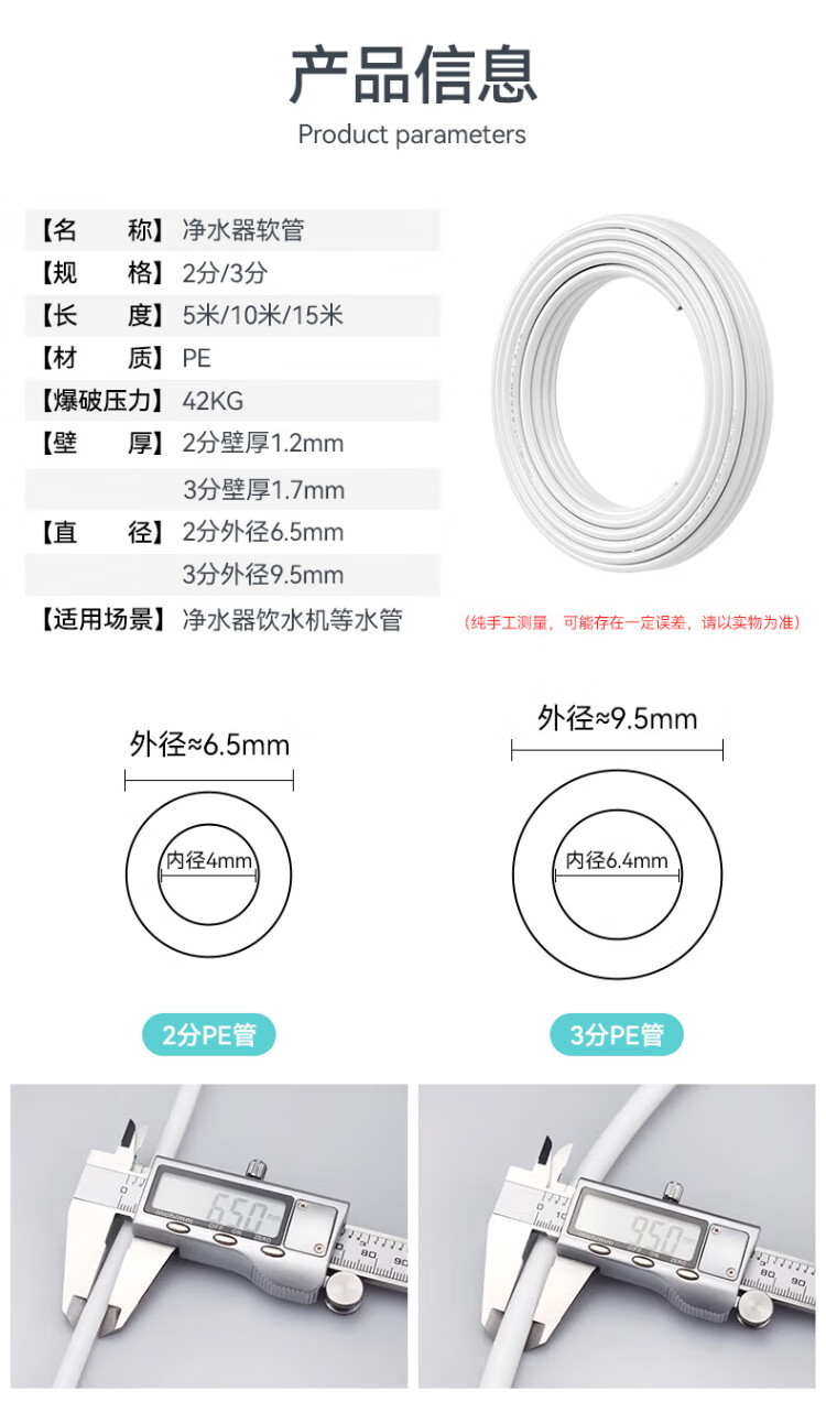 Yibai water purifier 3 points PE pipe special water purifier inlet and outlet water pipeline machine hose 15 meters water pipe pure water machine accessories