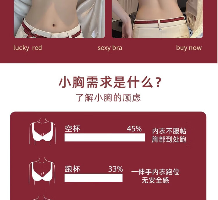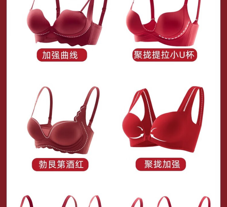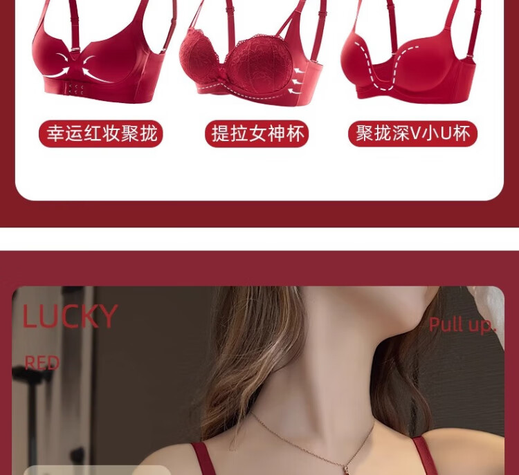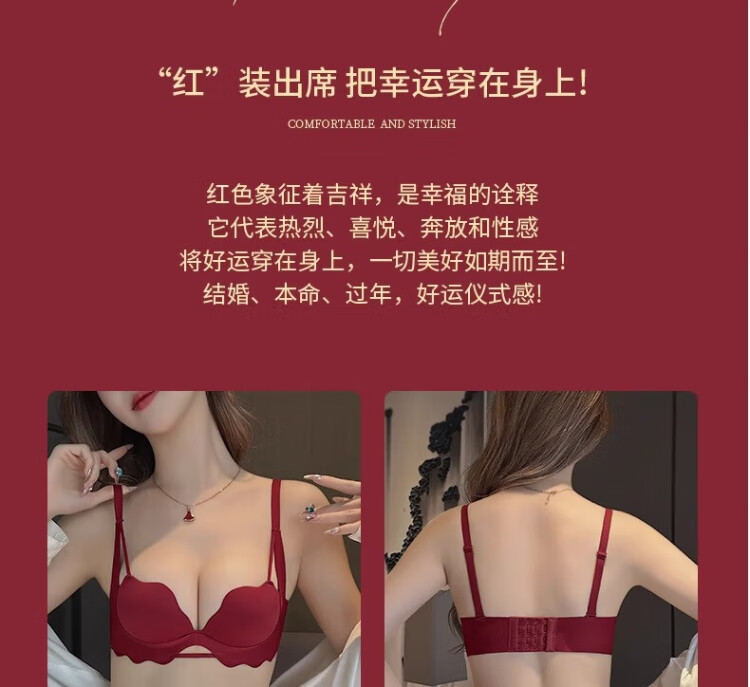 KJ zodiac year women's underwear red wedding new year small breasts push up to show big bra gift box for wife, girlfriend and best friend